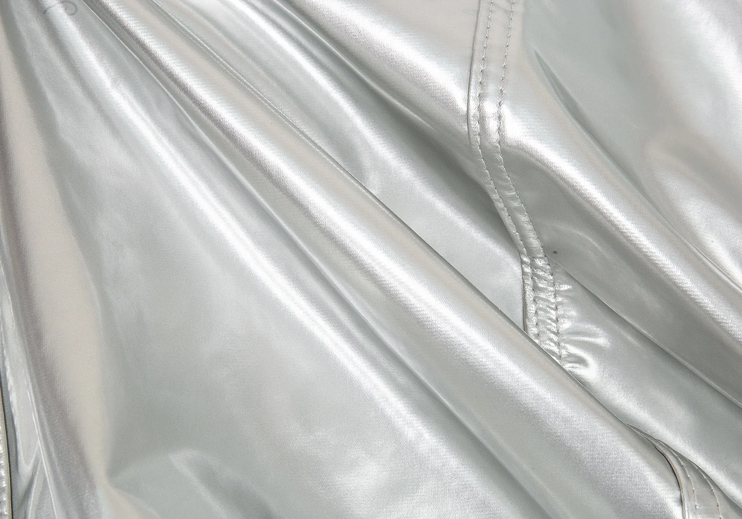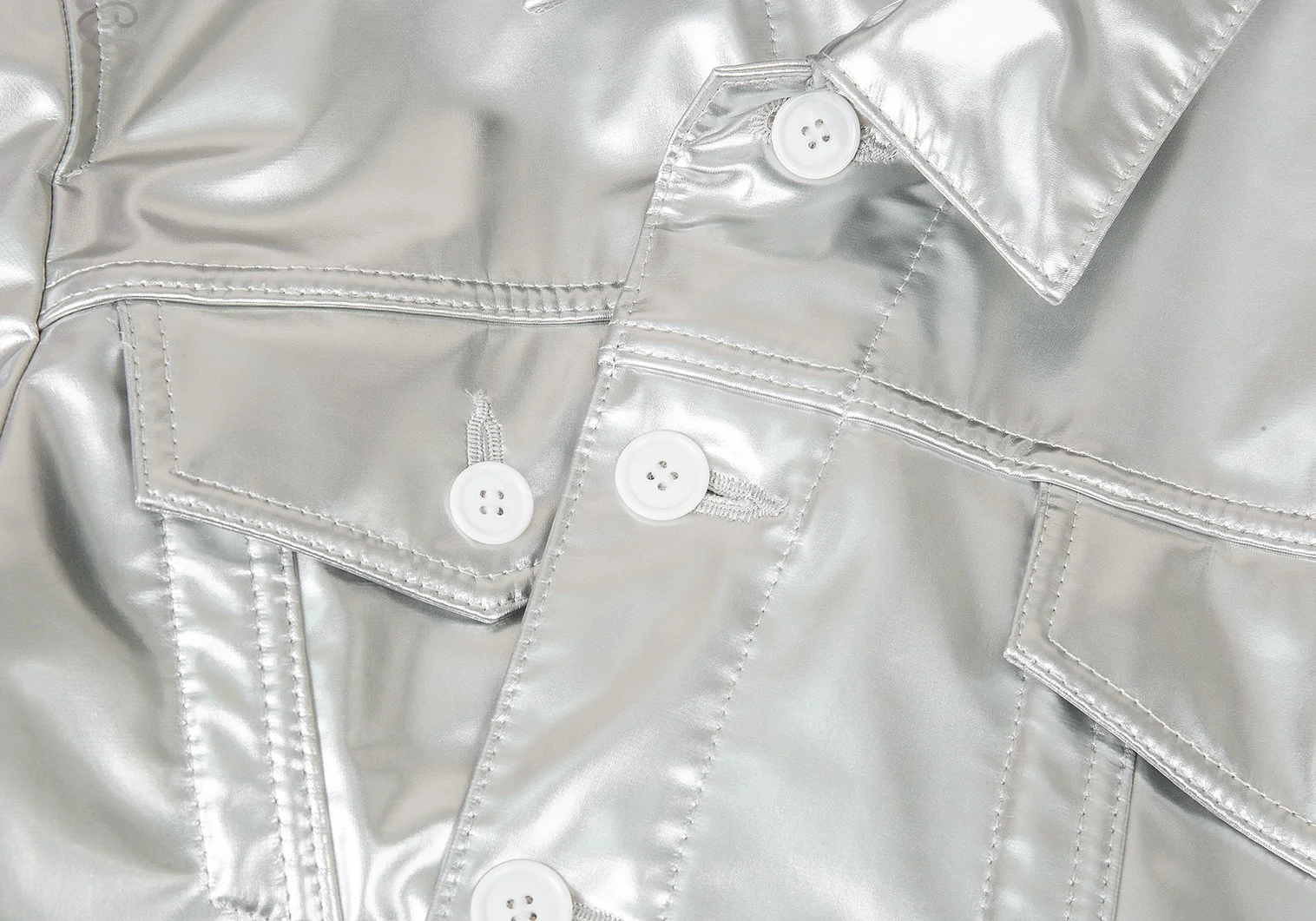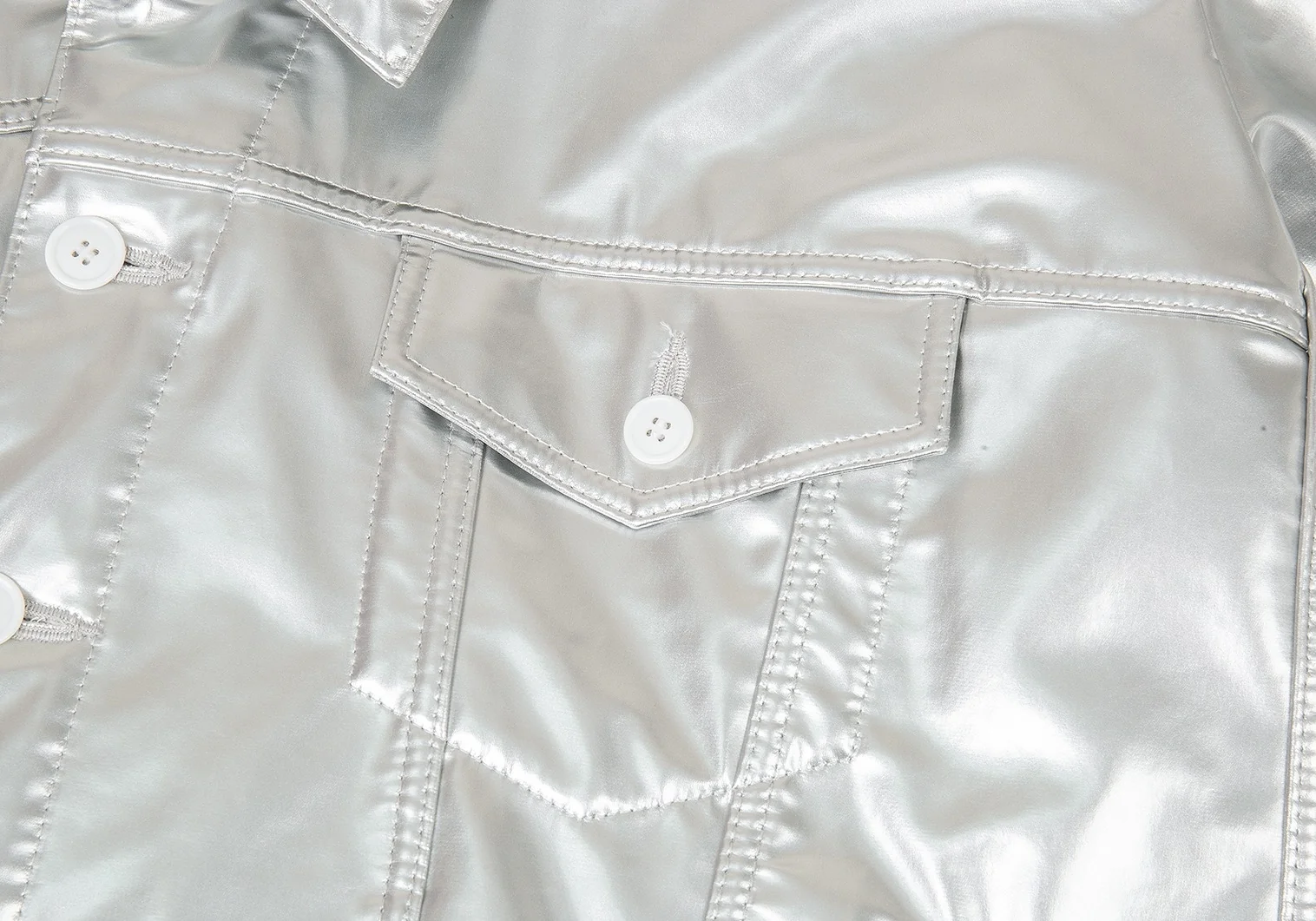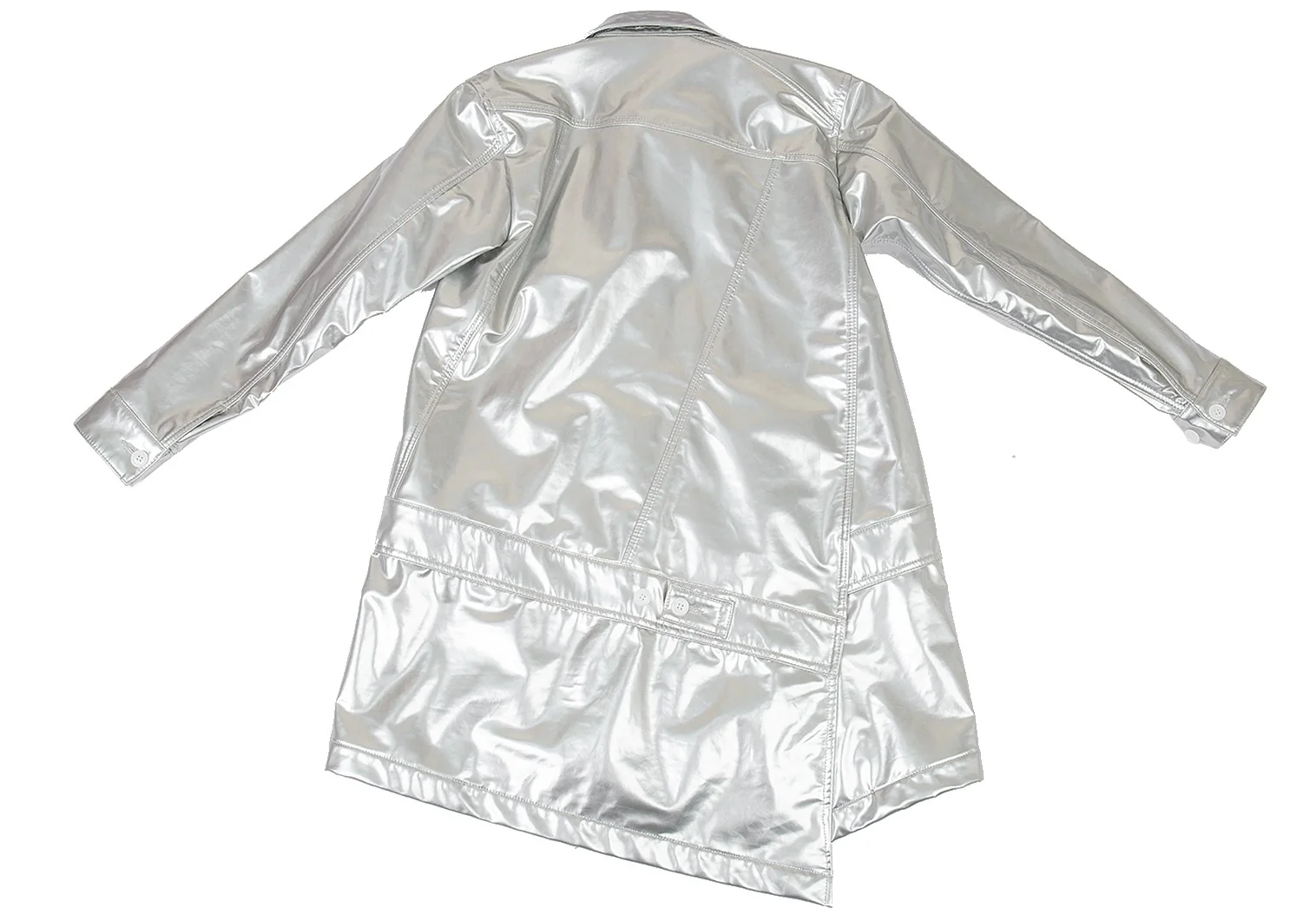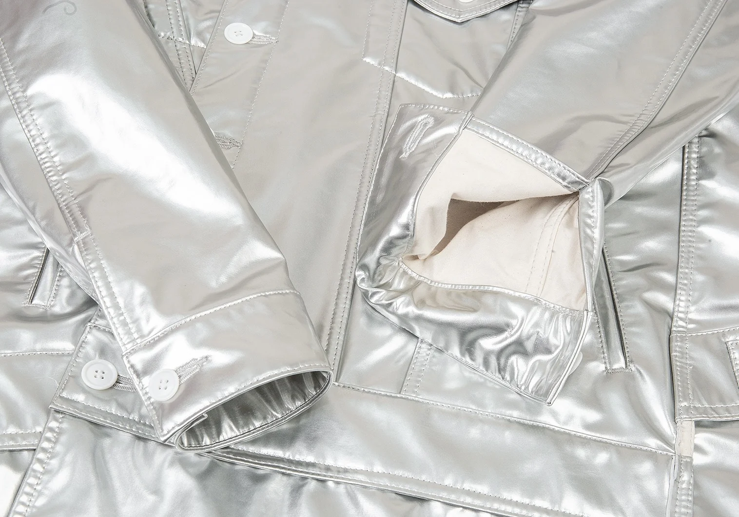 コムデギャルソン オムプリュスCOMME des GARCONS HOMME PLUS メタリックフェイクレザー斜行切替トラッカージャケット シルバーXS