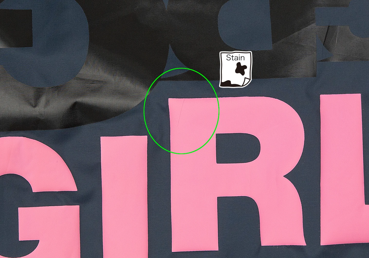 後ろプリントに一部薄汚れ、袖裏に薄汚れがあります(画像参照)。その他目立ったシミ、汚れ、ほつれ等なくいい状態です。クリーニング済み