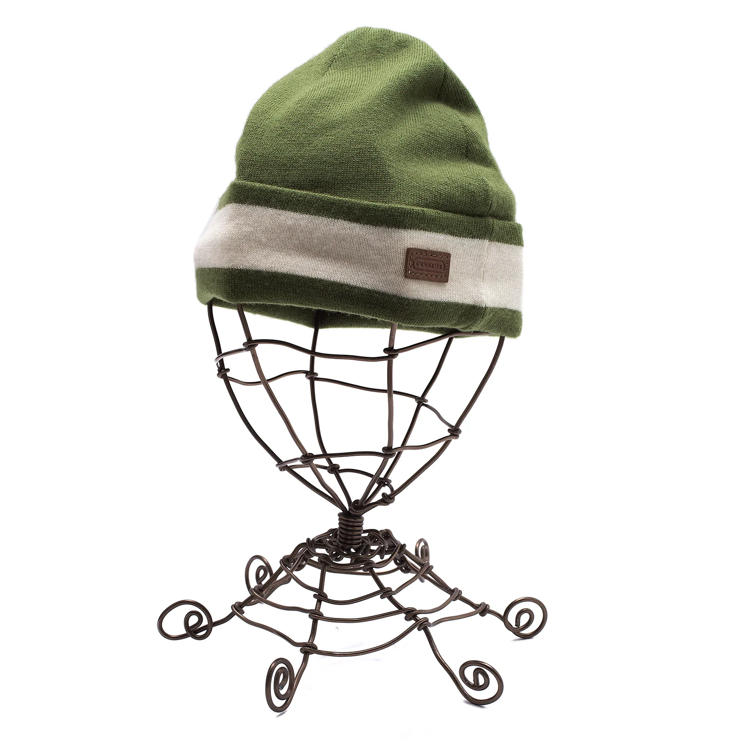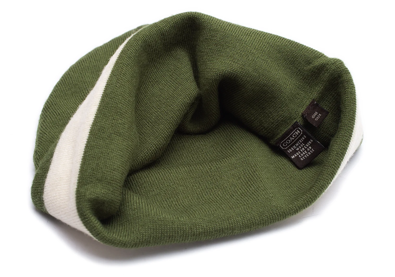 コーチCOACH ウールロゴワンポイントラインニットキャップ 緑白
