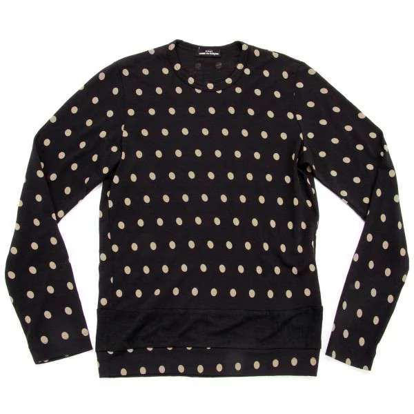 トリココムデギャルソンtricot COMME des GARCONS 裾切替水玉ウールカットソー 黒×ベージュM位