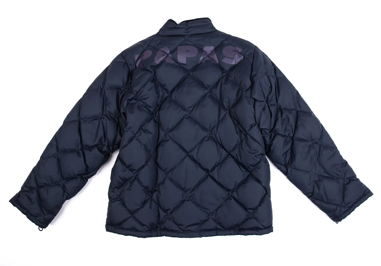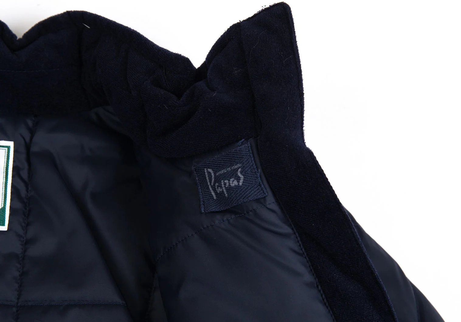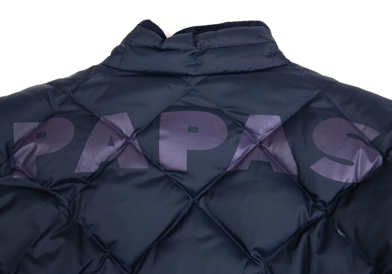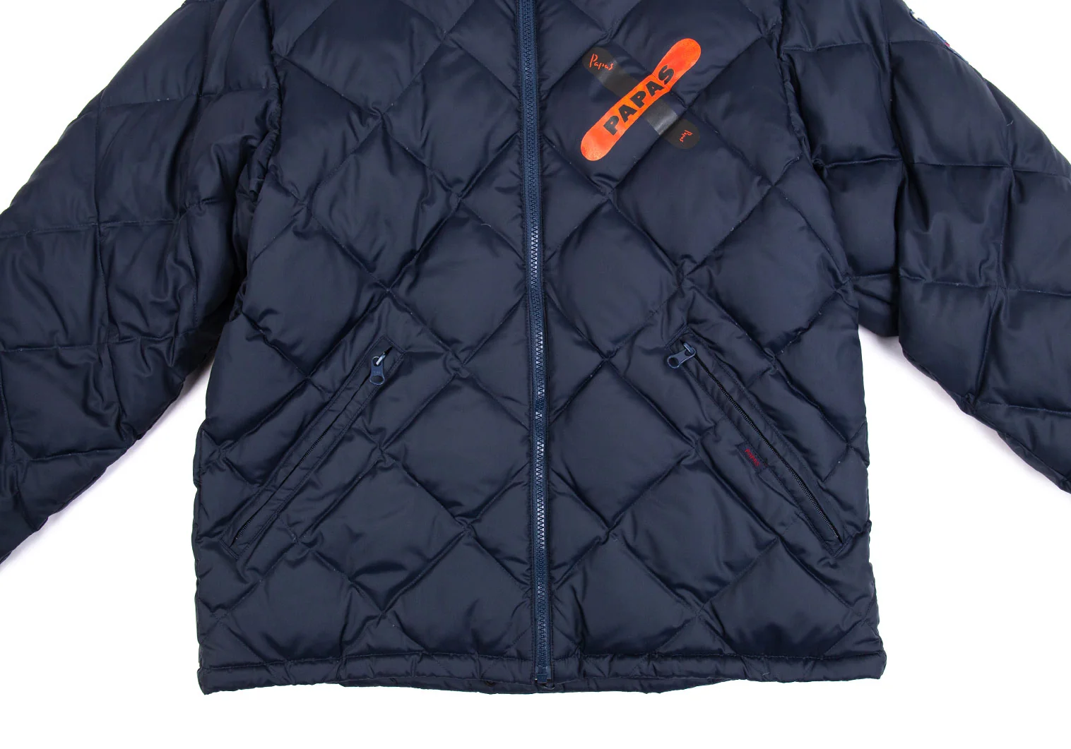 パパスPapas ポリクロスロゴプリントキルティングジップアップダウンジャケット 紺46S