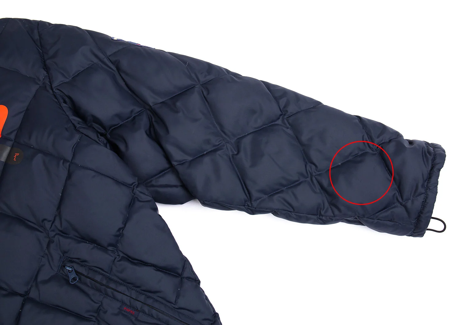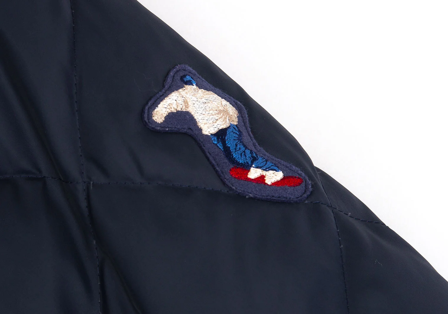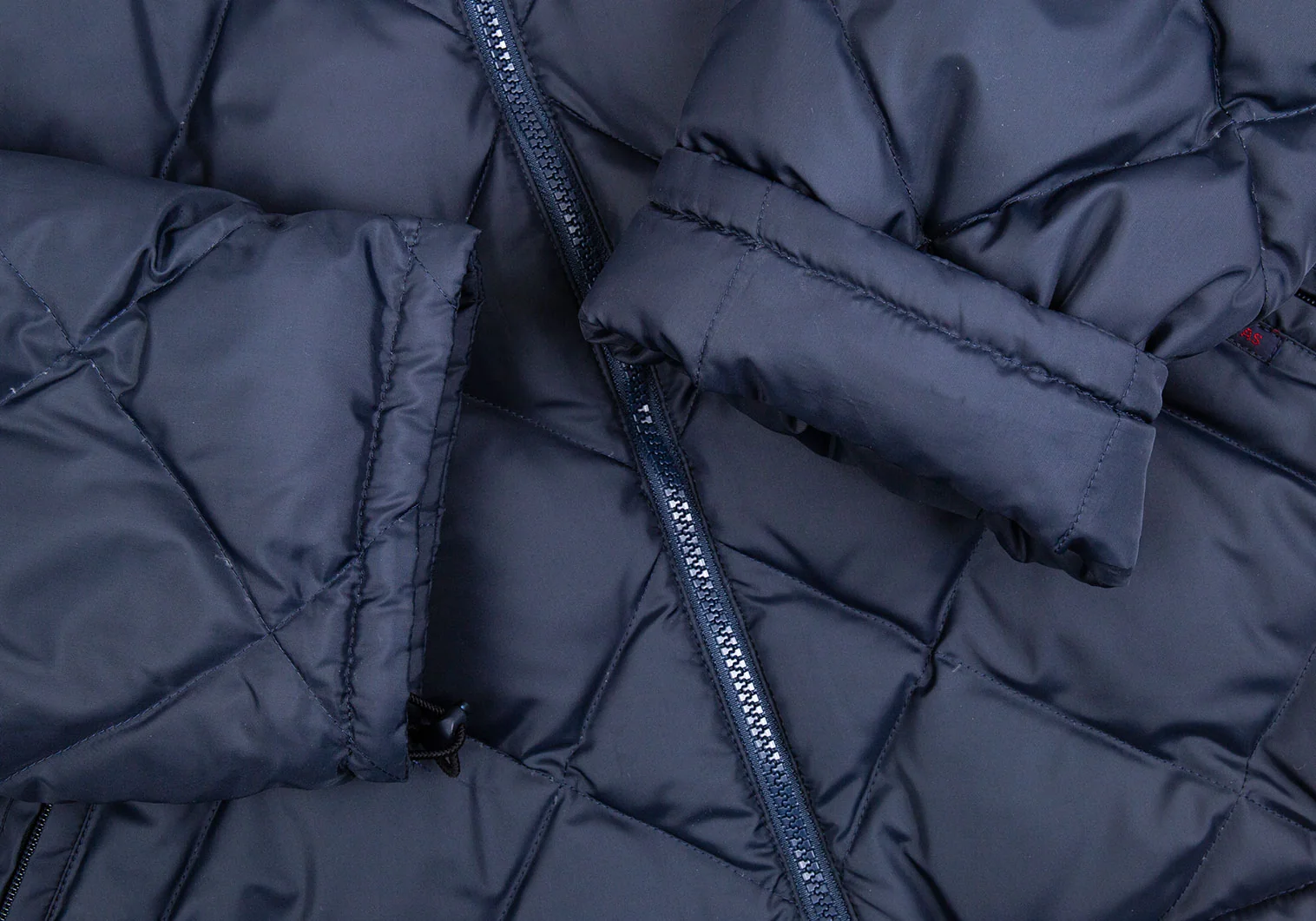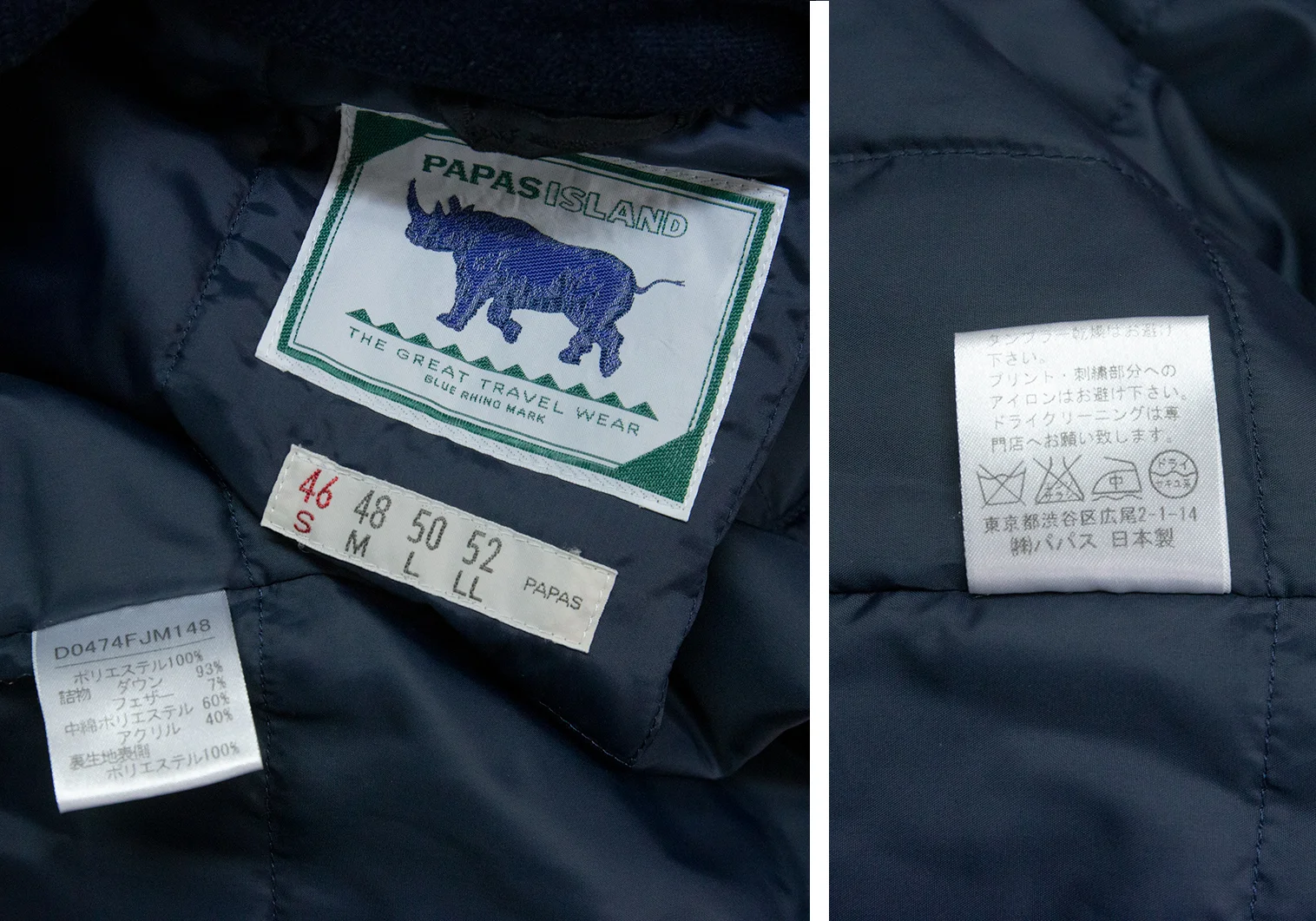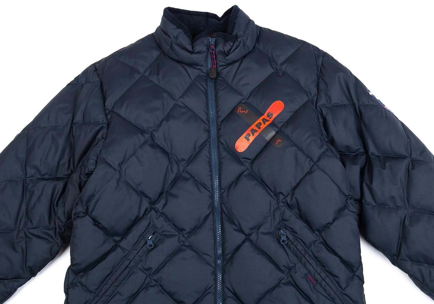 パパスPapas ポリクロスロゴプリントキルティングジップアップダウンジャケット 紺46S