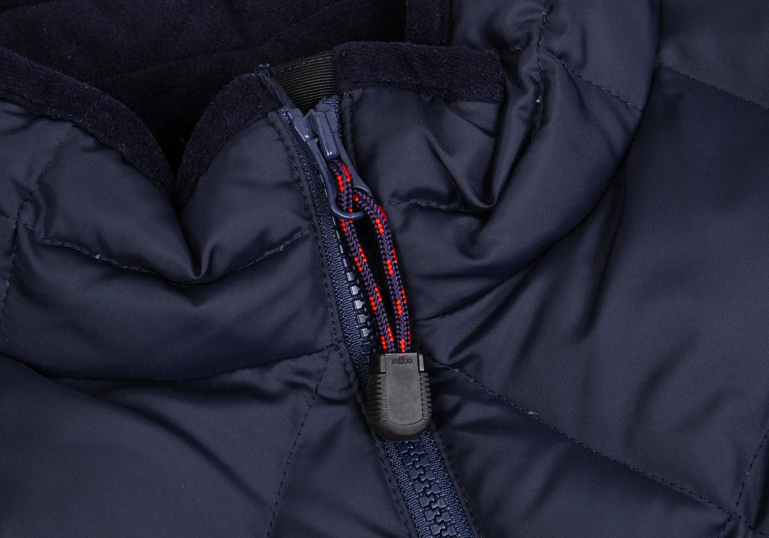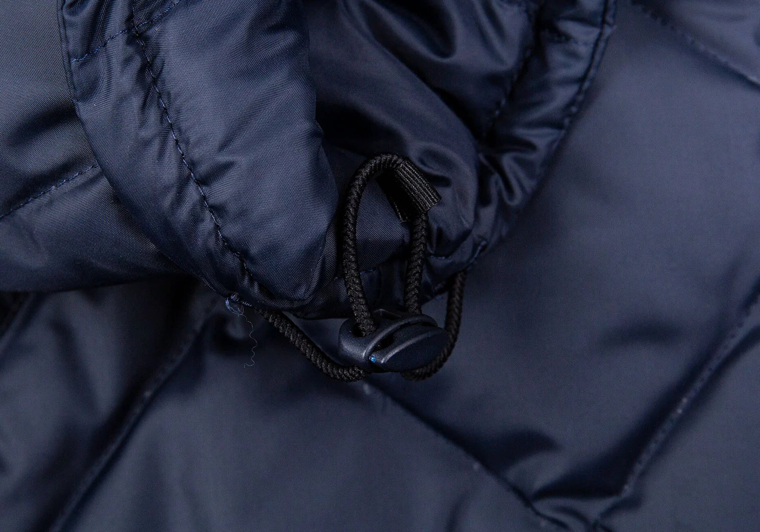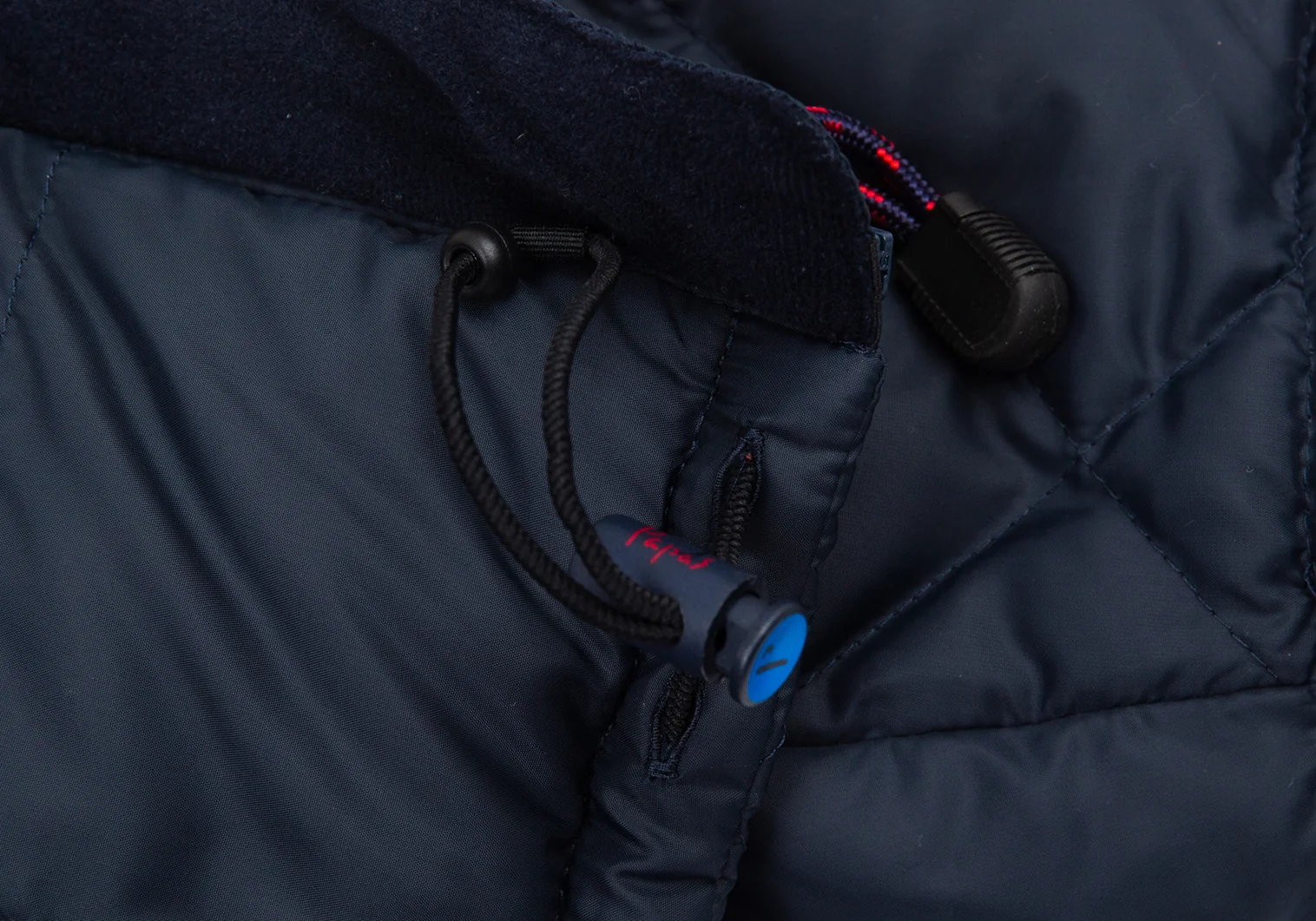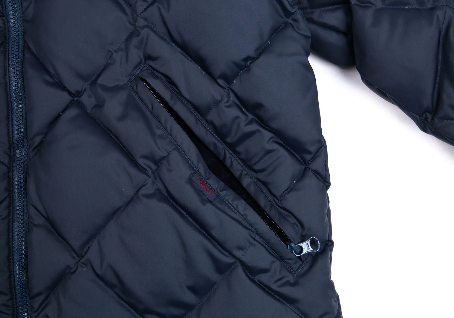 パパスPapas ポリクロスロゴプリントキルティングジップアップダウンジャケット 紺46S