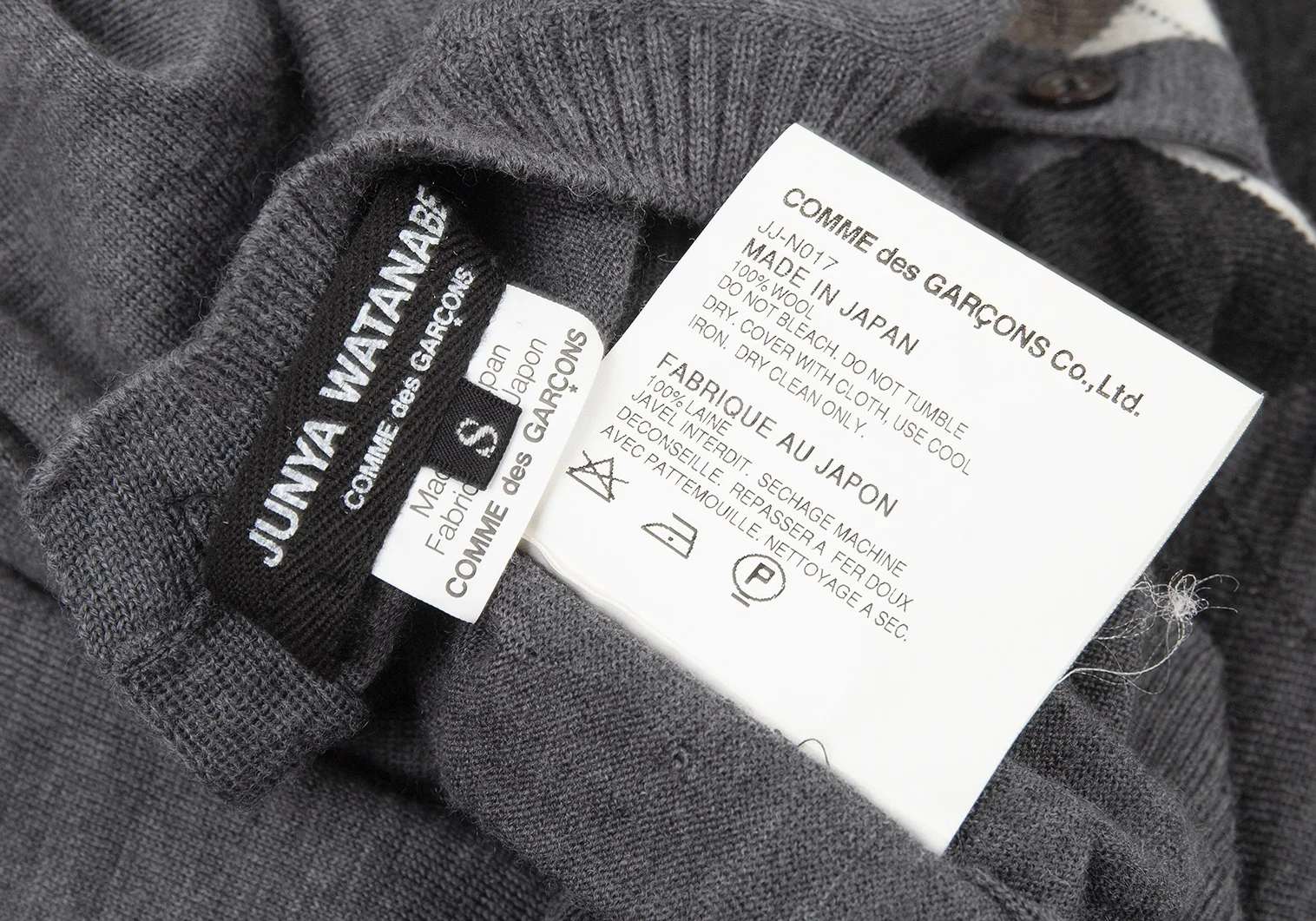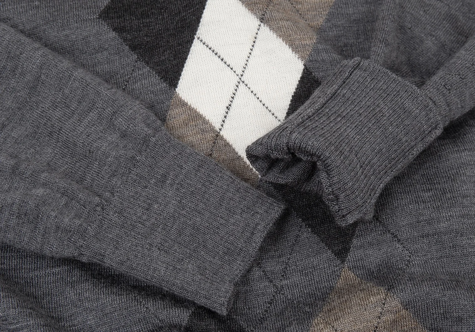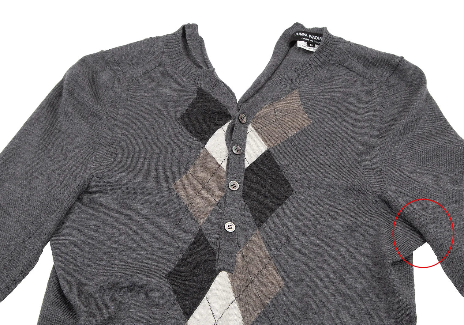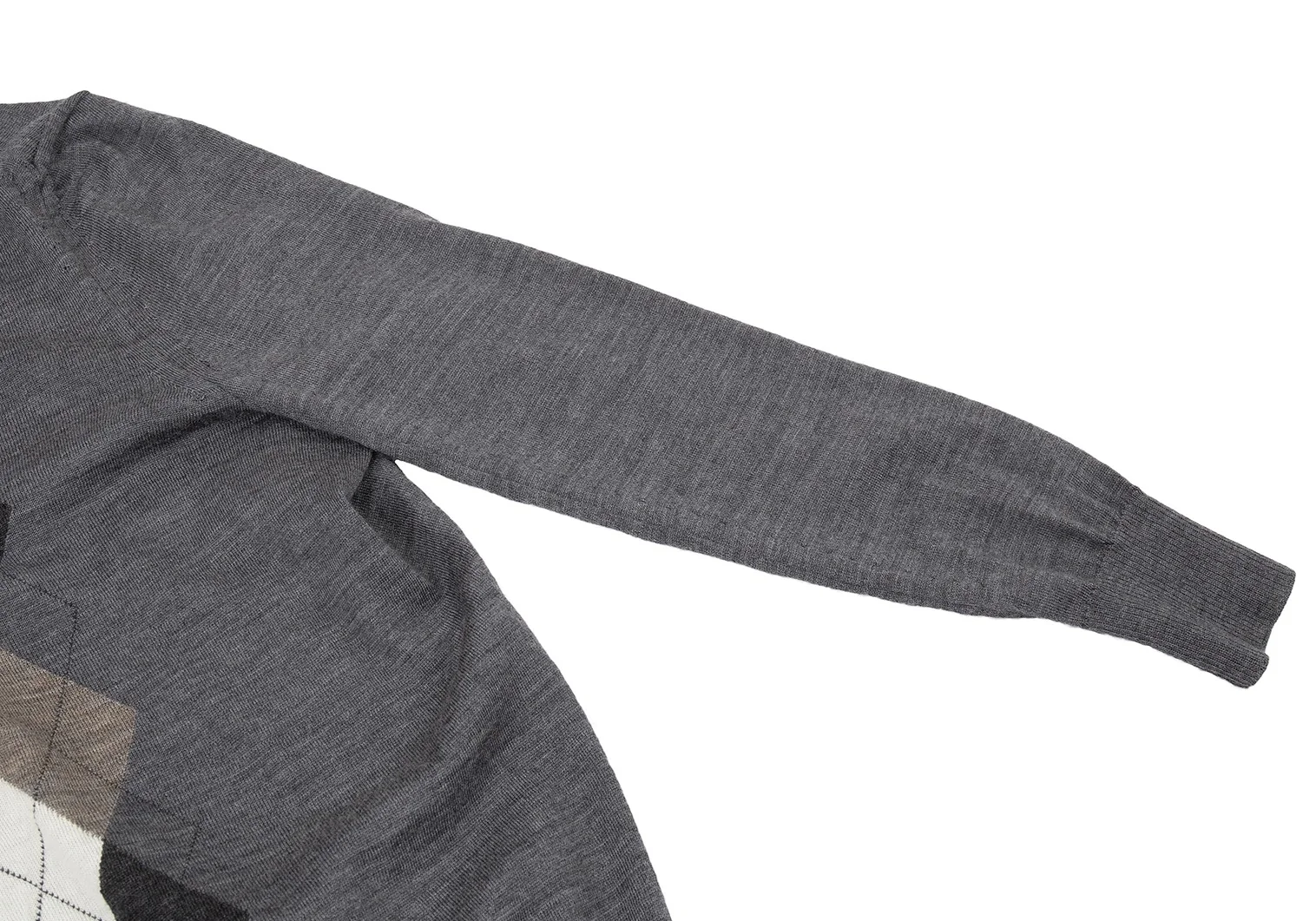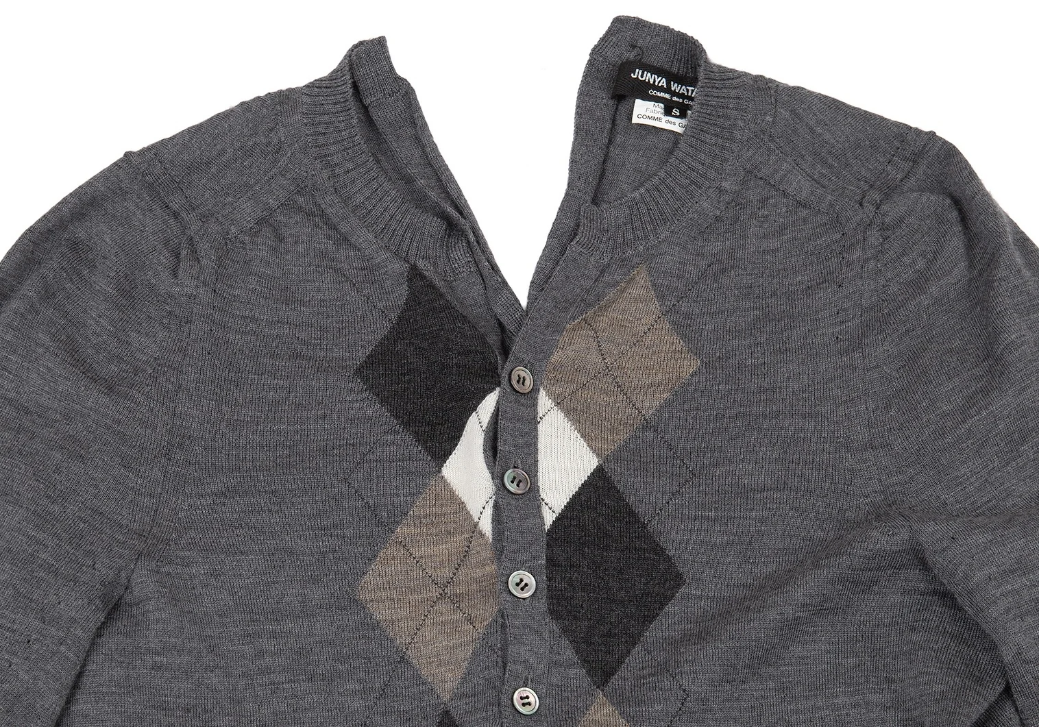 ジュンヤワタナベコムデギャルソンJUNYA WATANABE COMME des GARCONS ウールアーガイルヘンリーネック変形ニット グレーマルチS