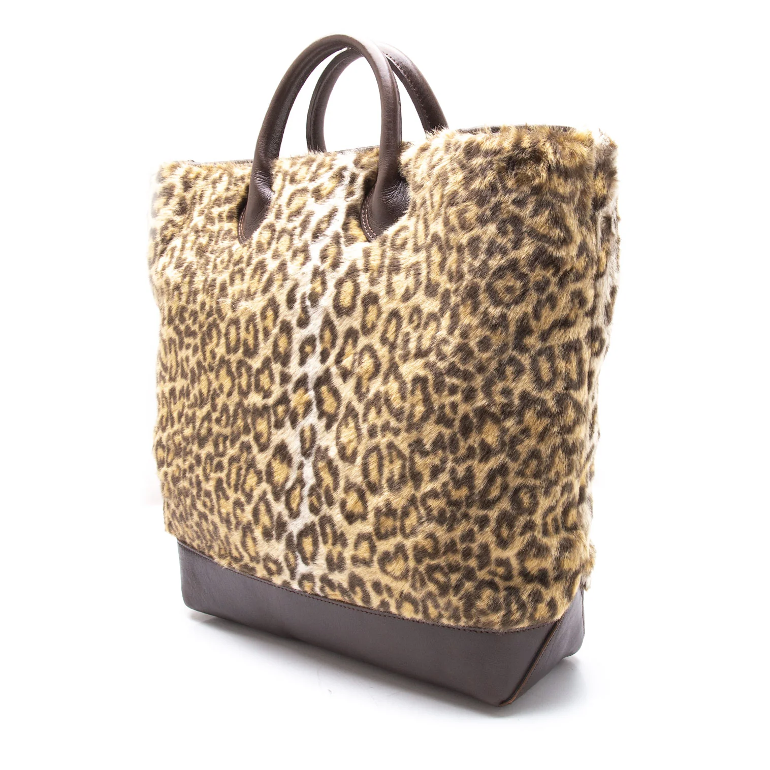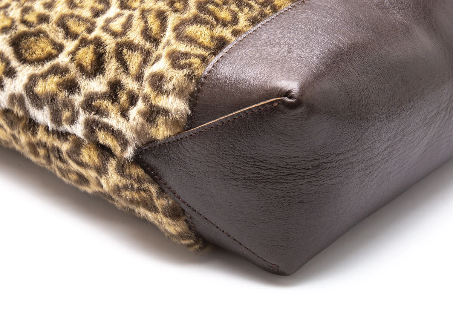 新品!ジュンヤワタナベ コムデギャルソンJUNYA WATANABE COMME des GARCONS レオパードフェイクファーレザートートバッグ 茶