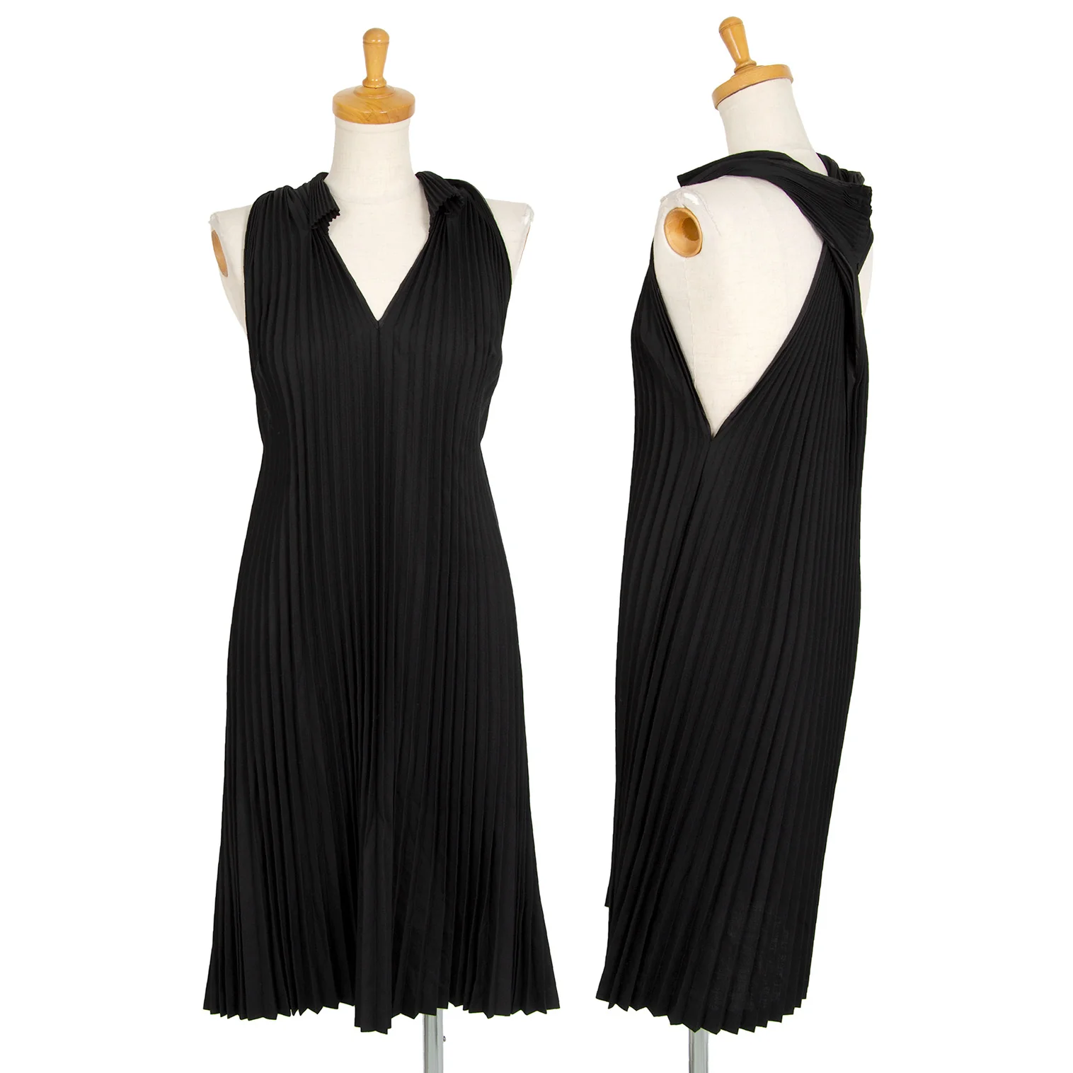 ジュンヤワタナベ コムデギャルソンJUNYA WATANABE COMME des GARCONS ウールねじれデザインVネックノースリーブワンピース 黒S