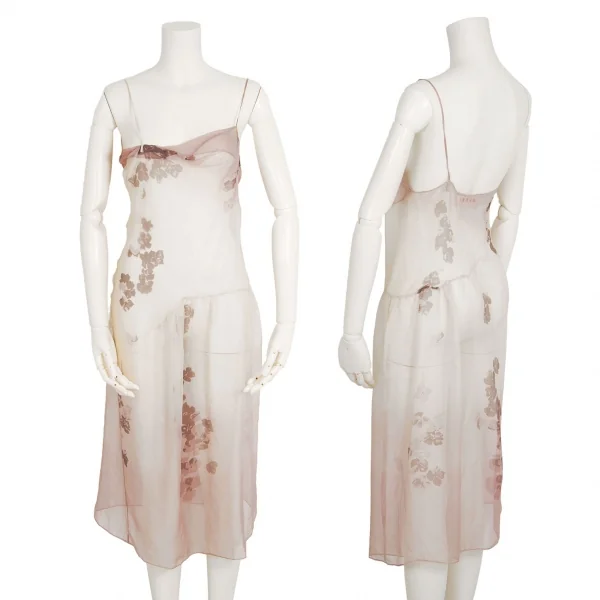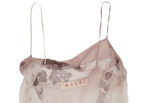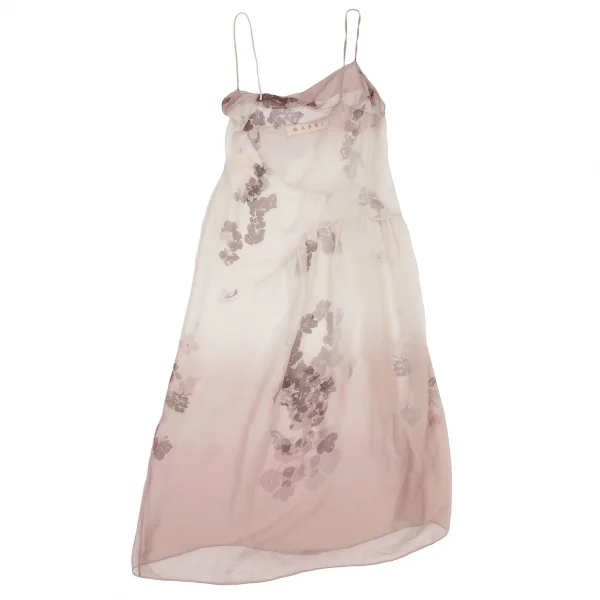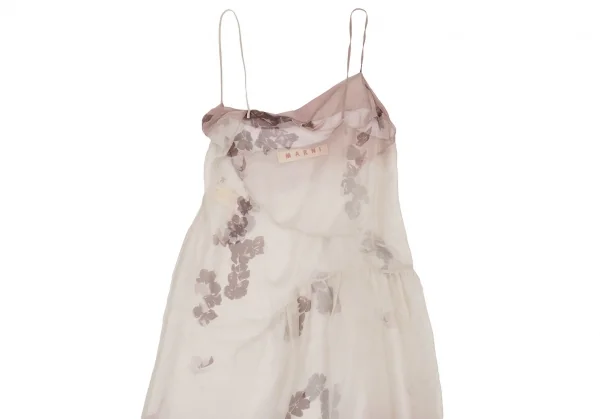 マルニMARNI シースルーフラワープリント切替グラデーションキャミソールワンピース 白ピンク38