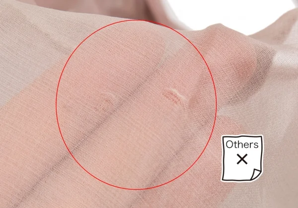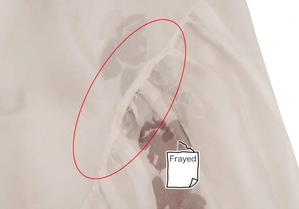 透け感があります。生地が薄いためシーム部に裂け、タグ縫い目広がり、生地のヨレがあります。(写真参照)その他目立ったシミ、汚れ等はありません。クリーニング済み