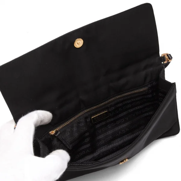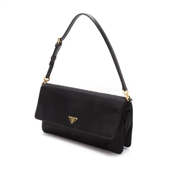 プラダPRADA ポコノナイロンフラップハンドバッグ 黒