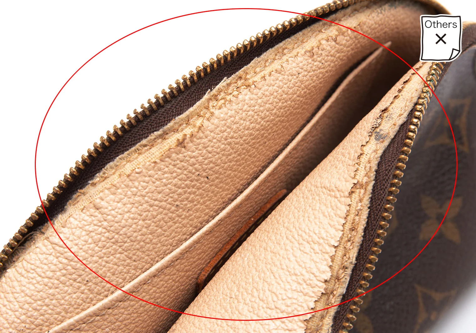 内側生地に劣化・内側に汚れがあります。(写真参照)。目立つダメージのみの掲載になります。軽微な汚れ、ダメージの掲載漏れはご容赦ください。返品、返金等は不可となりますので予めご了承下さい。