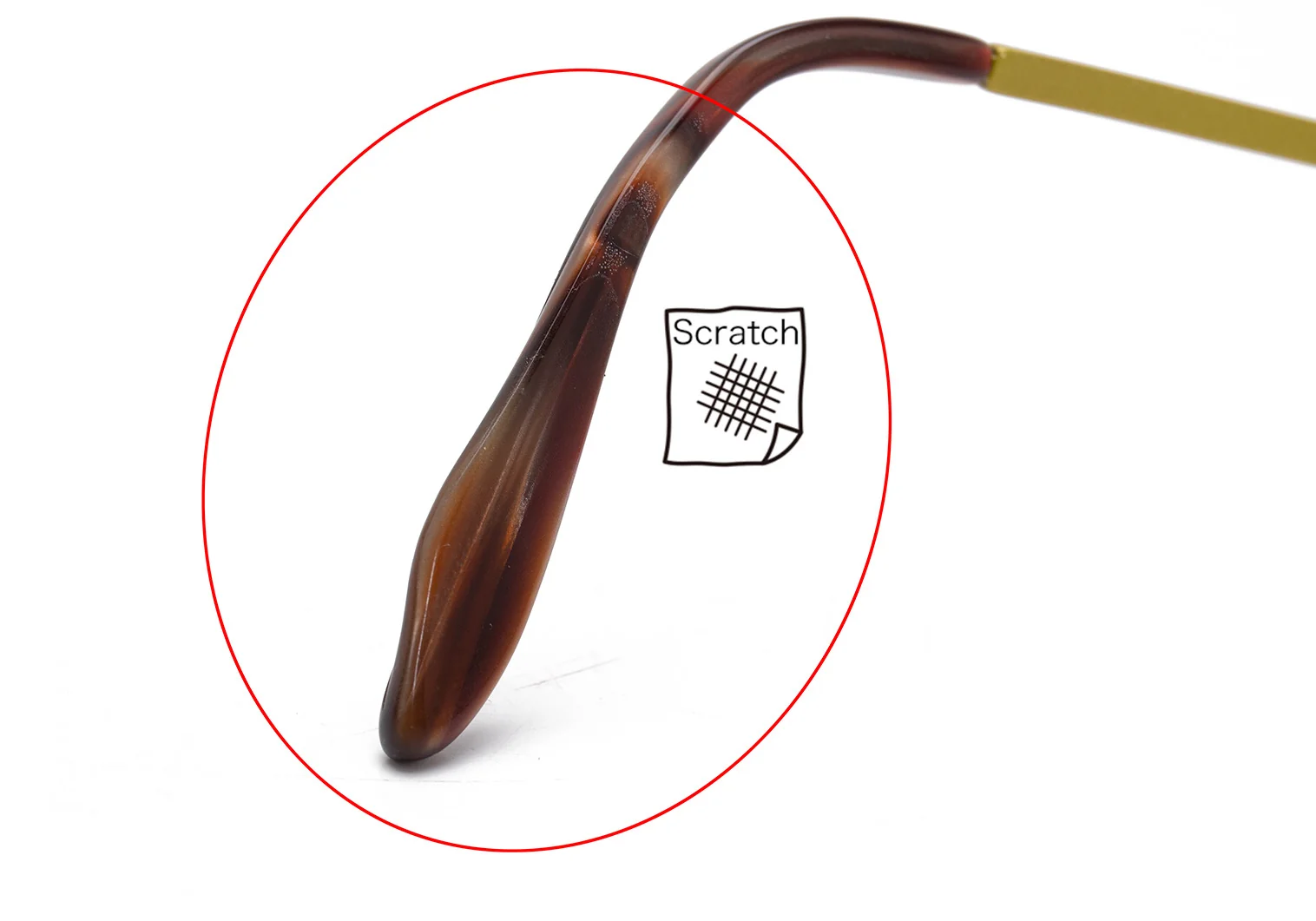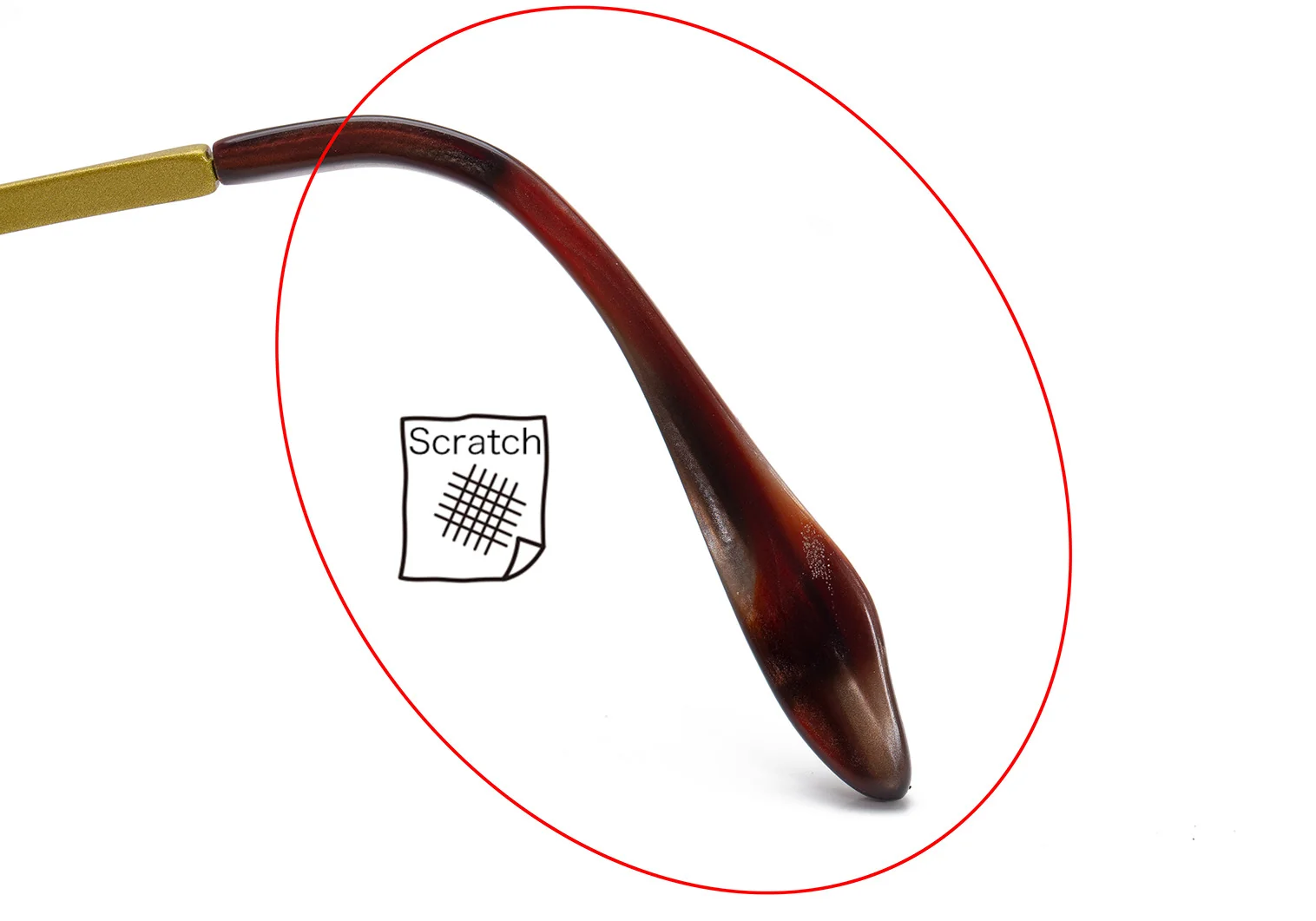 度入りレンズです。フレームにキズ、鼻パッド・モダンにスレがあります。(写真参照) お客様一人一人の視力、骨格、鼻幅、耳の高さが違います。このような理由からオンラインショップでの度付きレンズ販売はしておりません。 お手数をおかけしますが、度入りレンズはお近くの眼鏡店等でお買い求めください。 他眼鏡店にてレンズの入れ替え、調整等に生じた不具合、破損については一切の責任を負いかねますので予めご了承下さい。