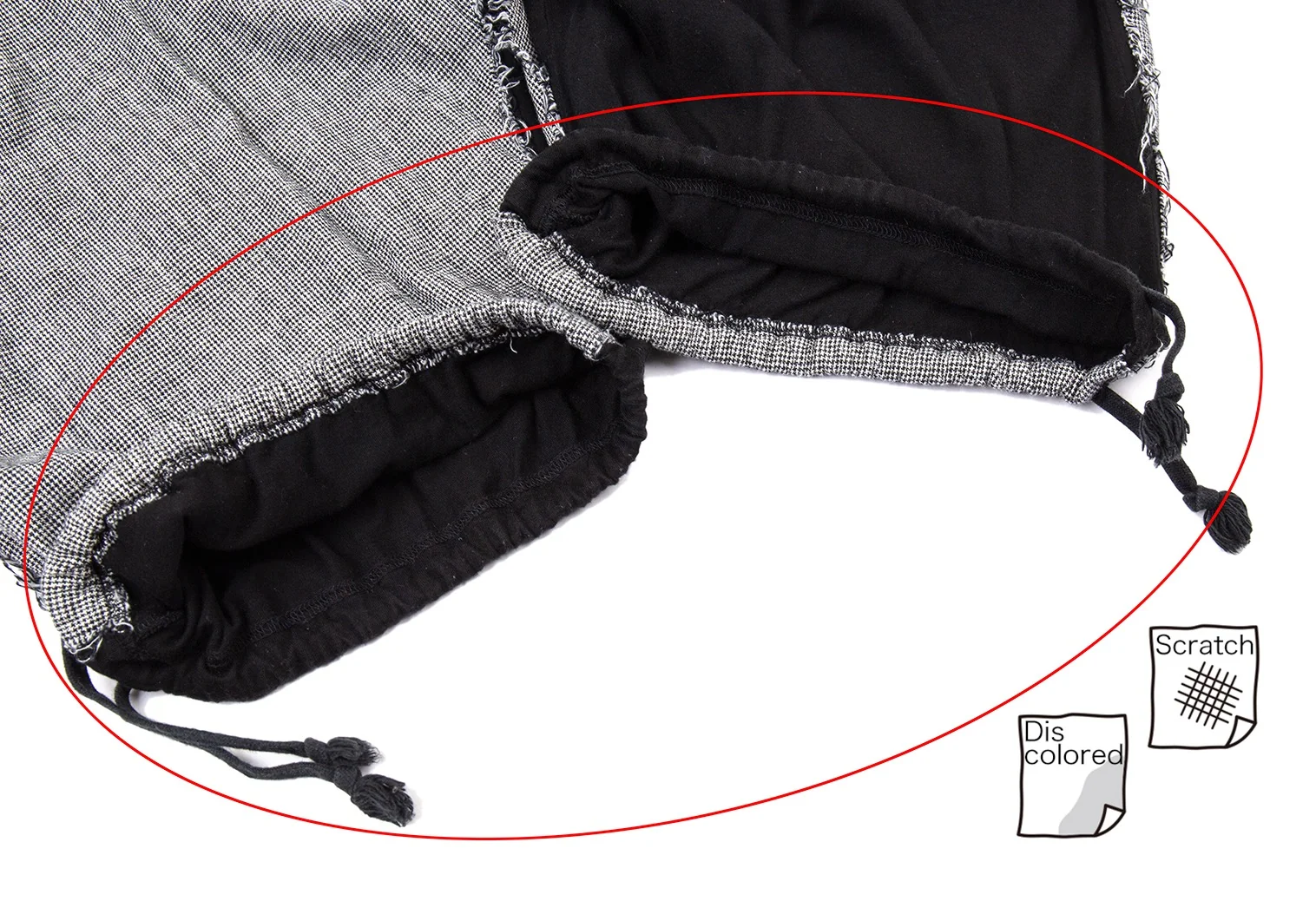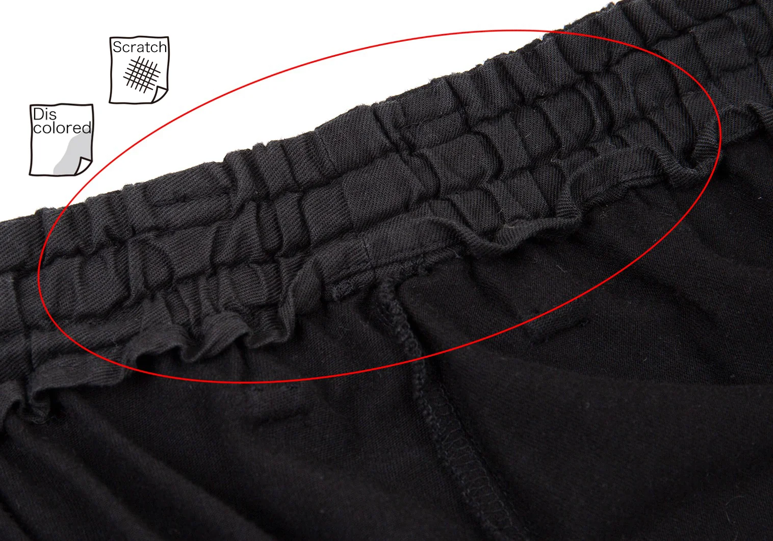貼り付け部分は着用によりステッチ落ちしてきます。ウエスト周り・ウエスト裏・裾先に色褪せと毛羽立ちがあります(画像参照)。その他目立ったシミ、汚れ、ほつれ等ありません。クリーニング済み
