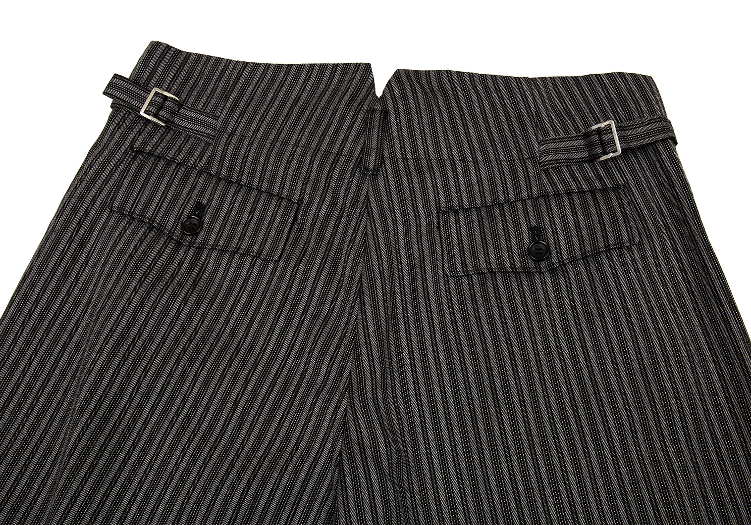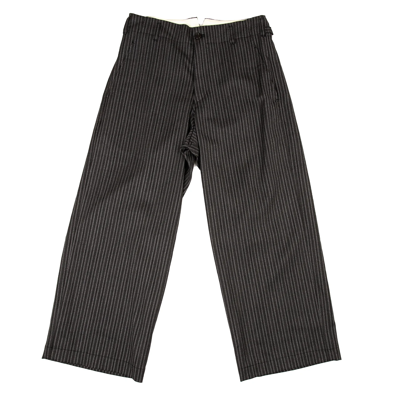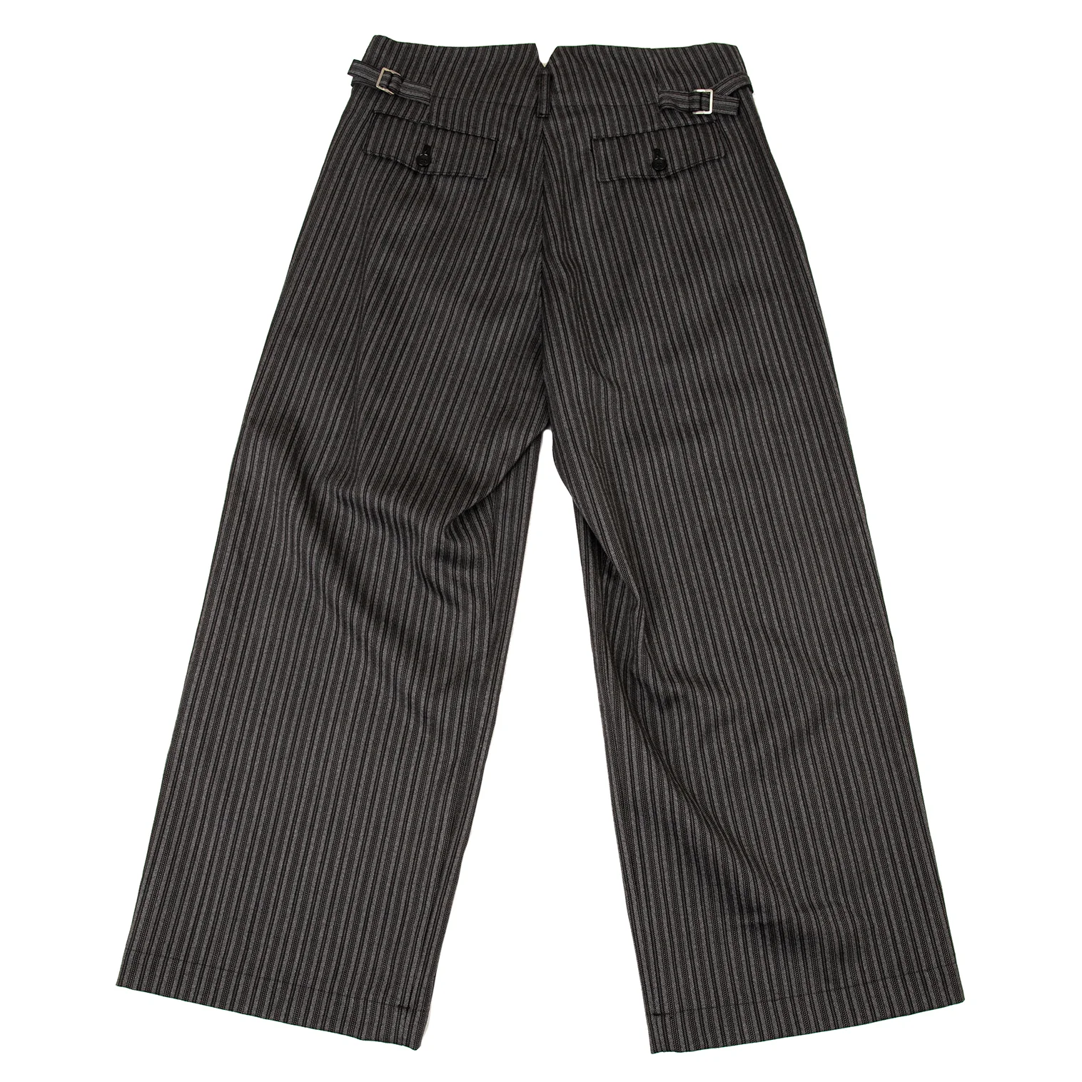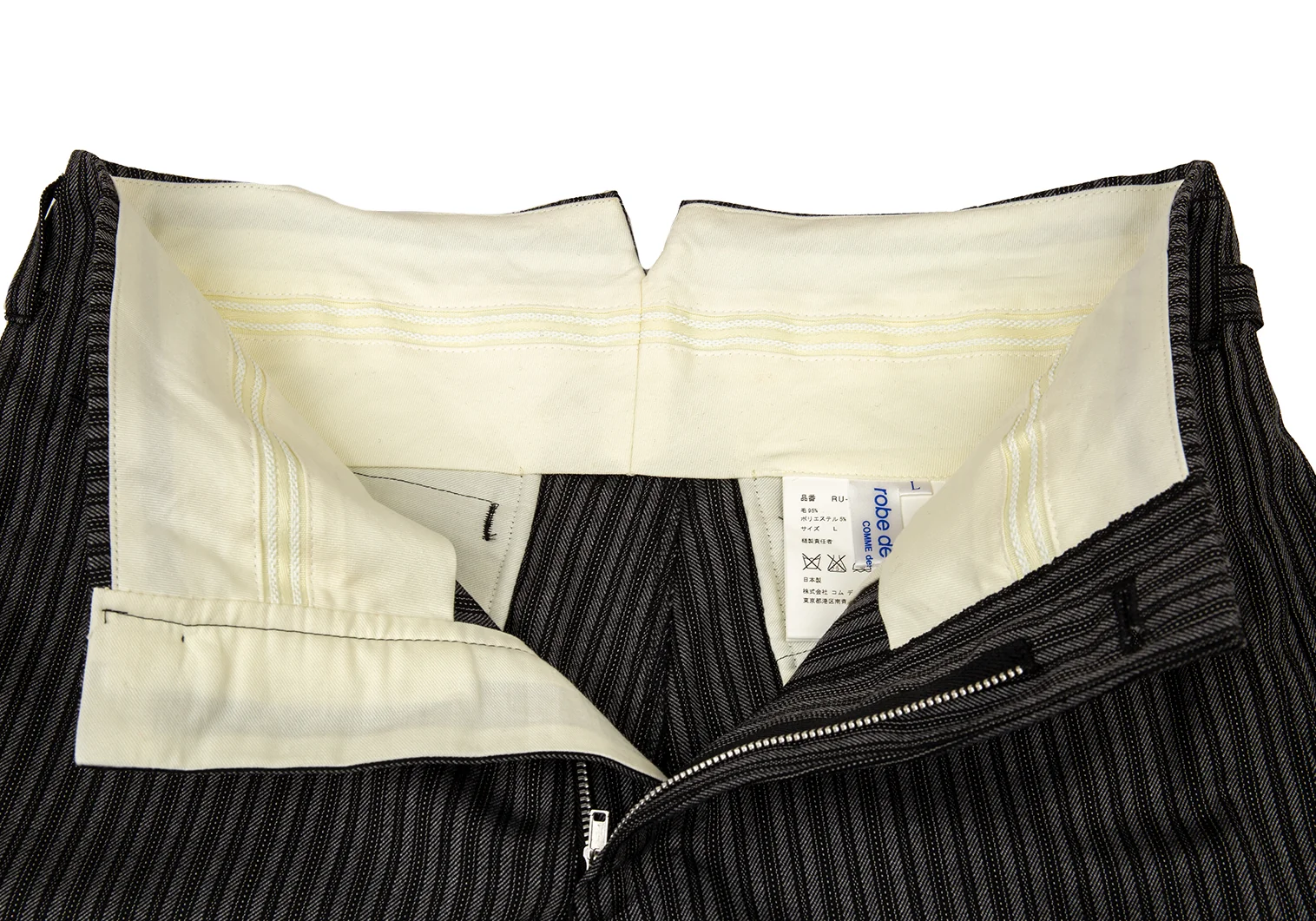 ローブドシャンブル コムデギャルソンrobe de chambre COMME des GARCONS ウールストライプワイドパンツ グレー黒L