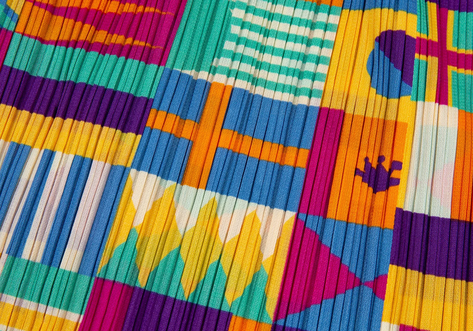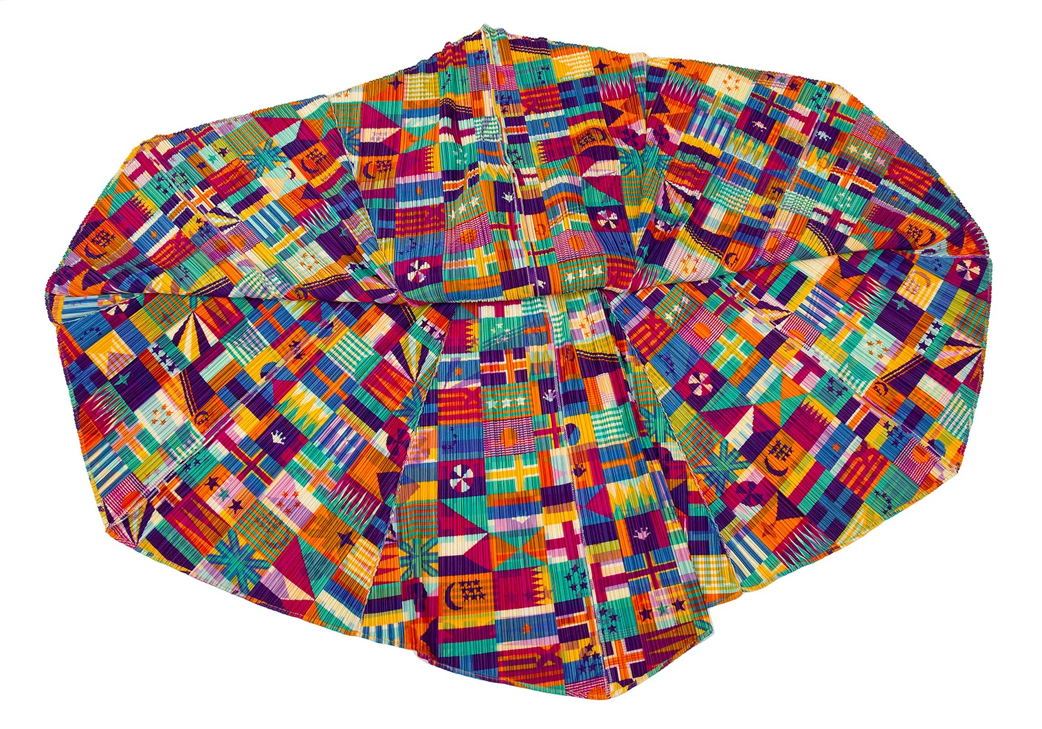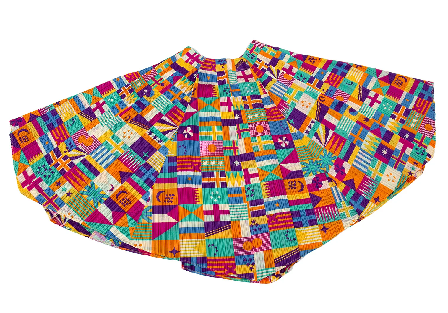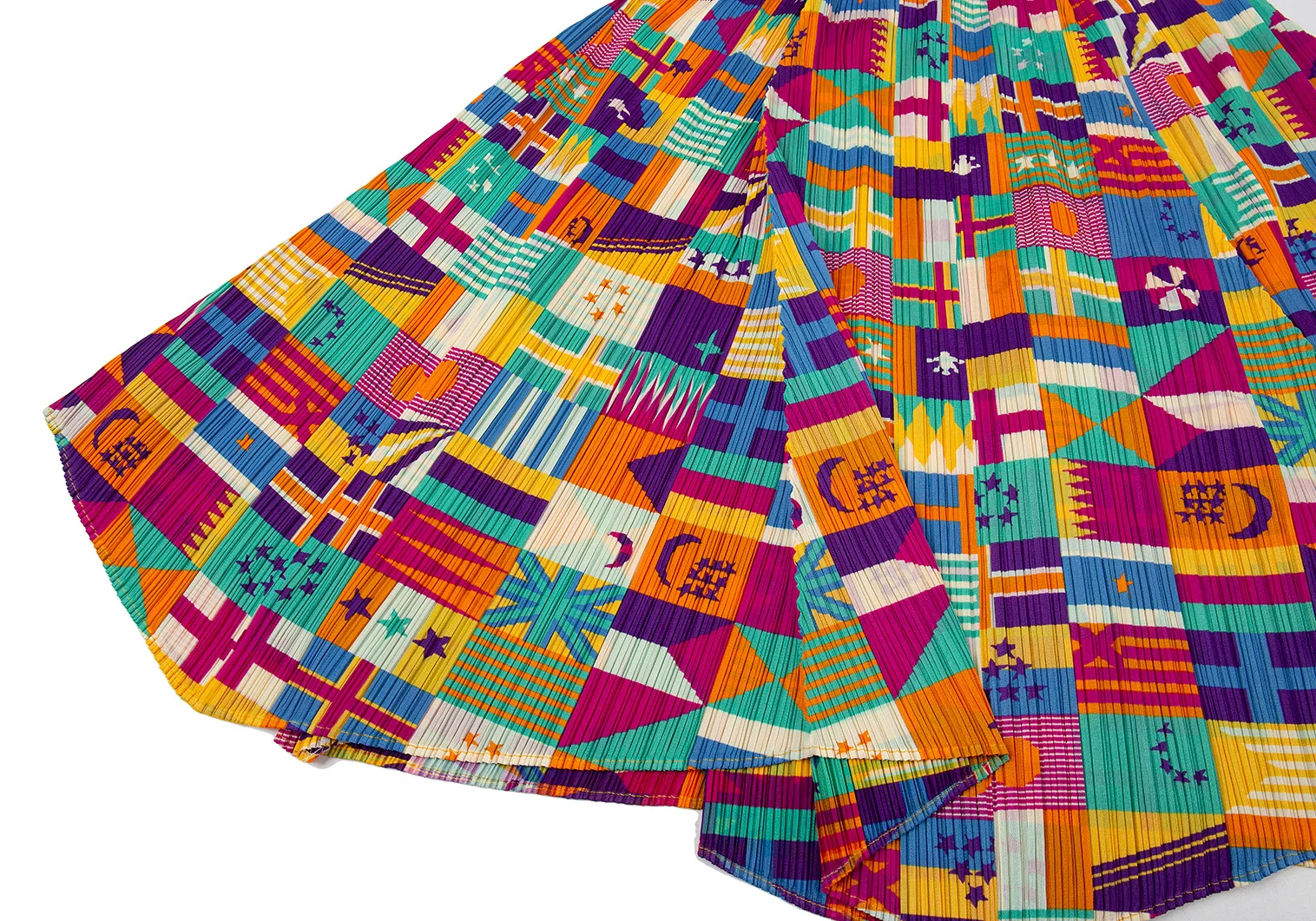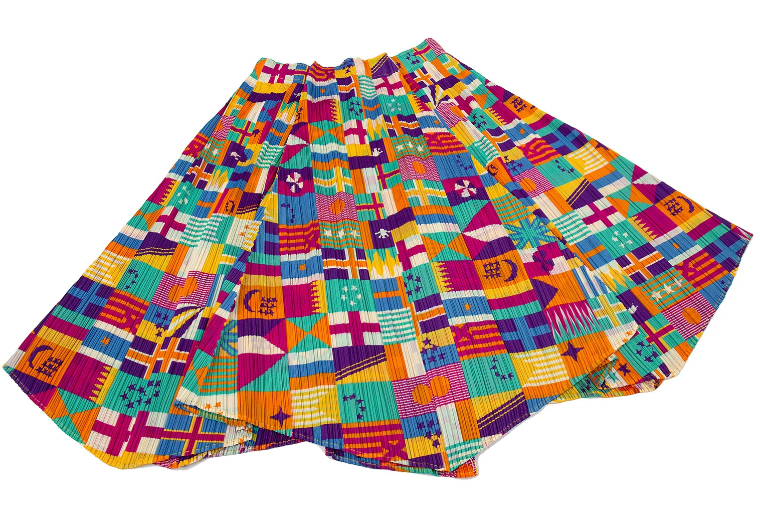プリーツプリーズPLEATS PLEASE プリーツフラッグプリントフレアスカート マルチ5