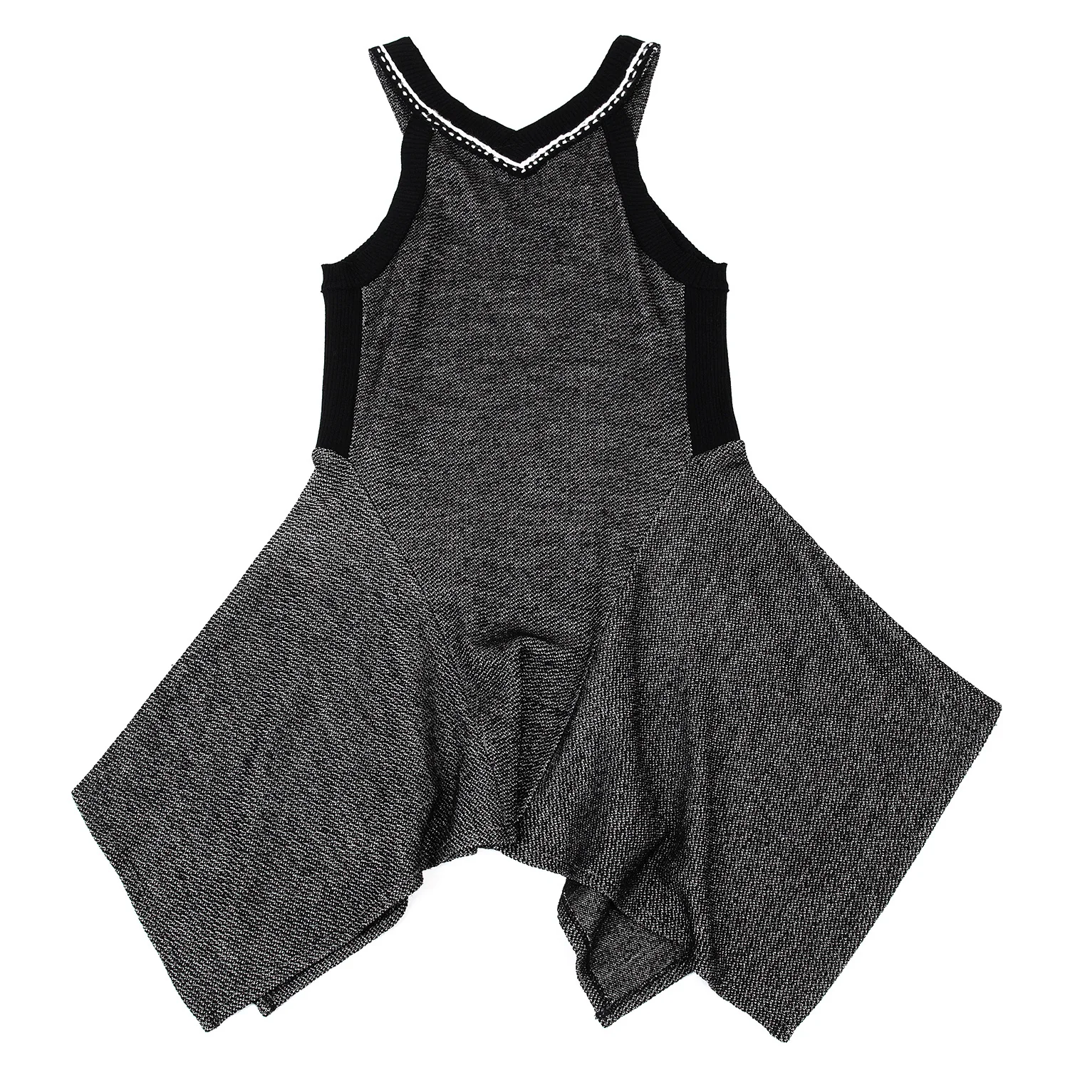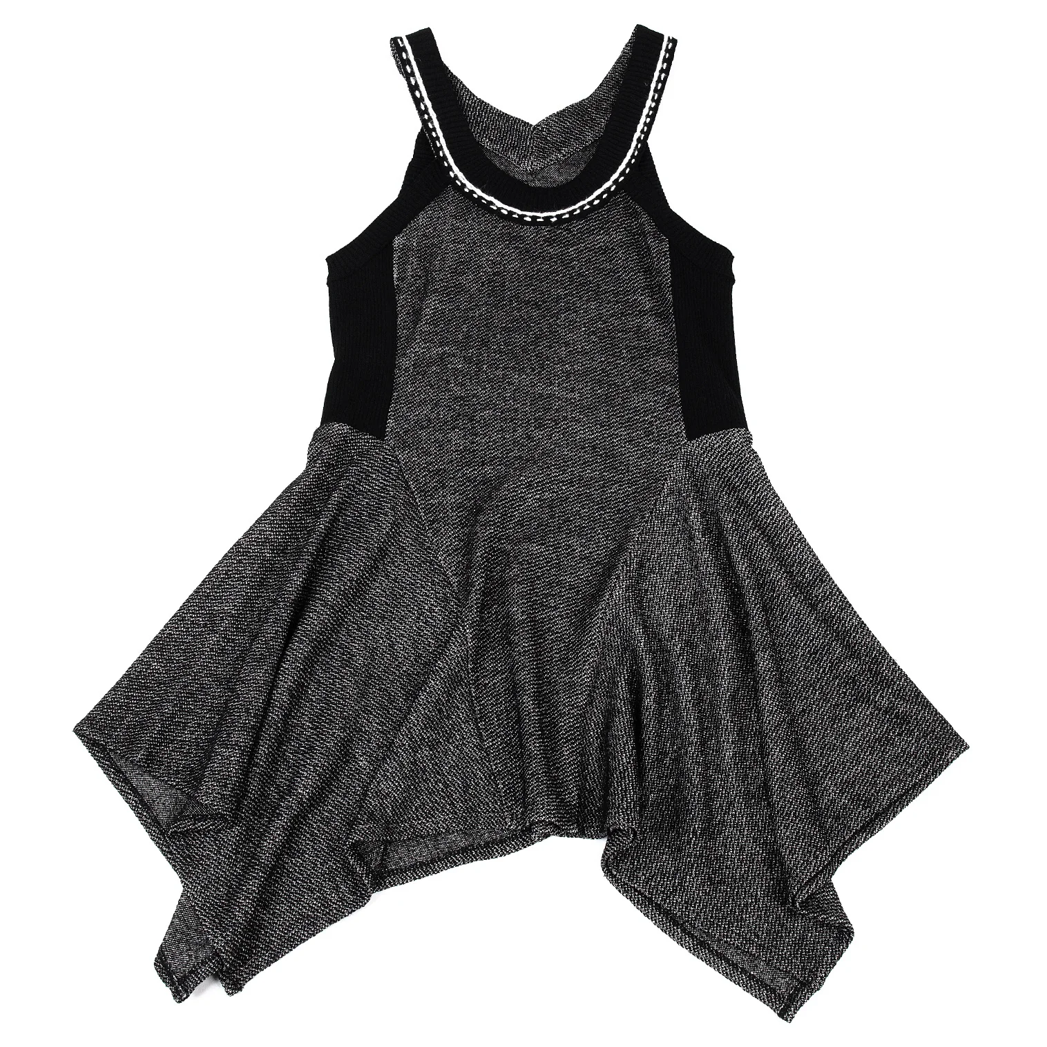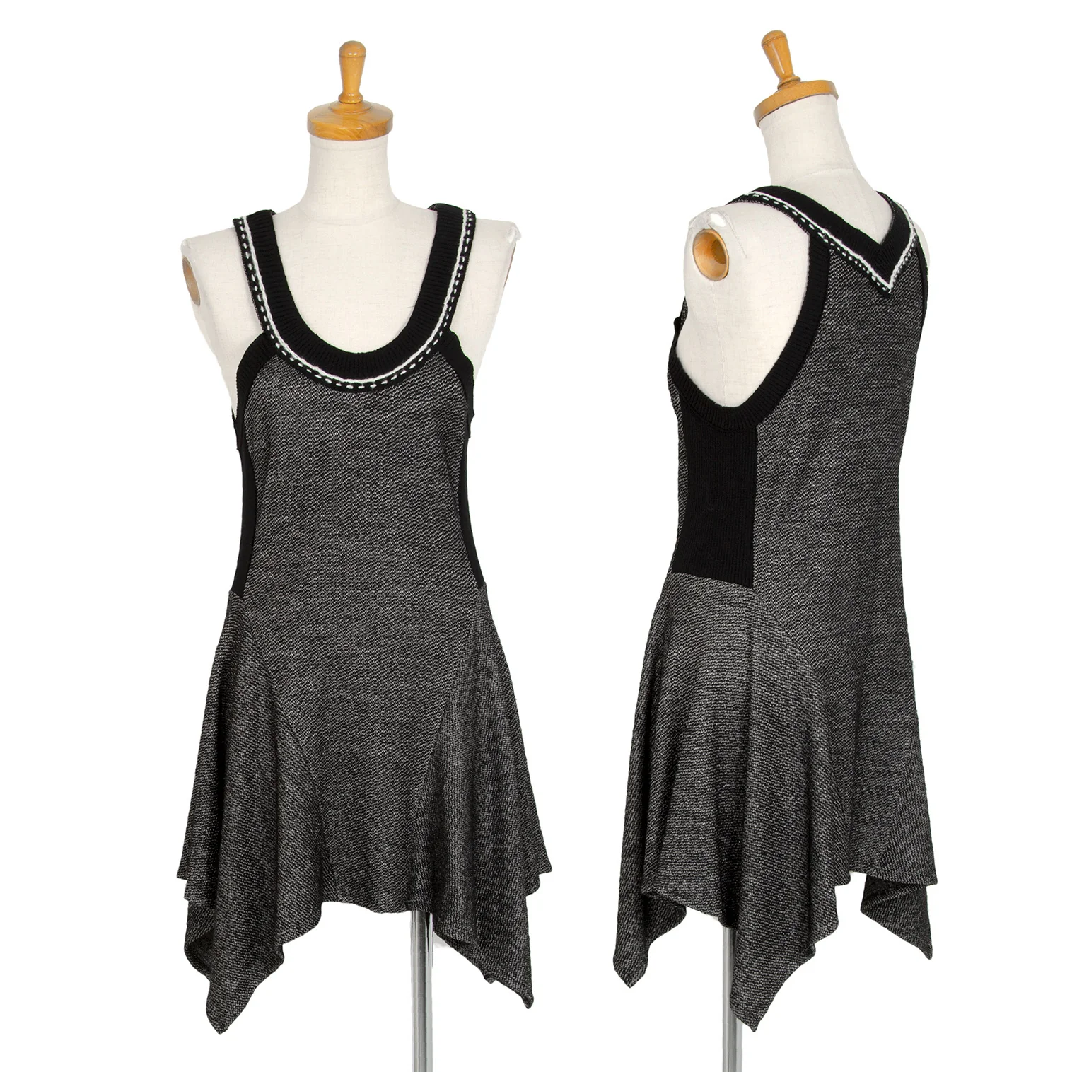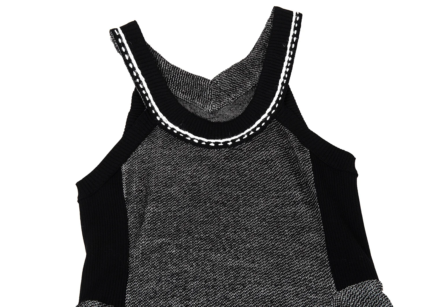 ヒロコビスHIROKO BIS ウールアセテートリブニット切替ノースリーブフレアワンピース 黒9