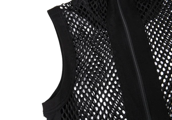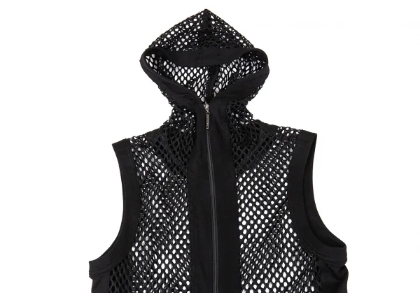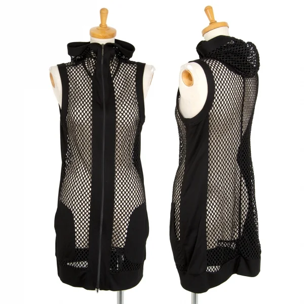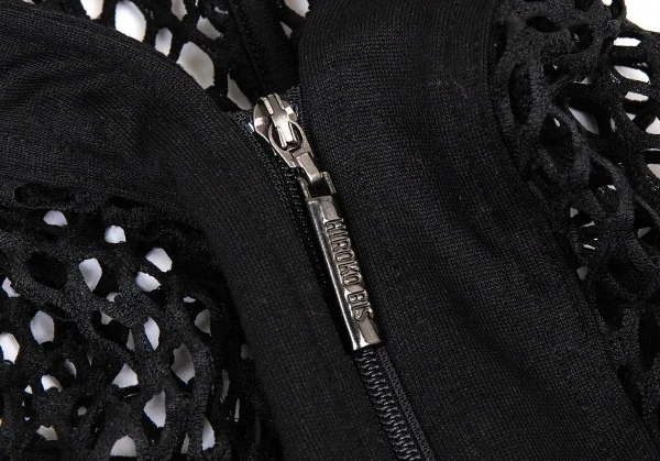 ヒロコビスHIROKO BIS レーヨンポリメッシュダブルジップノースリーブパーカー 黒9