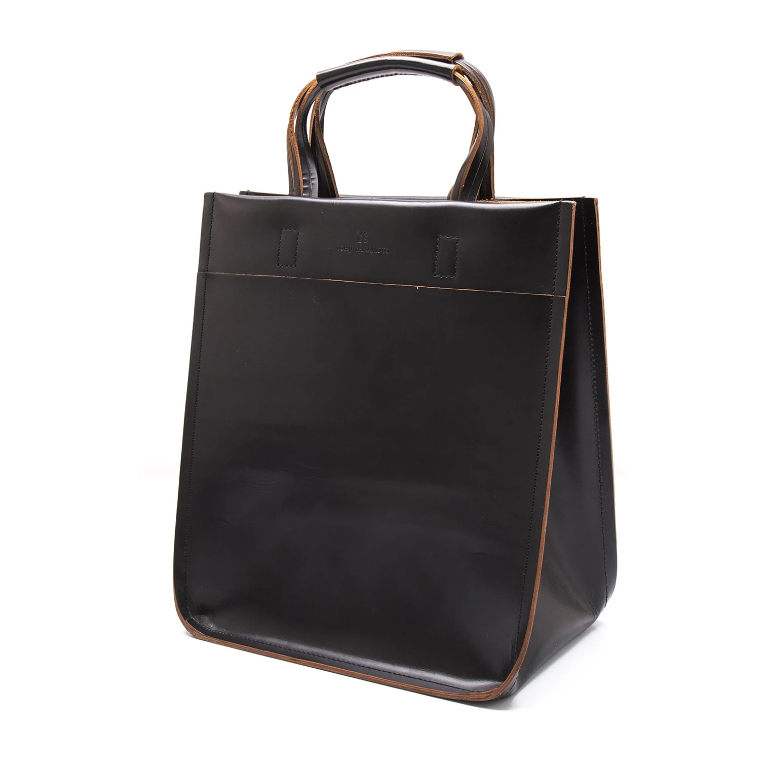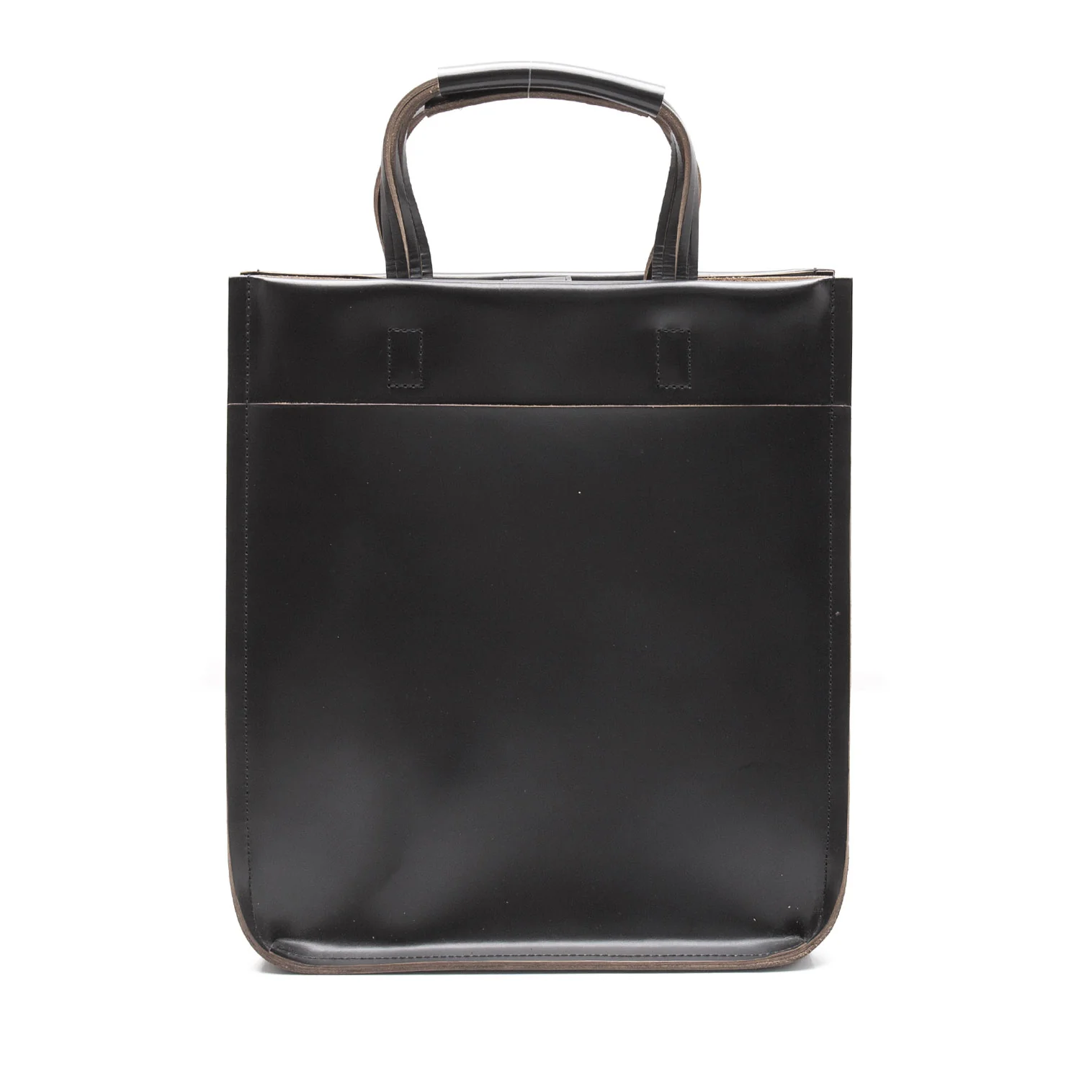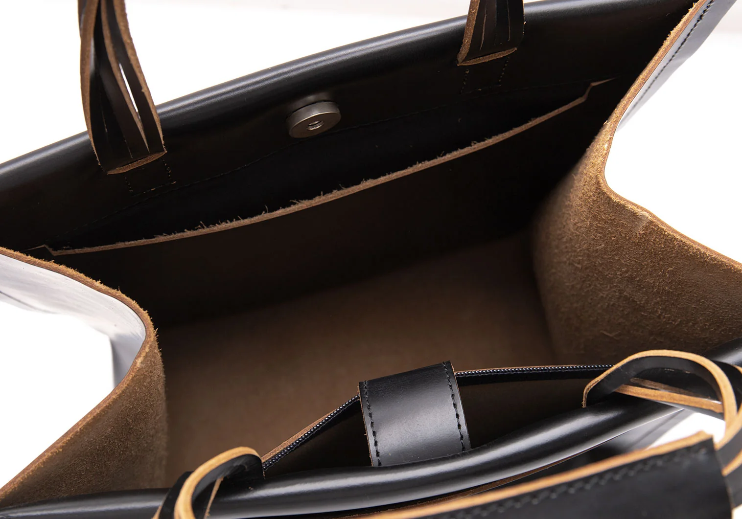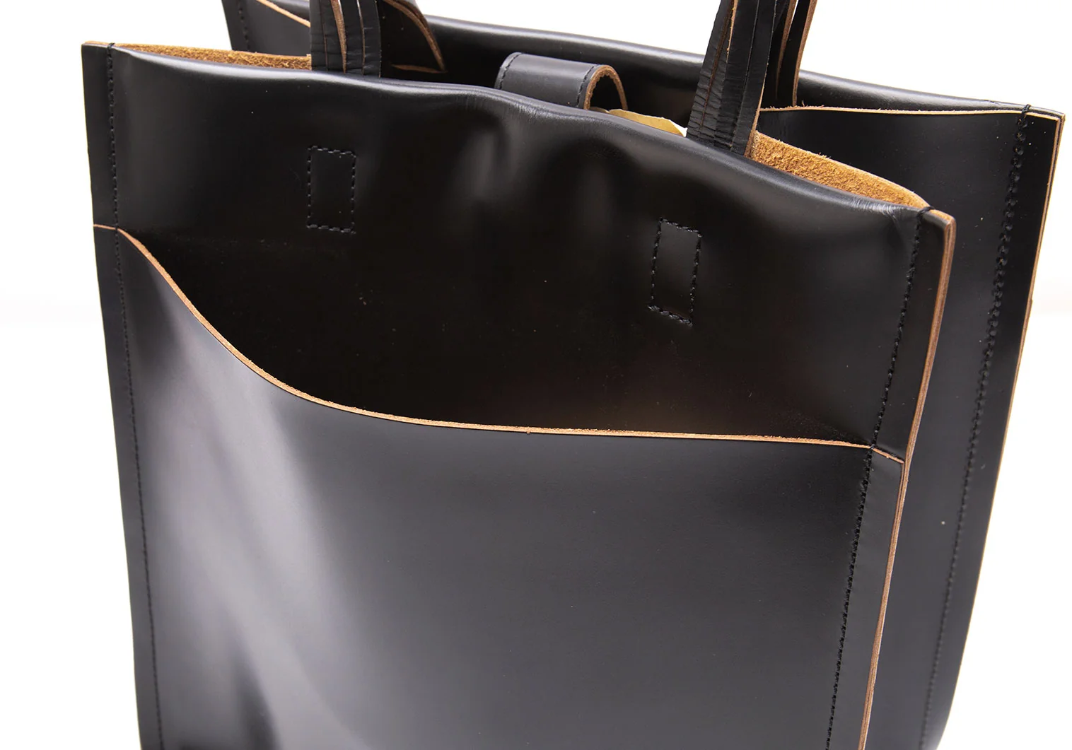 ワイズY's レザースクエアポケットハンド切り込みバッグ 黒