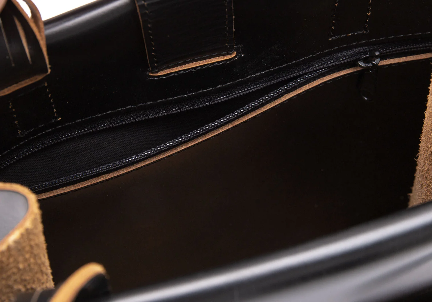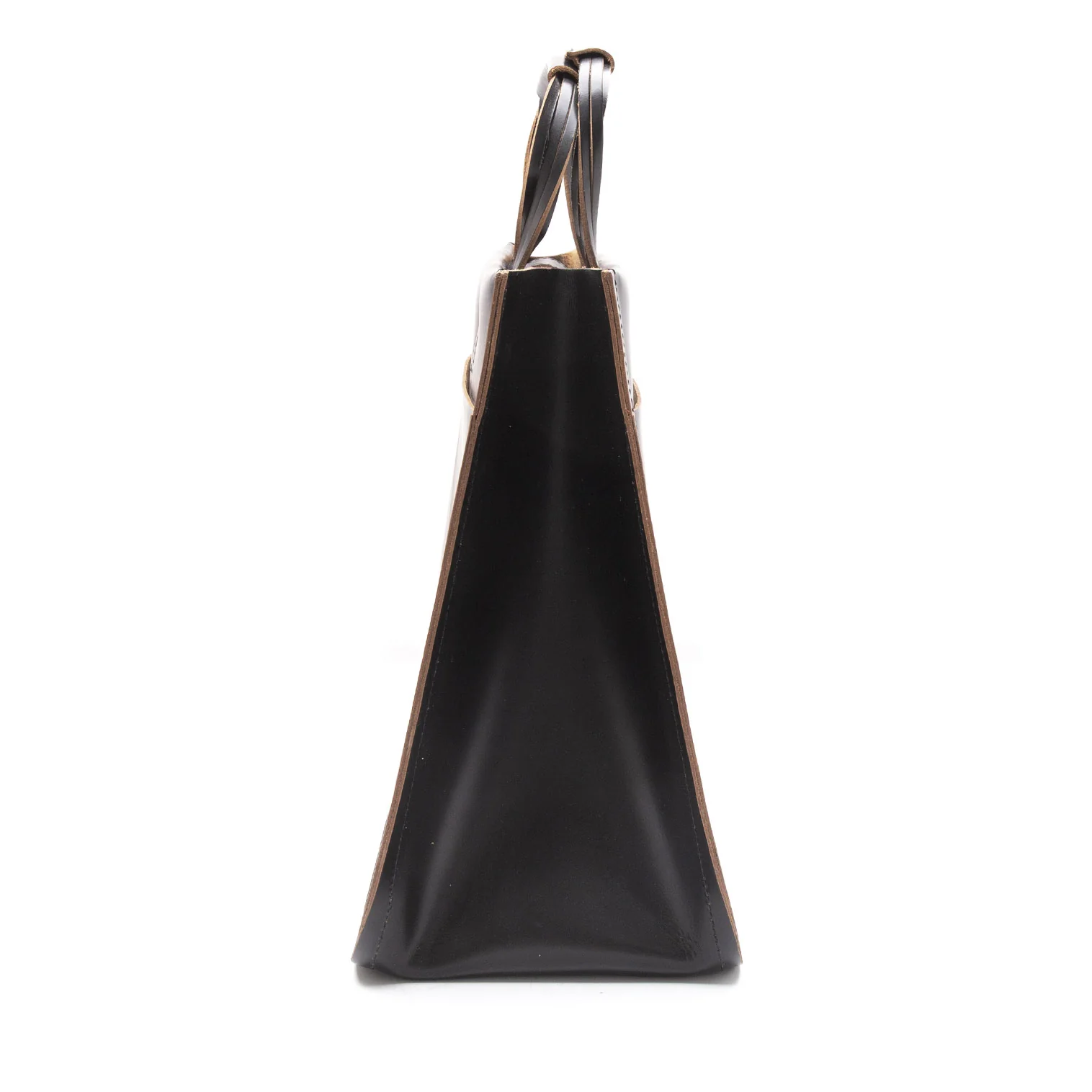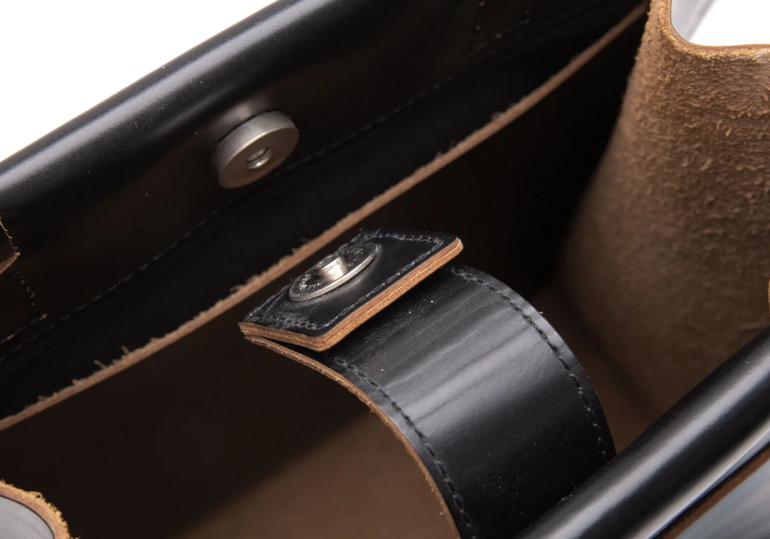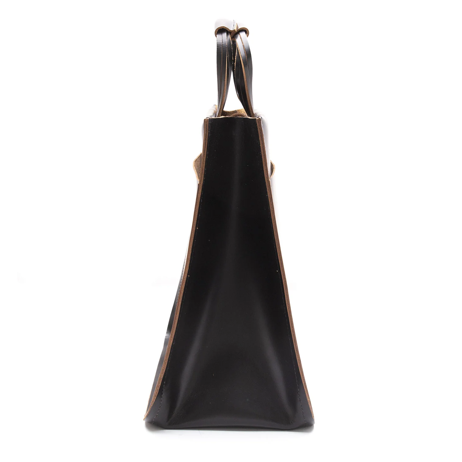 ワイズY's レザースクエアポケットハンド切り込みバッグ 黒