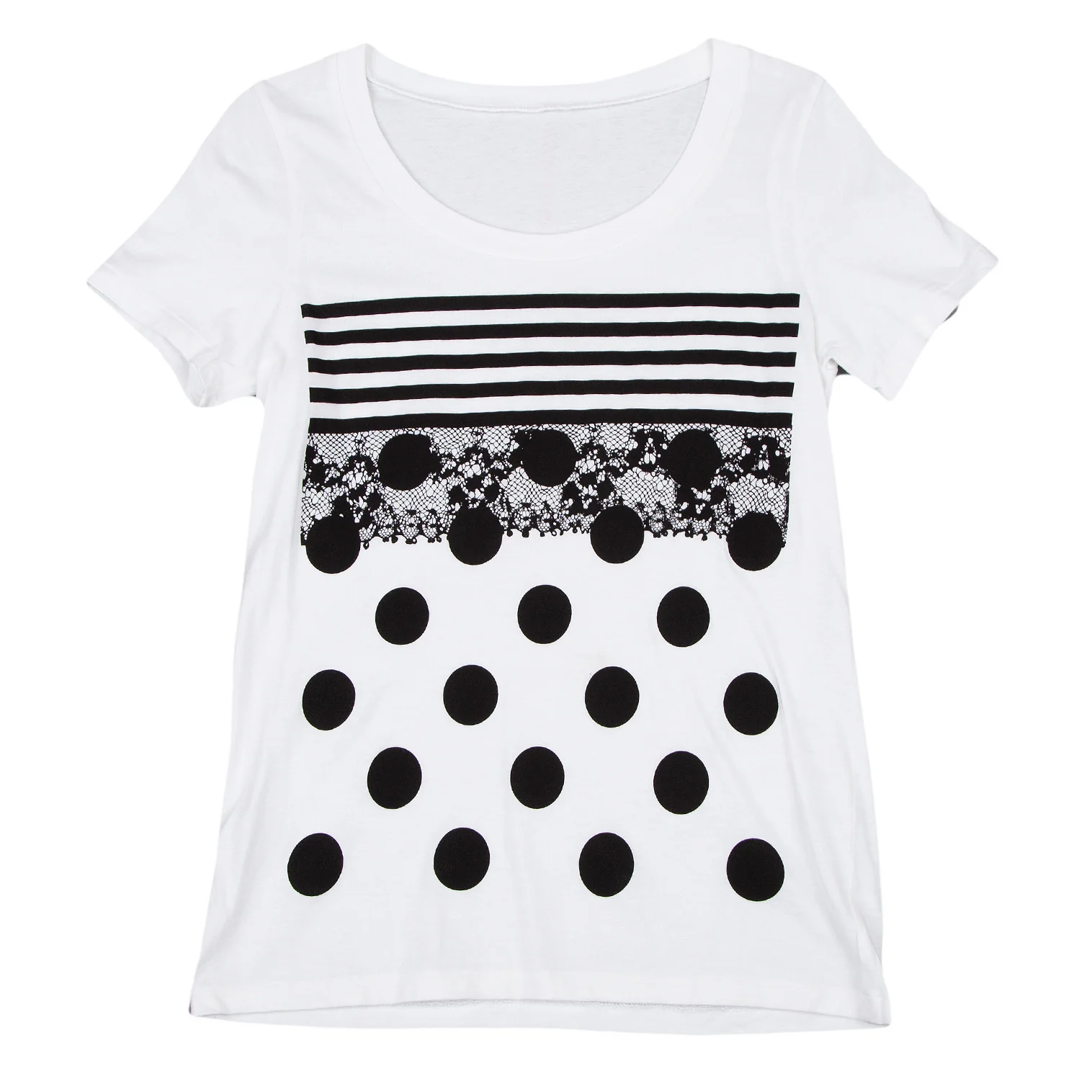 スナオクワハラsunao kuwahara コットンドットレースプリントTシャツ 白M