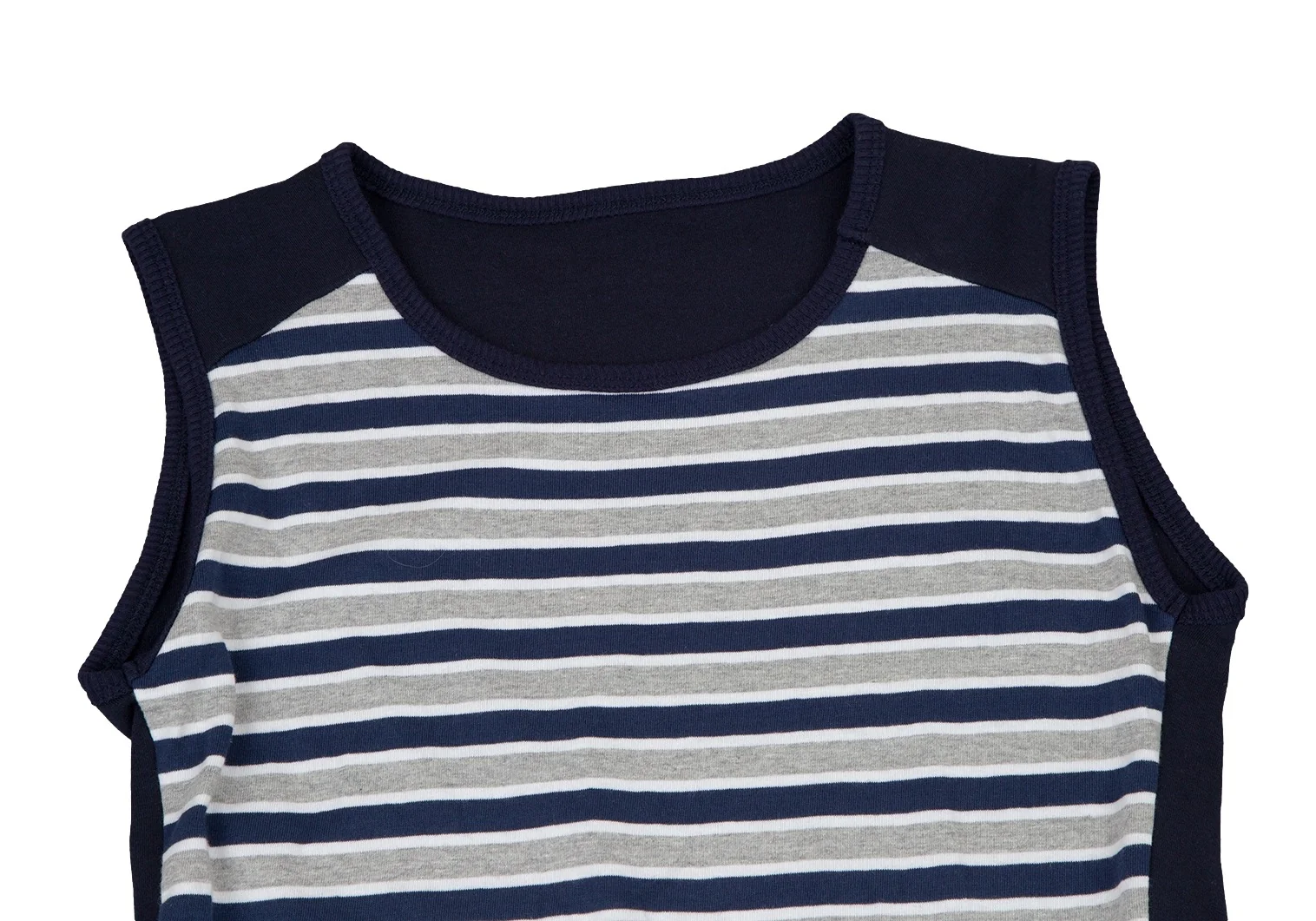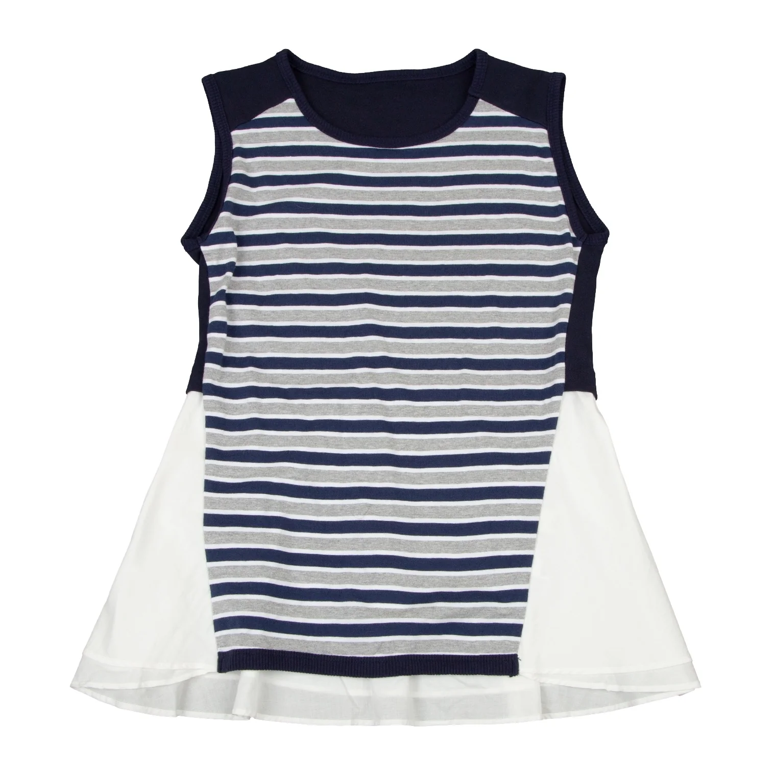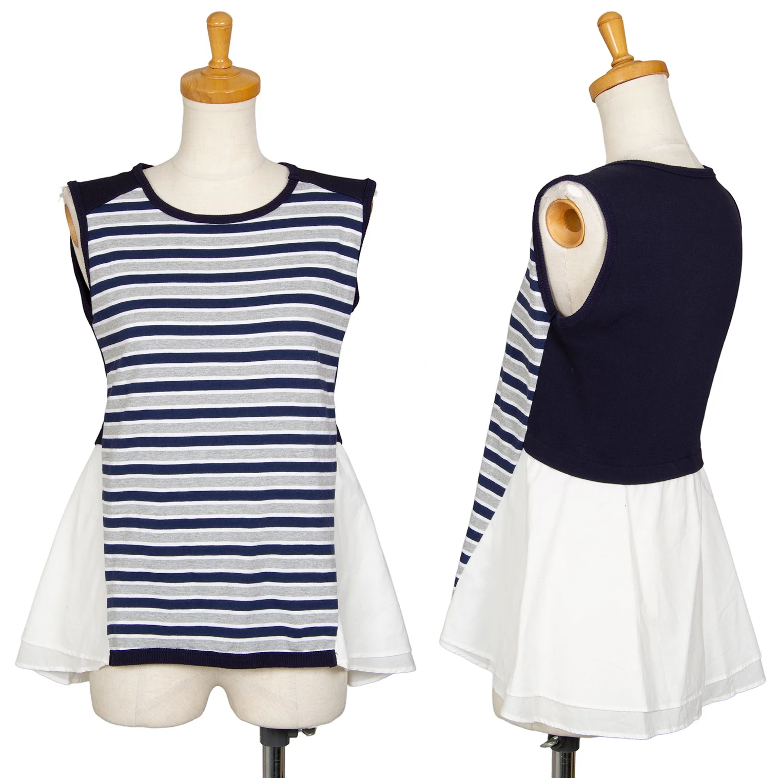 アツロウタヤマATSURO TAYAMA コットンボーダーシャツレイヤードノースリーブトップス 紺グレー白36
