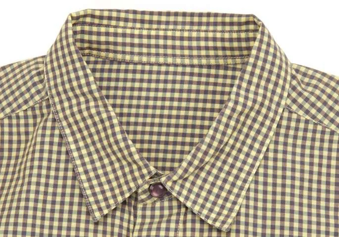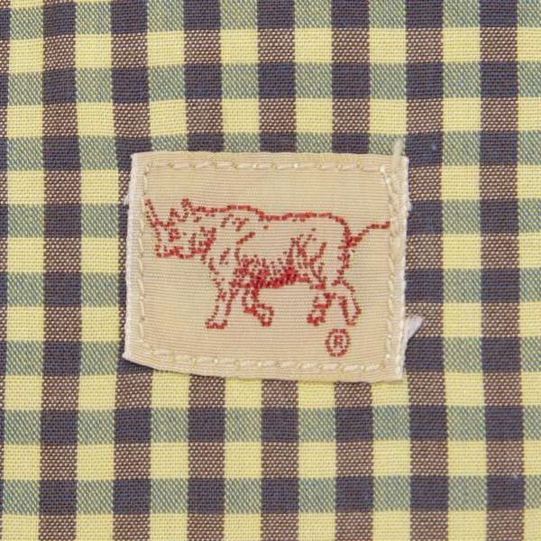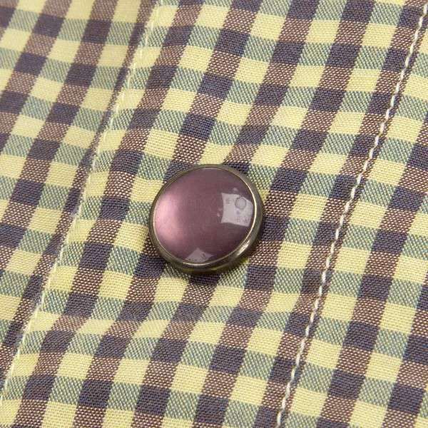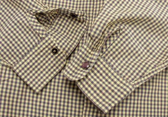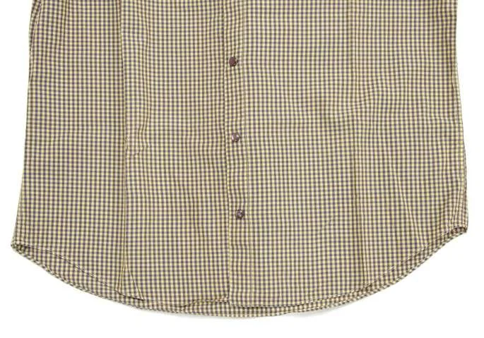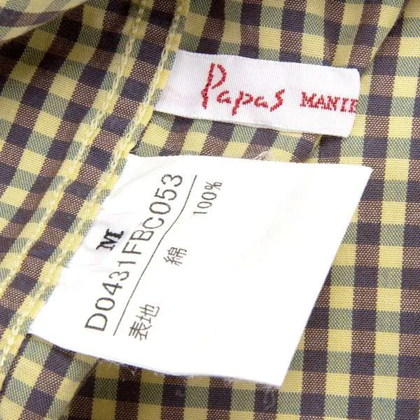 パパスPapas ドットボタンギンガムチェックコットンシャツ 黄パープルM