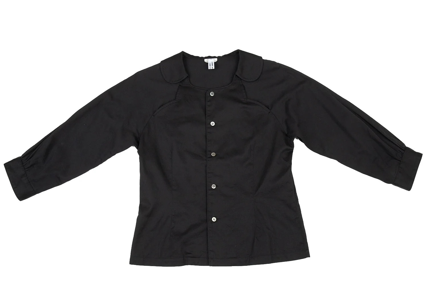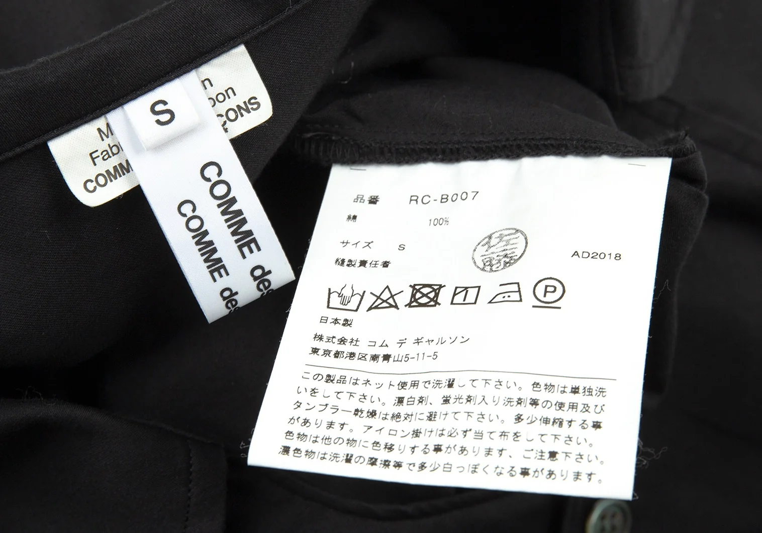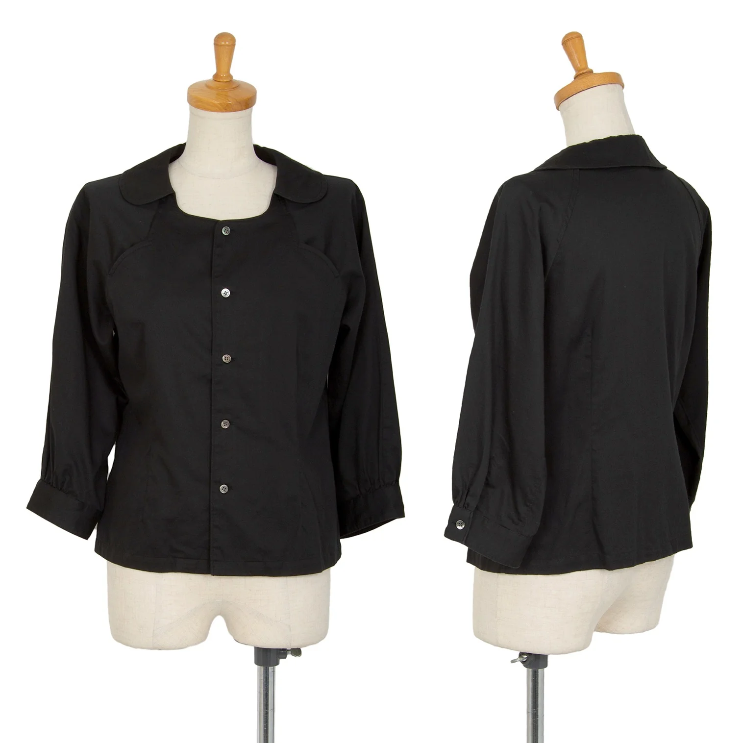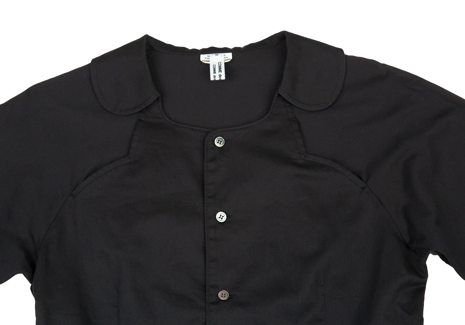 コムコム コムデギャルソンCOMME des GARCONS コットンスクエアラウンドカラー七分袖シャツ 黒S