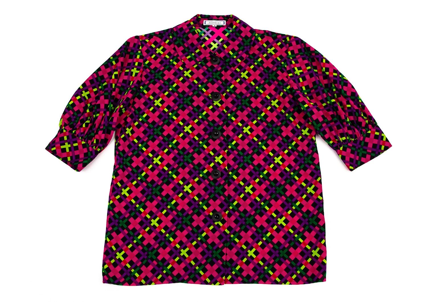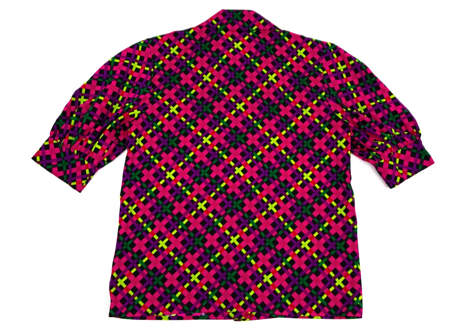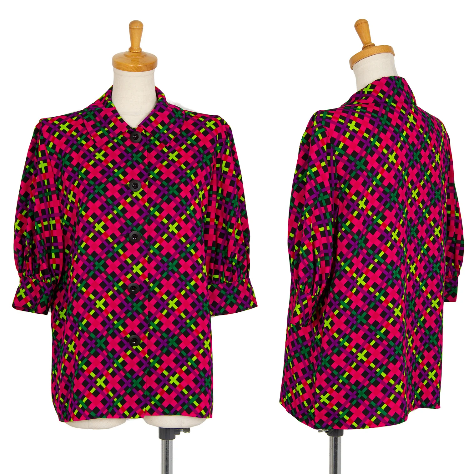 イヴサンローランYves Saint Laurent ポリバイアスチェック5分袖シャツ マルチM
