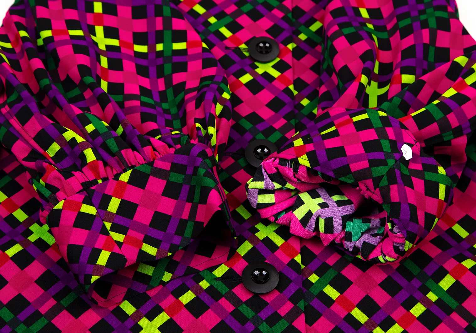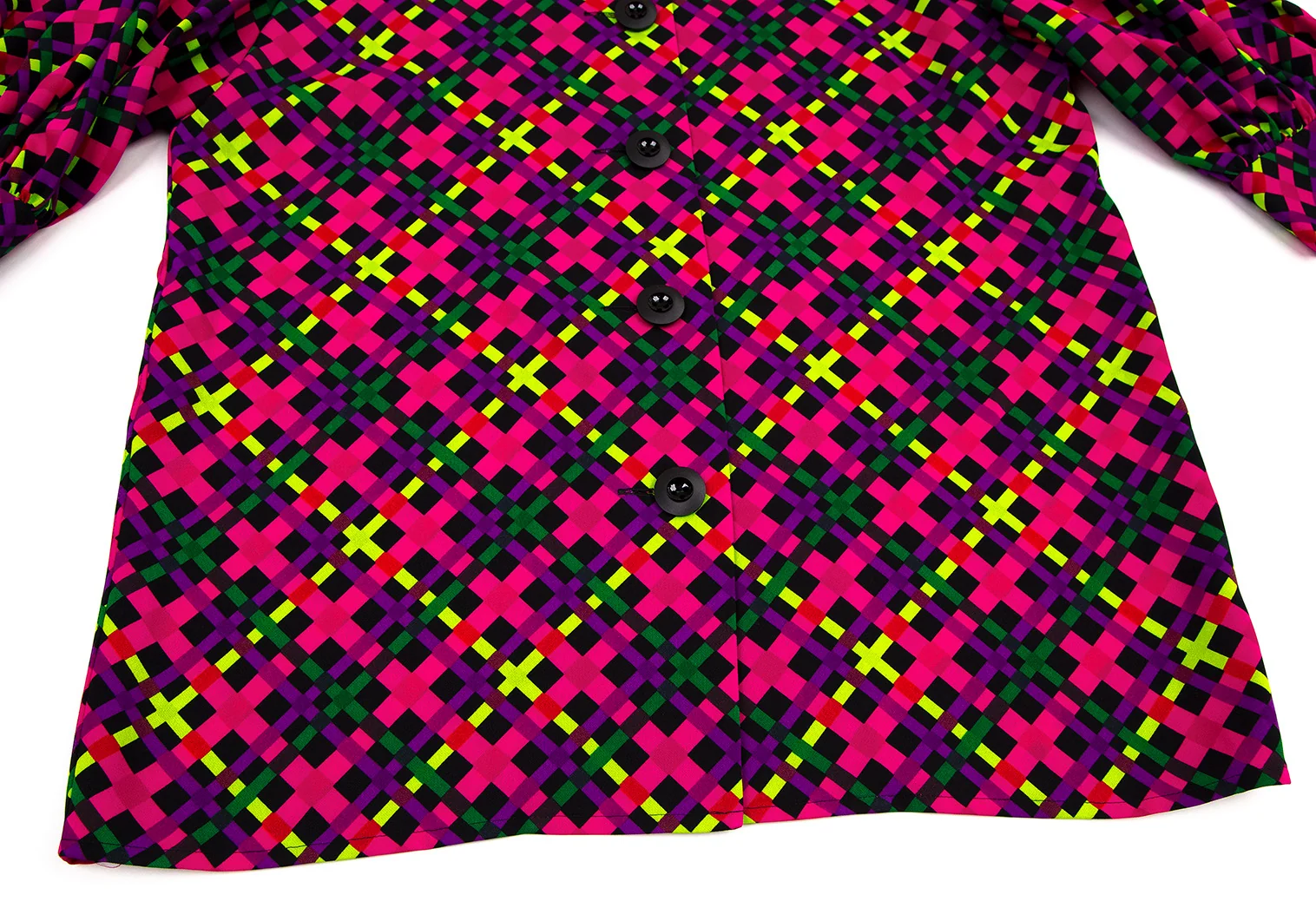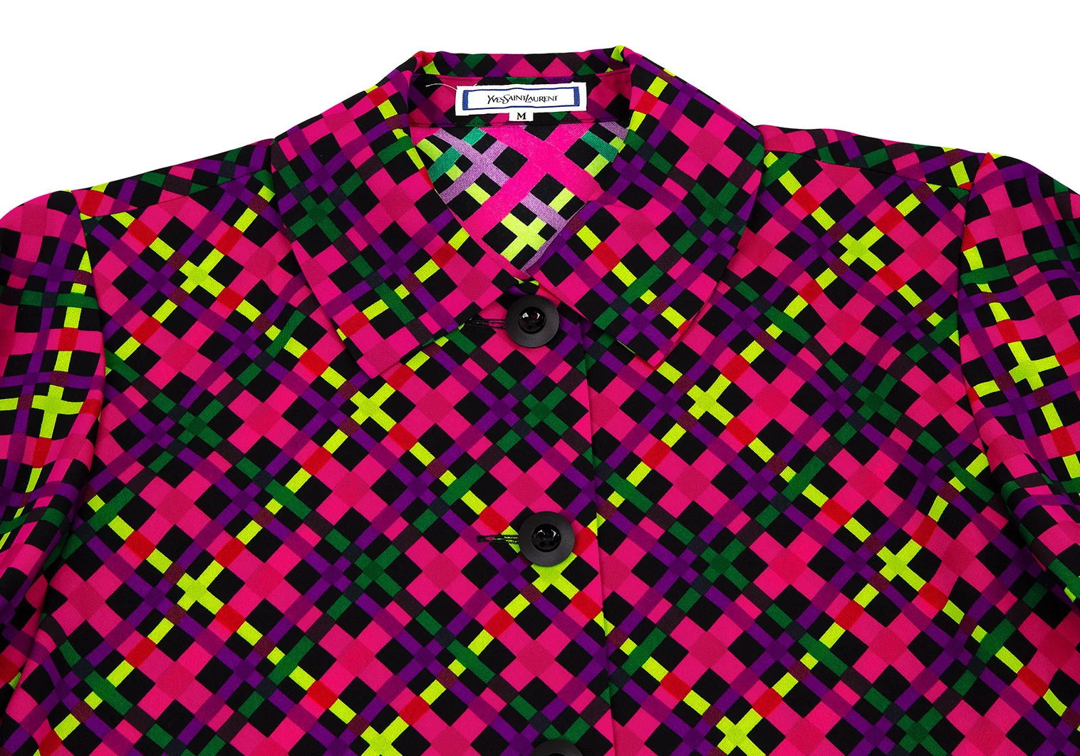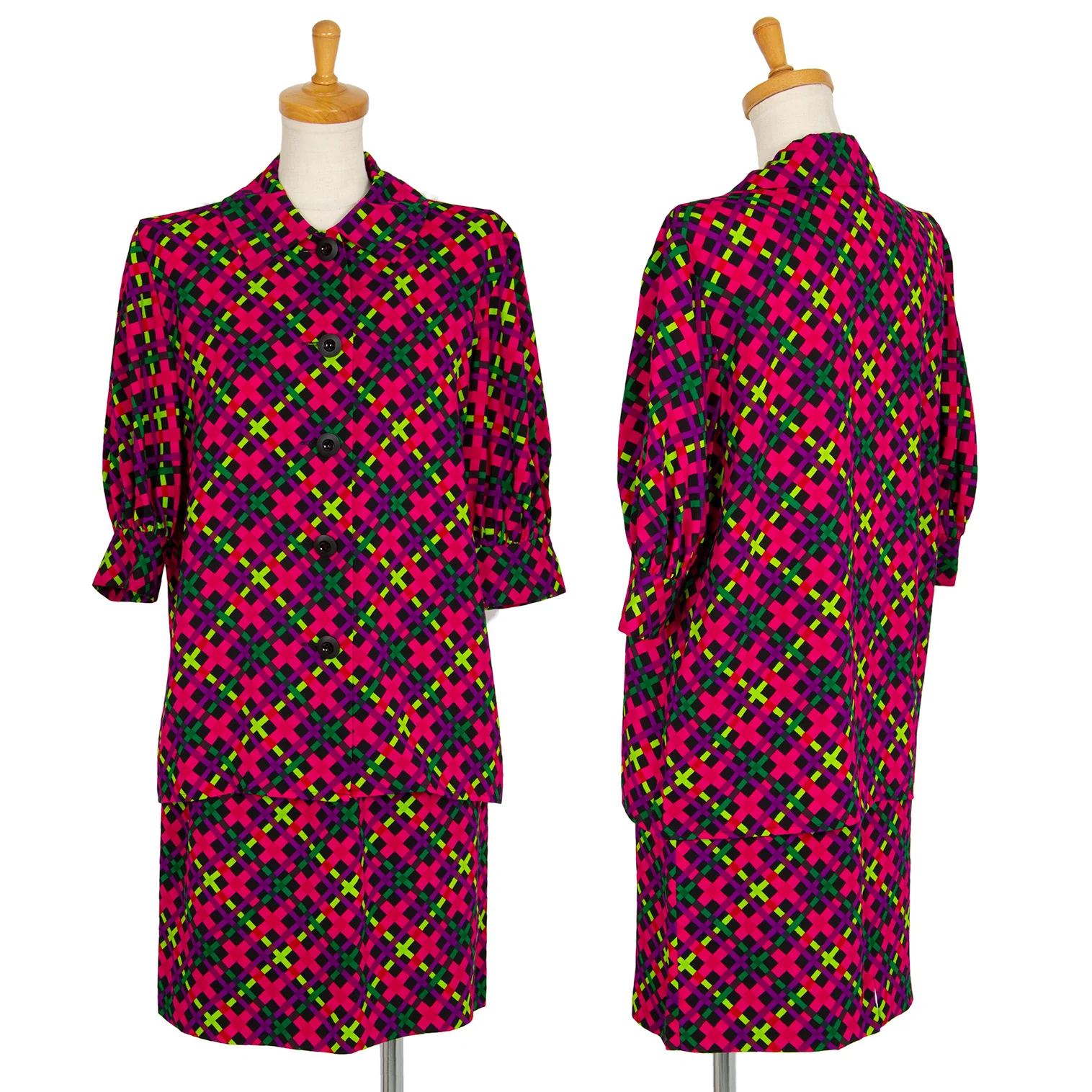 イヴサンローランYves Saint Laurent ポリバイアスチェック5分袖シャツ マルチM