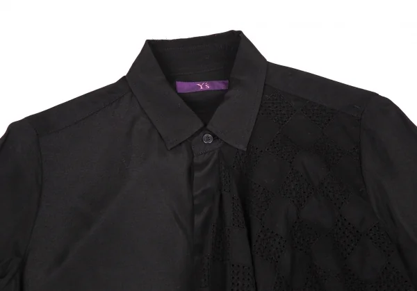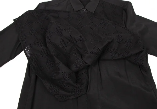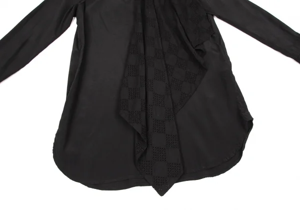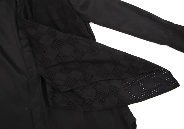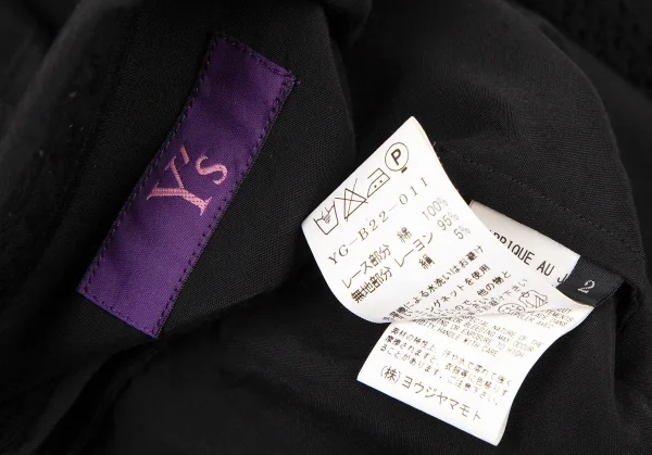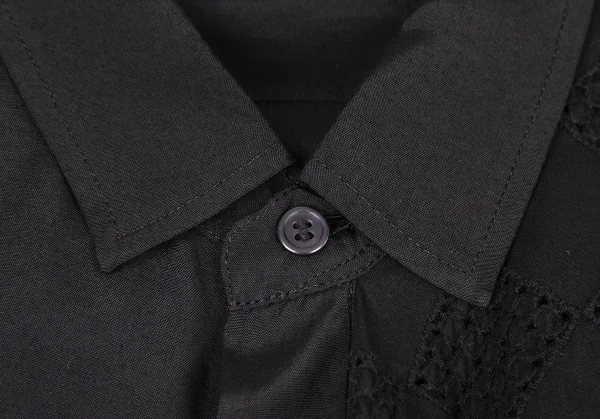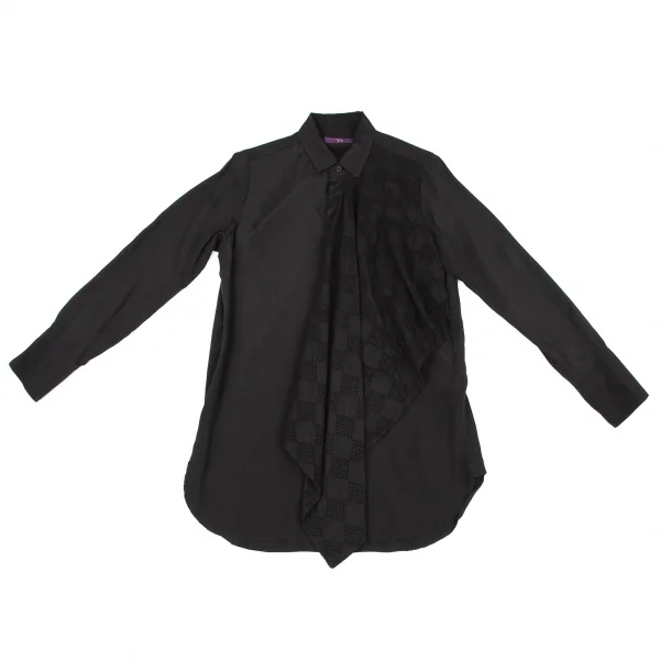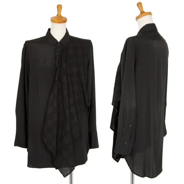 タケシコウサカバイ ワイズ ピンクレーベルTAKESHI KOSAKA by Y's Pink Label レーヨンフロントレースアシンメトリーシャツ 黒2