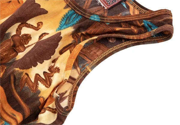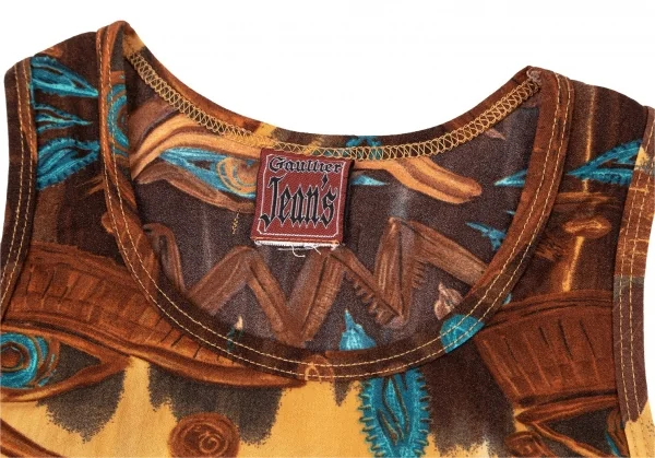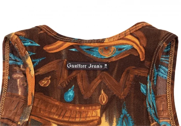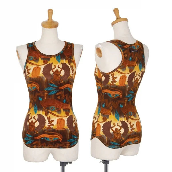 ゴルチエジーンズGAULTIER JEAN'S スカラベプリントストレッチタンクトップ 茶M位