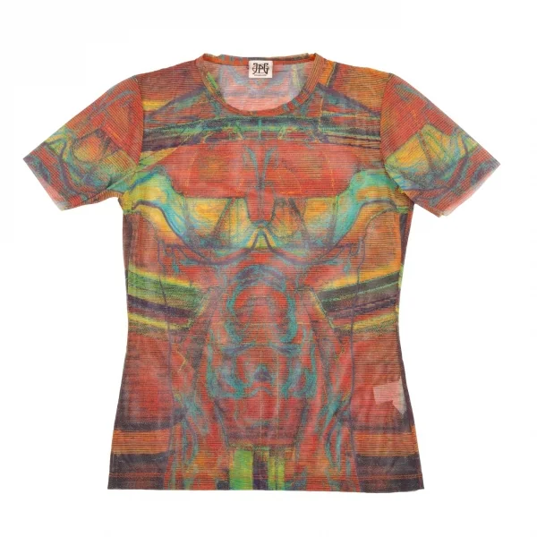ジャンポールゴルチエJean Paul GAULTIER PARIS サイケデリックプリントパワーネットTシャツ オレンジ他40