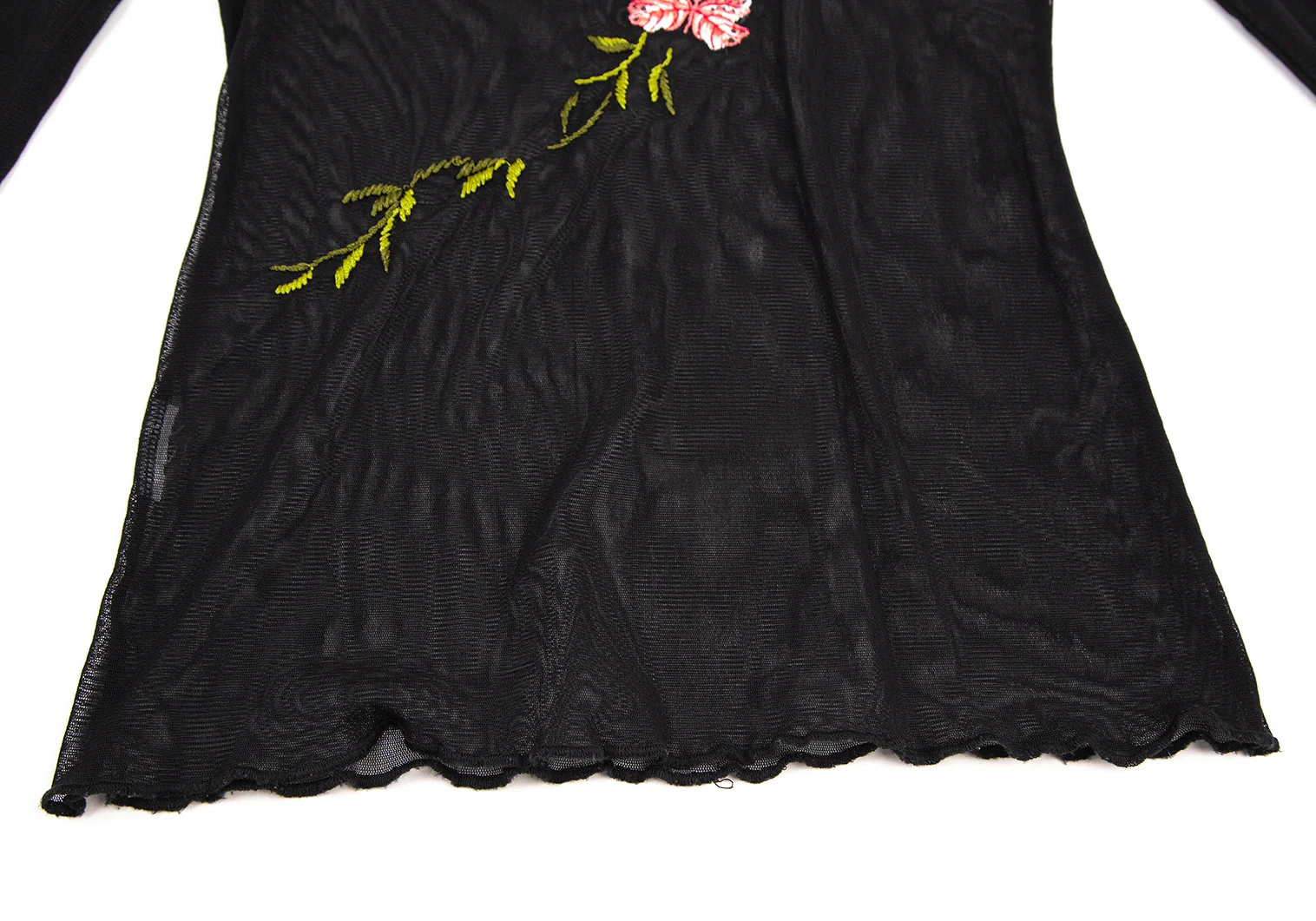 ジャンポールゴルチエ ファムJean Paul GAULTIER FEMME フラワー刺繍パワーネットカットソー 黒40