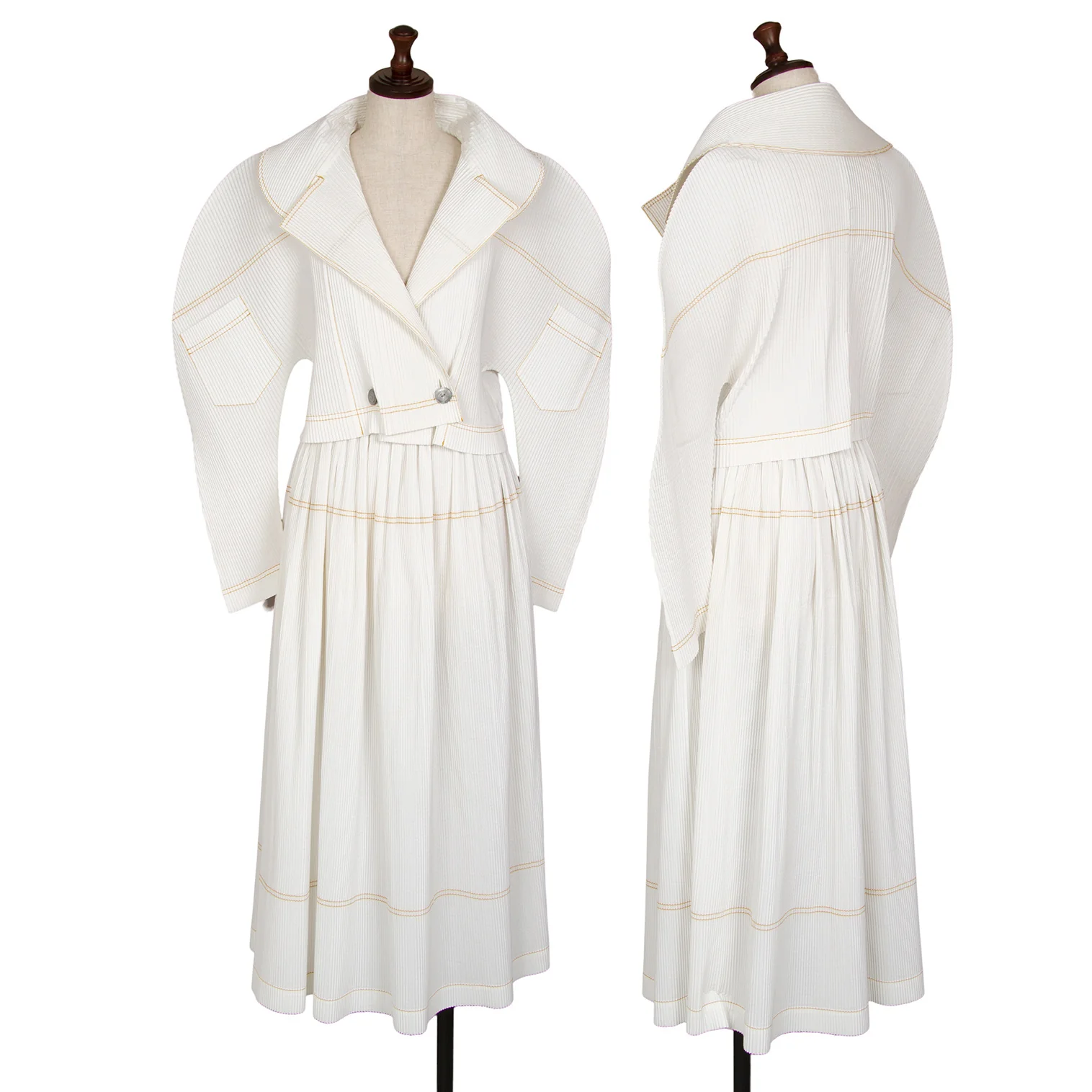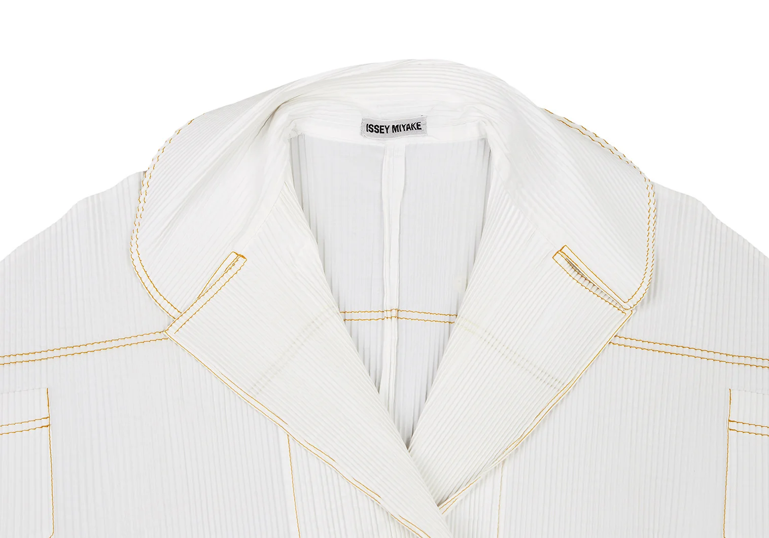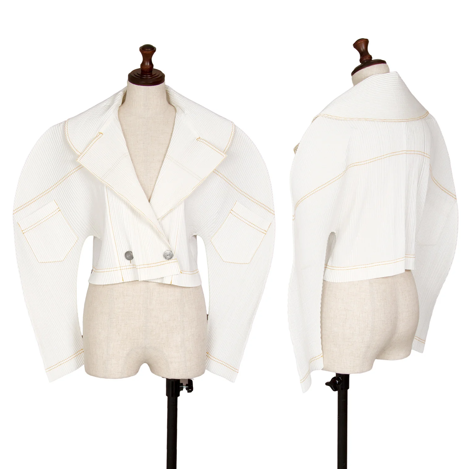 イッセイミヤケISSEY MIYAKEプリーツダブルステッチ変形ダブルジャケット 白M