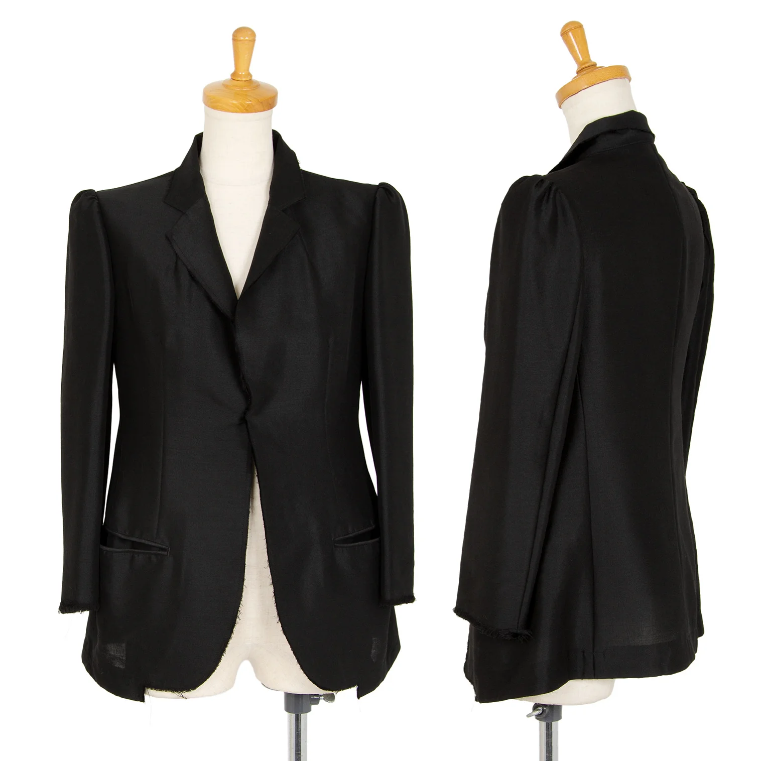ヨウジヤマモト ファムYohji Yamamoto FEMME モヘヤシルク裁ち切りパフスリーブジャケット 黒1