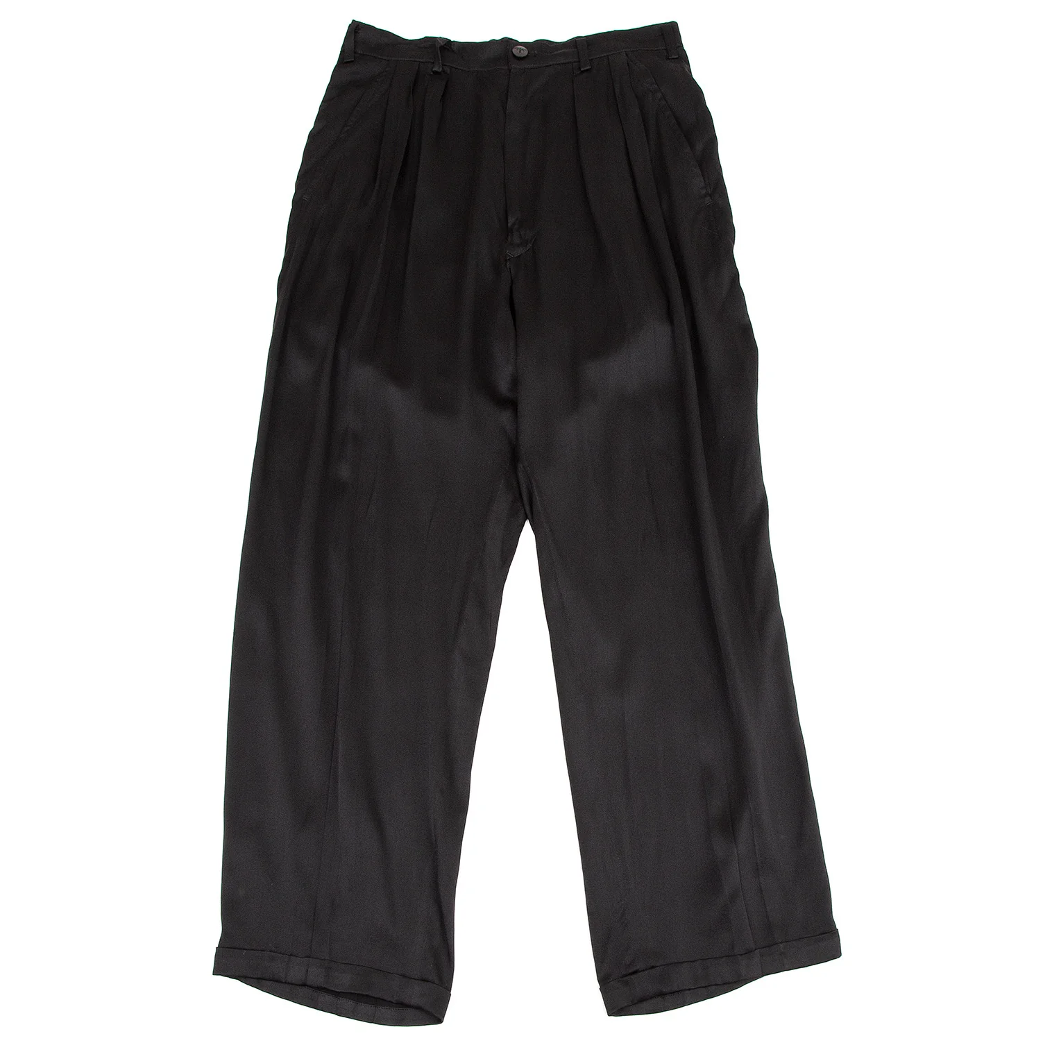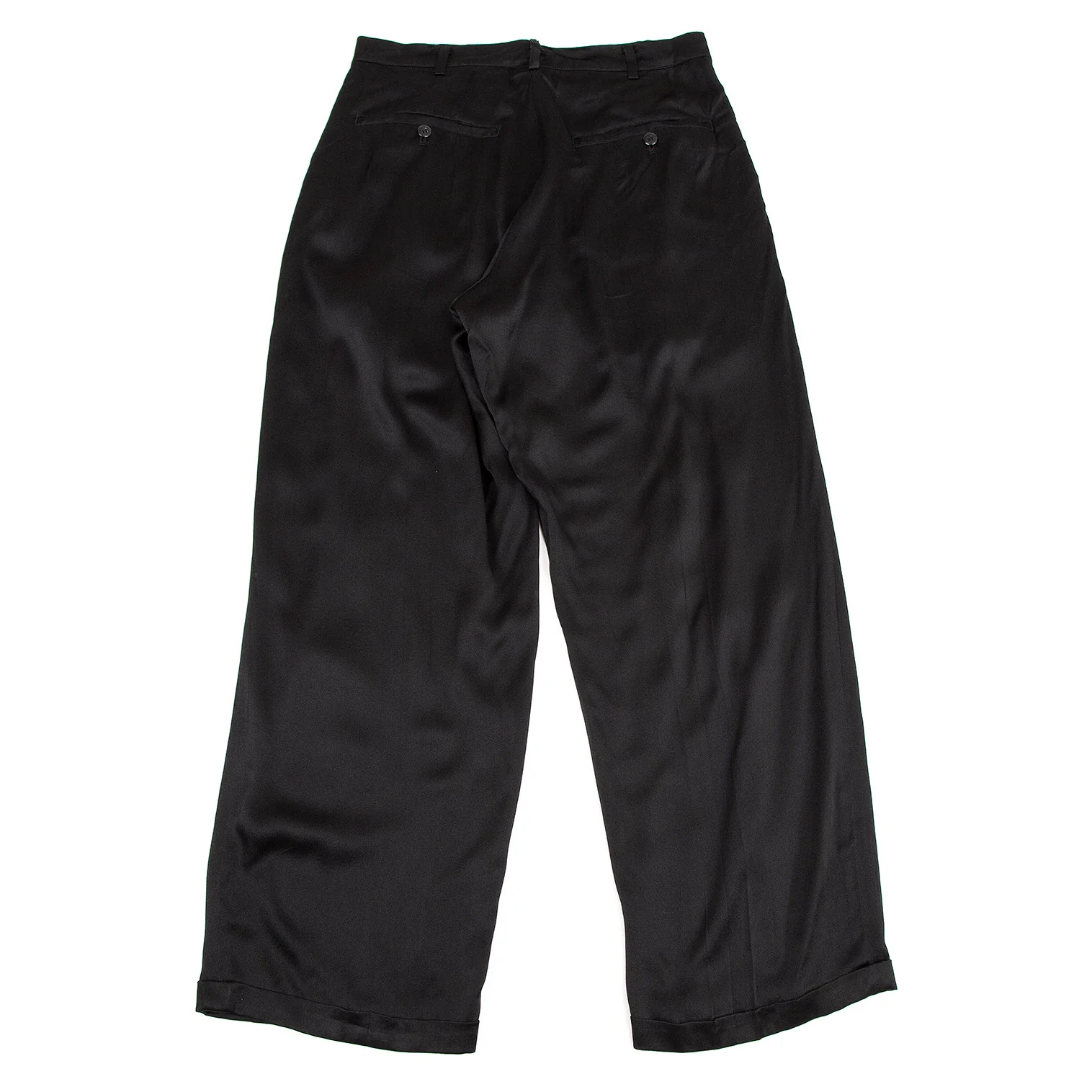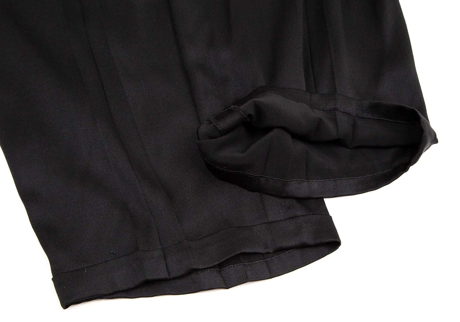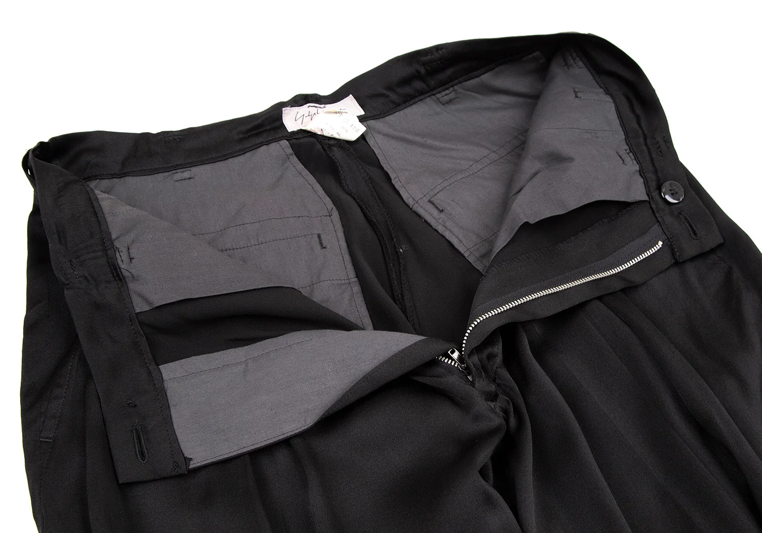 ヨウジヤマモト ファムYohji Yamamoto FEMME シルクサテンワイドタックパンツ 黒SS