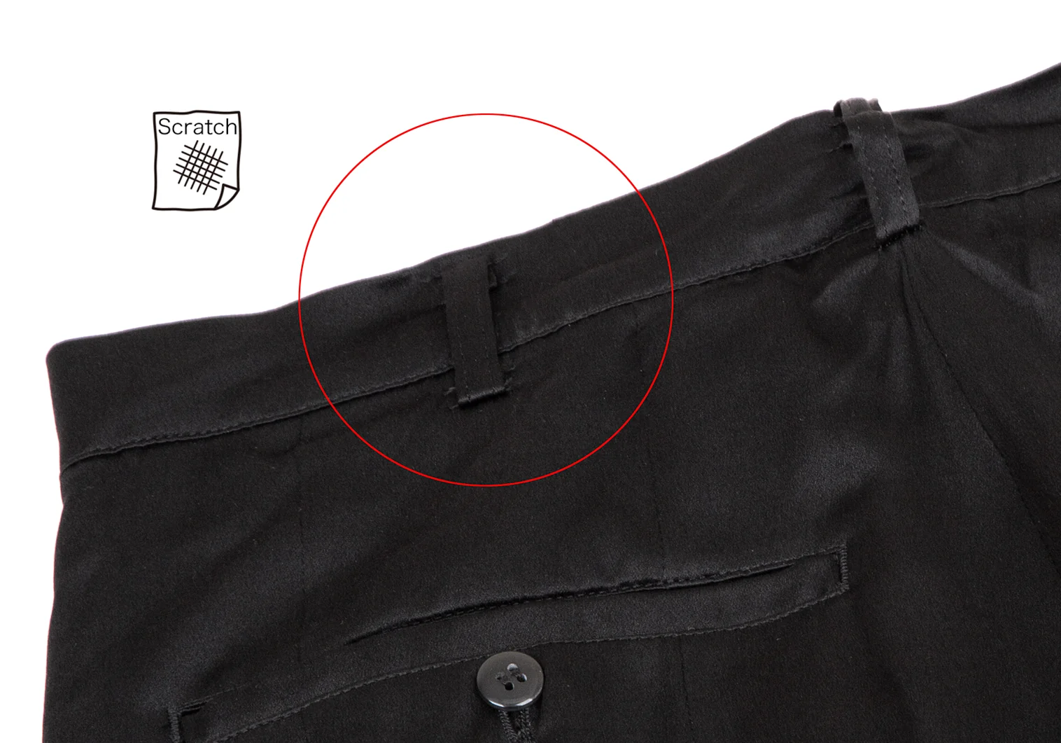 ウエスト、股下にスレがあります(写真参照)その他目立ったシミ、汚れ、ほつれ等なくいい状態です。クリーニング済み