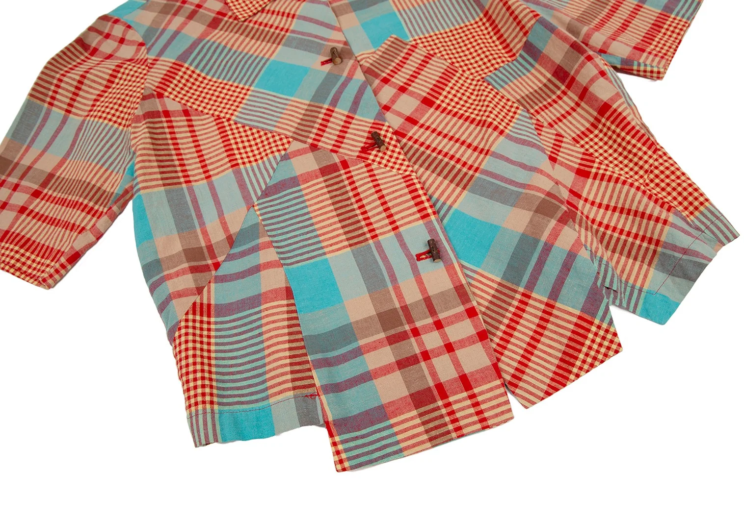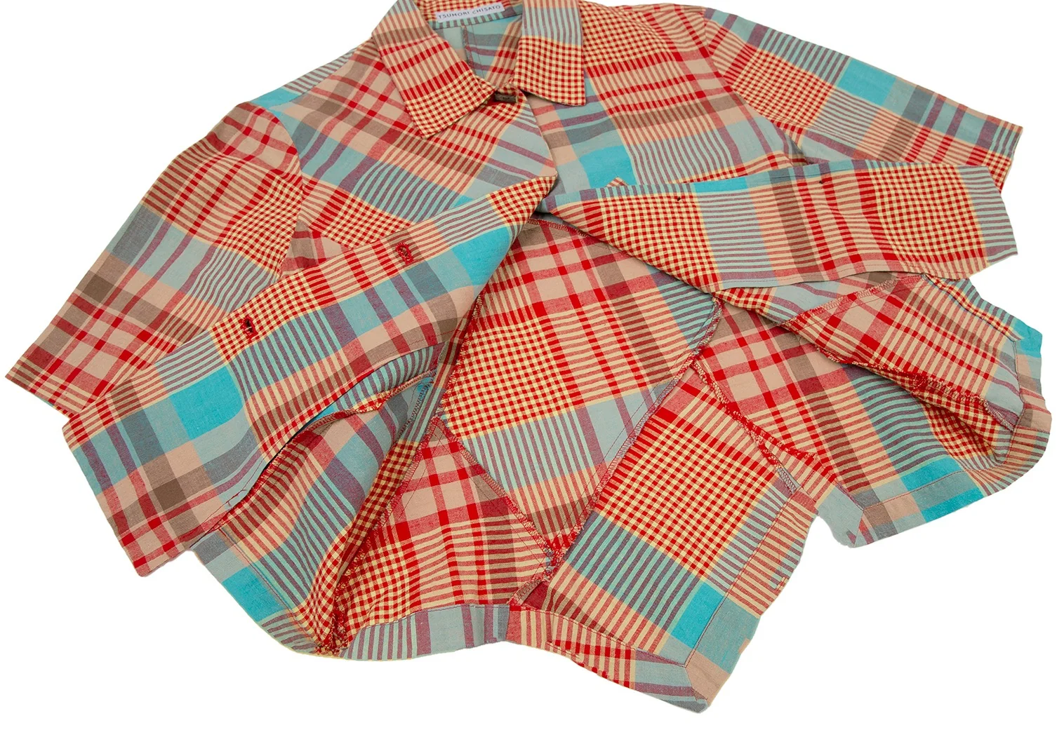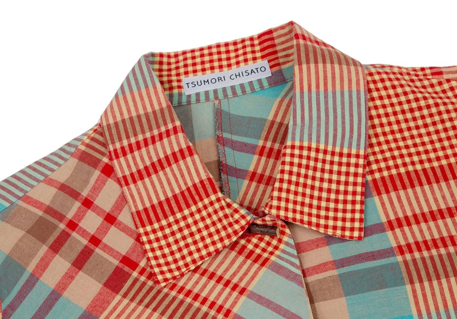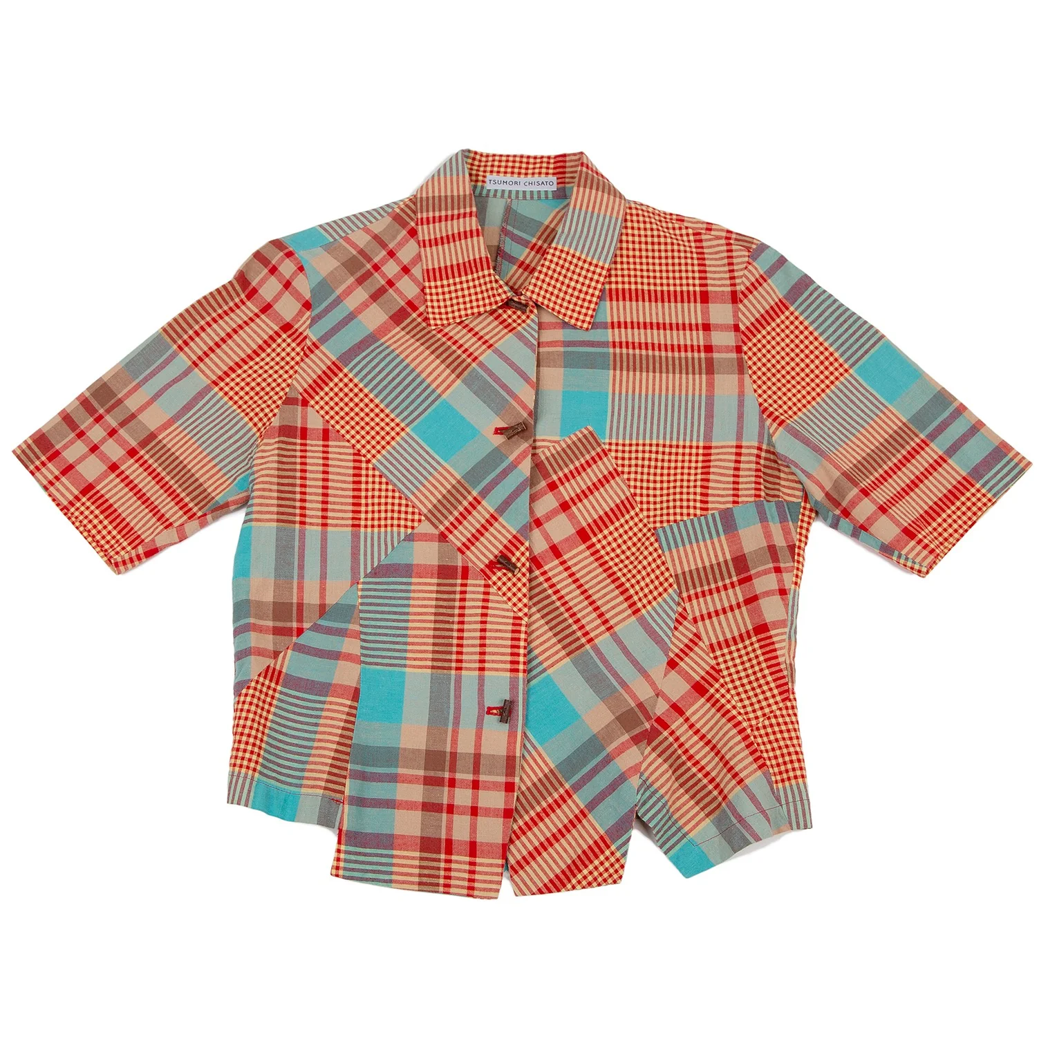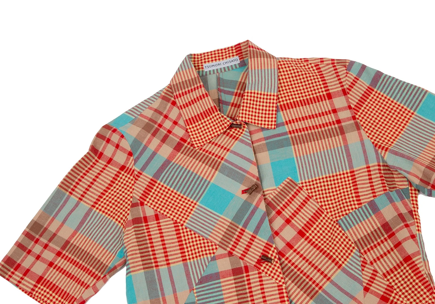 ツモリチサトTSUMORI CHISATO チェック切替ウッドボタンデザイン半袖シャツ マルチM