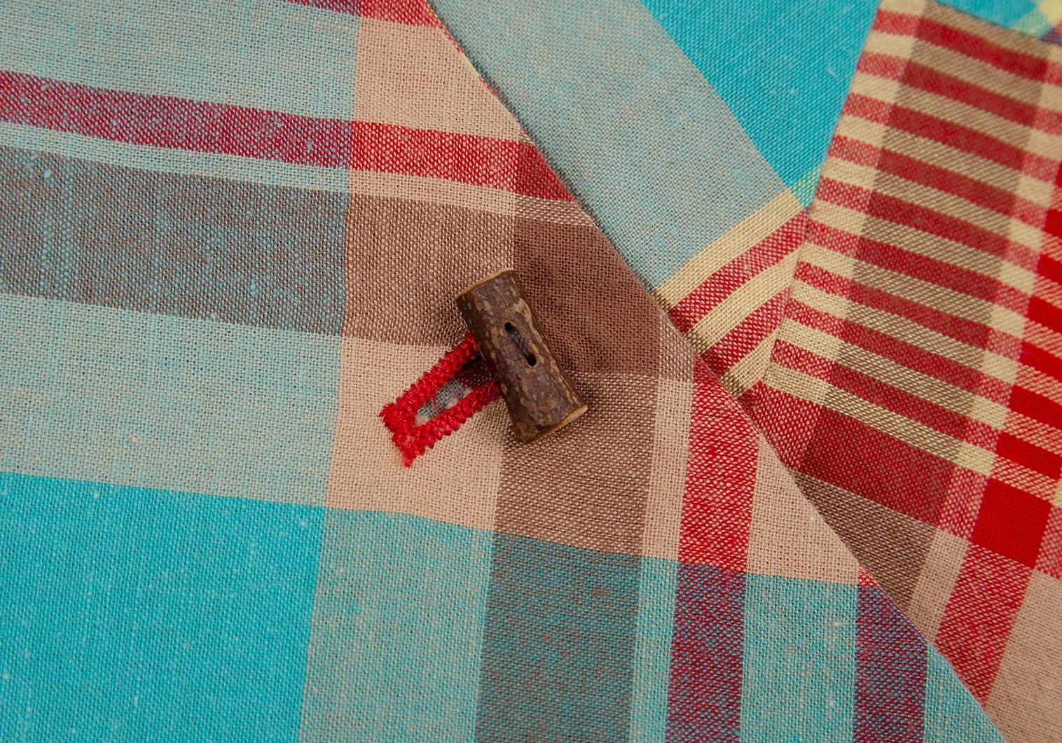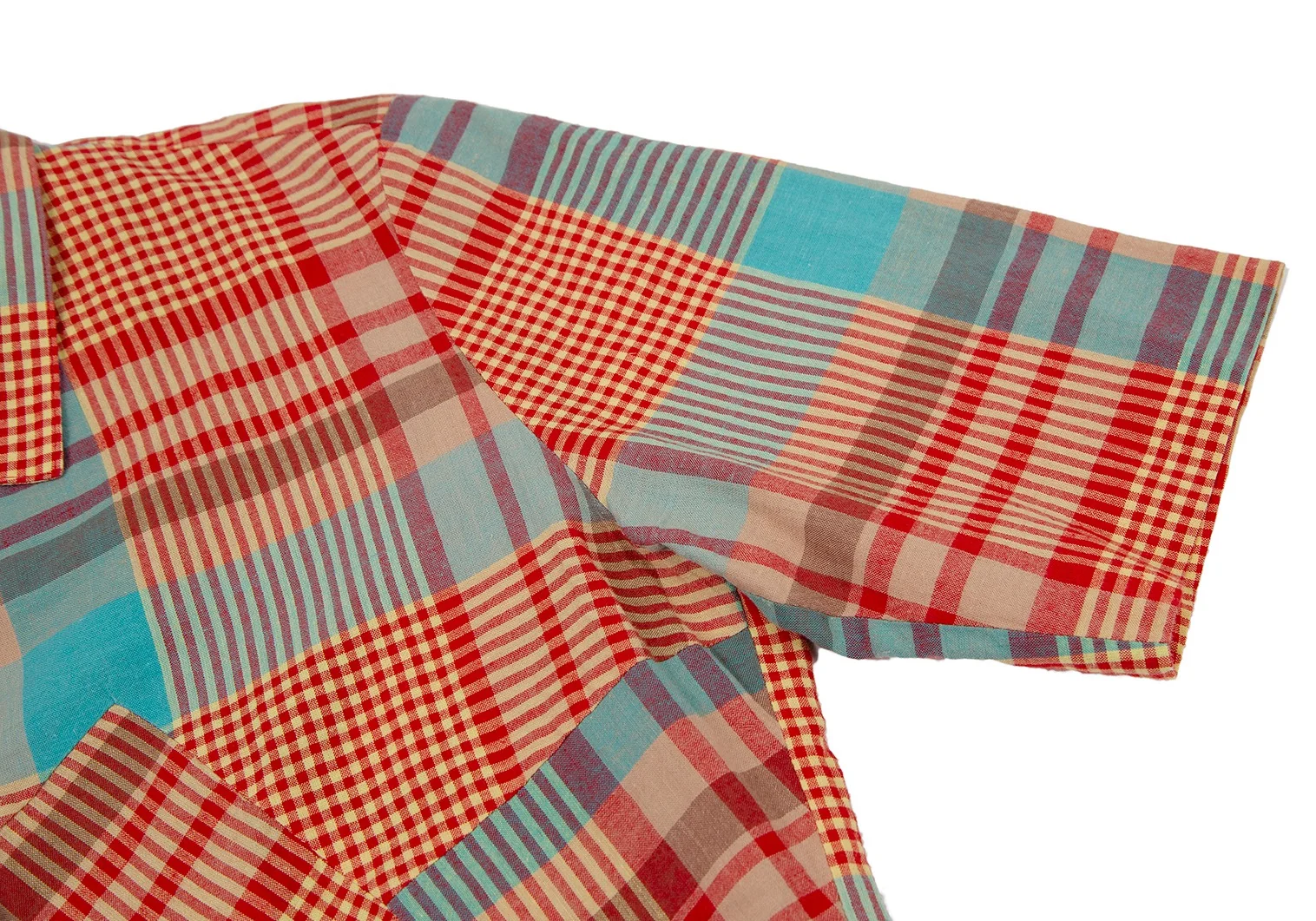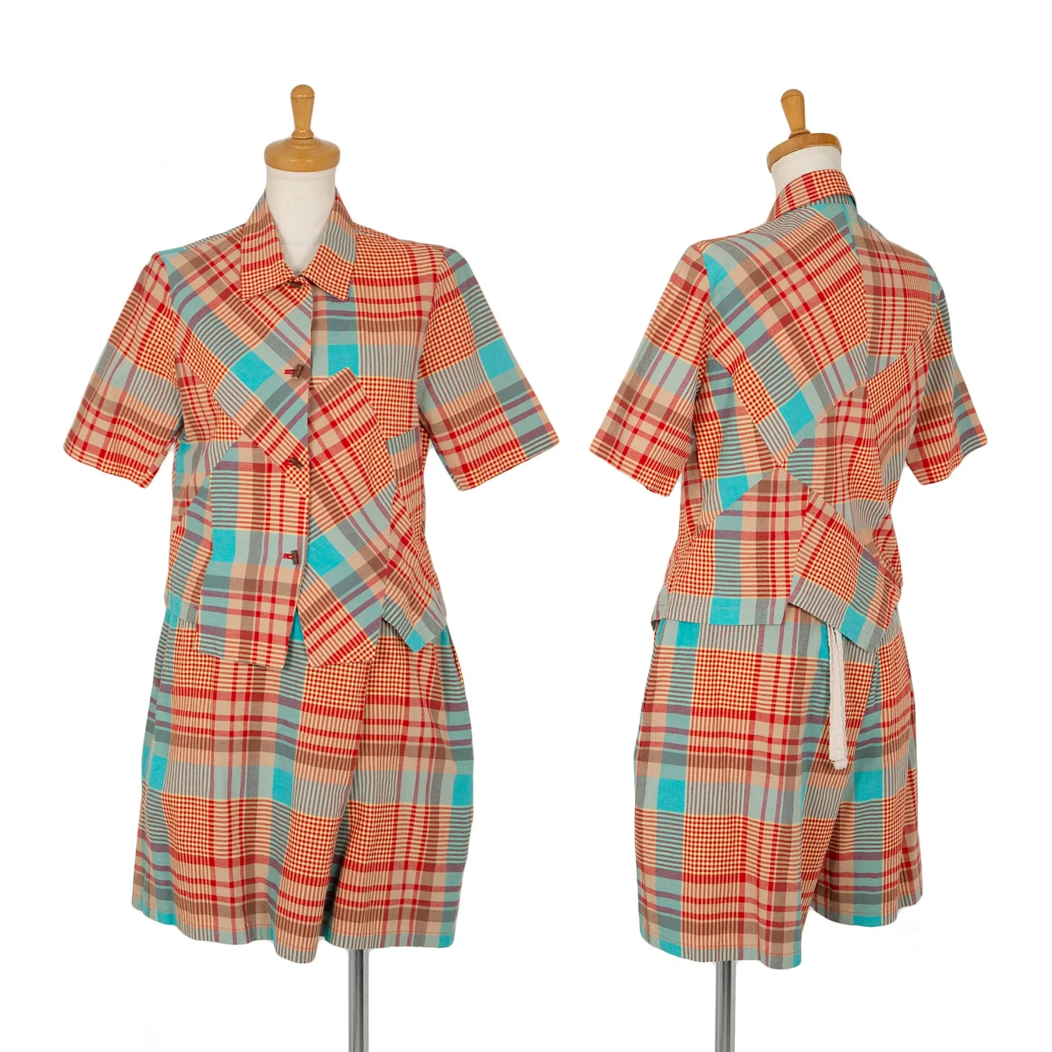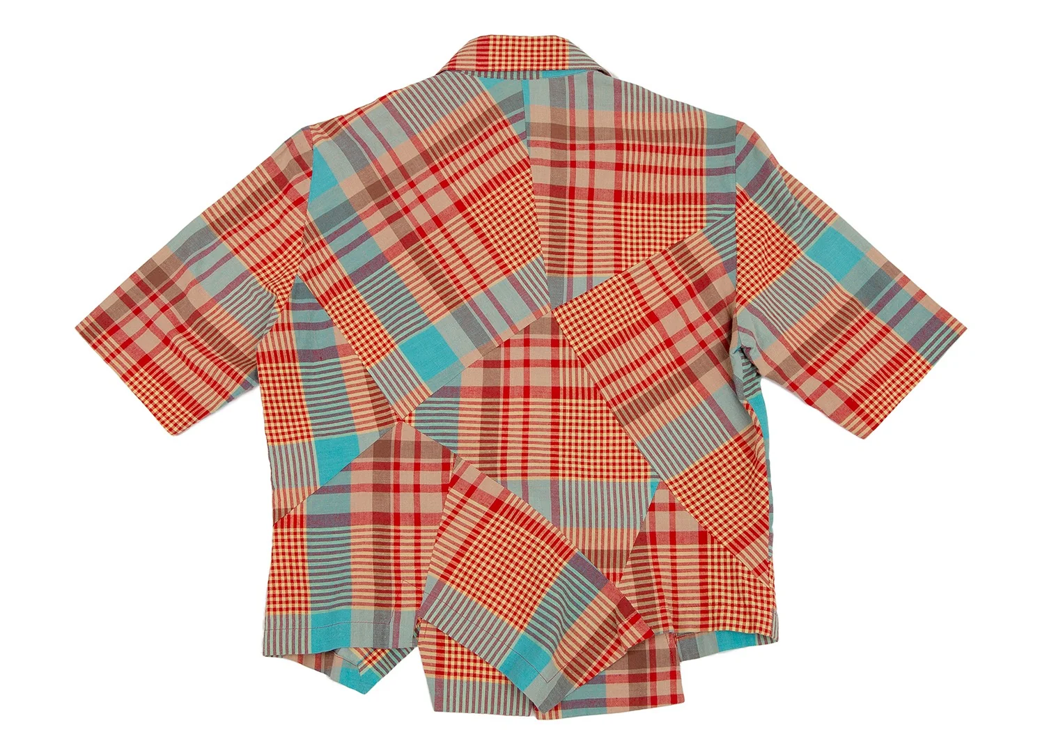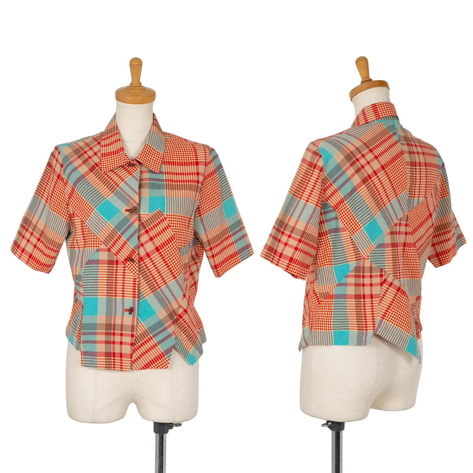 ツモリチサトTSUMORI CHISATO チェック切替ウッドボタンデザイン半袖シャツ マルチM