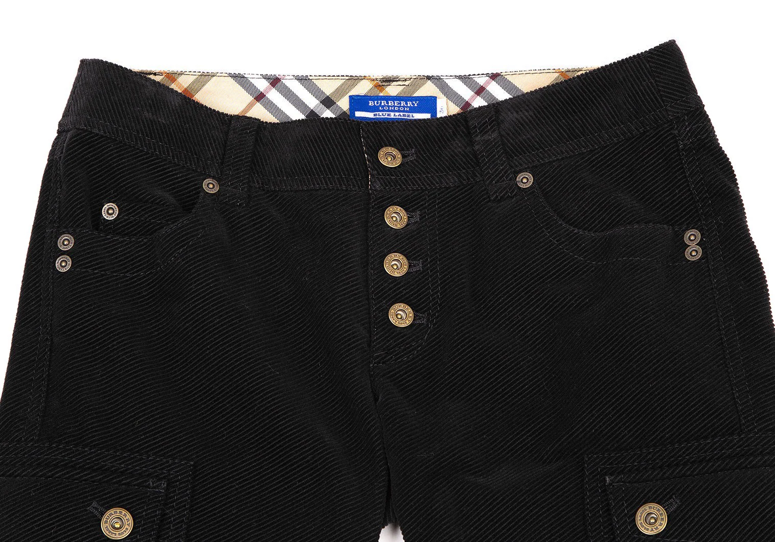 バーバリーロンドンBURBERRY LONDON コットンコーデュロイリブクロップドパンツ 黒36