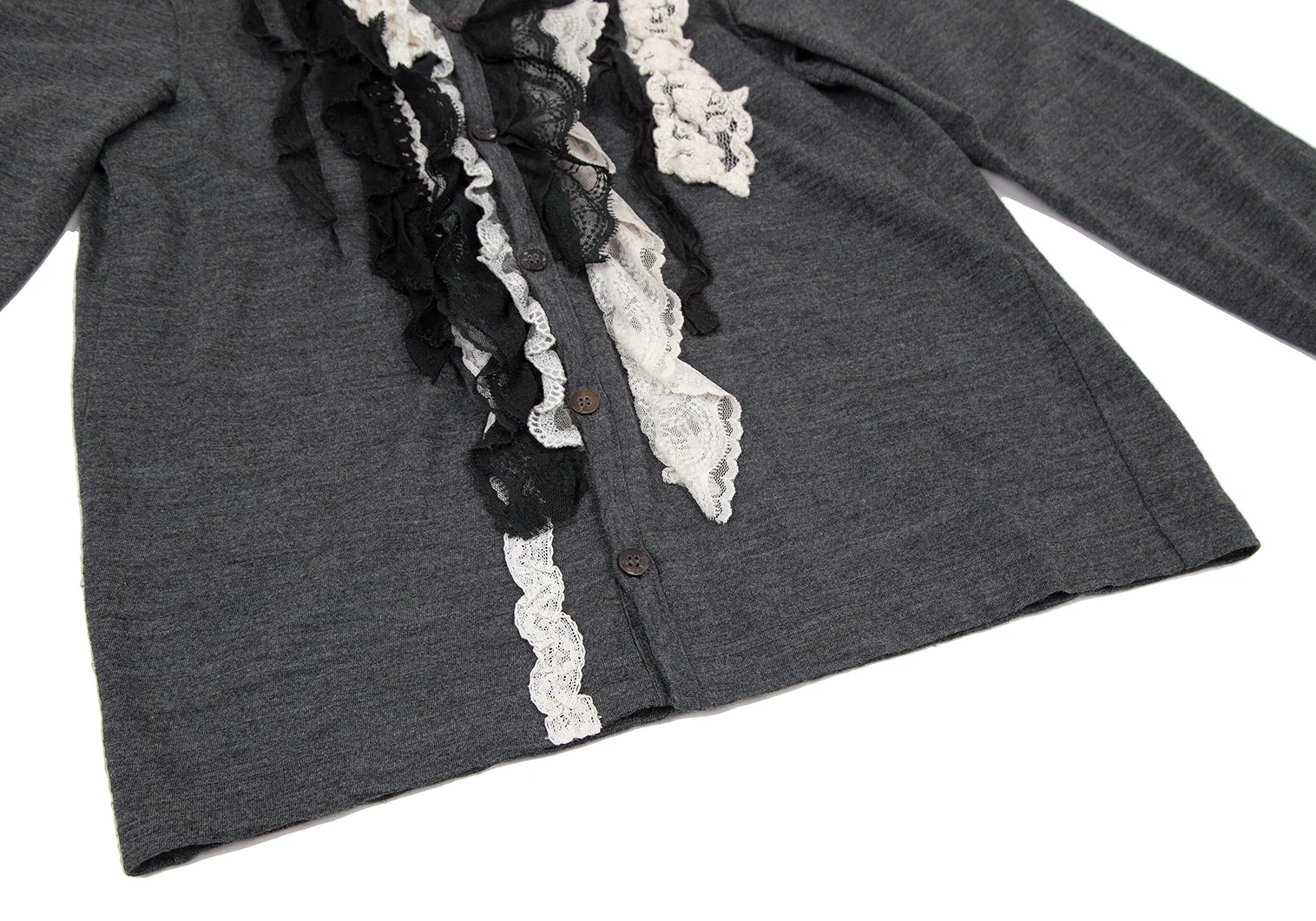 ジュンヤワタナベマンピンク コムデギャルソンJUNYA WATANABE MAN PINK COMME des GARCONS ウール花柄レースフリル装飾カーディガン グレーS位