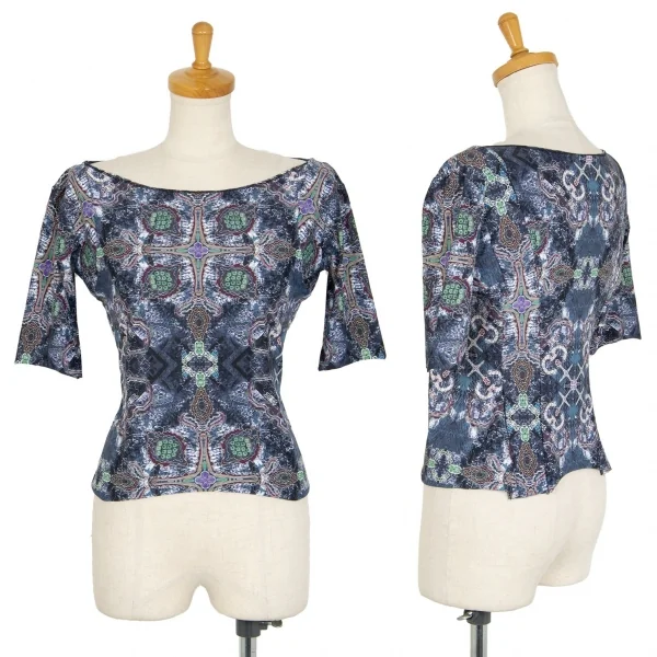 イッセイミヤケISSEY MIYAKE ナイロングラフィックプリントストレッチ5分袖カットソー 青他3
