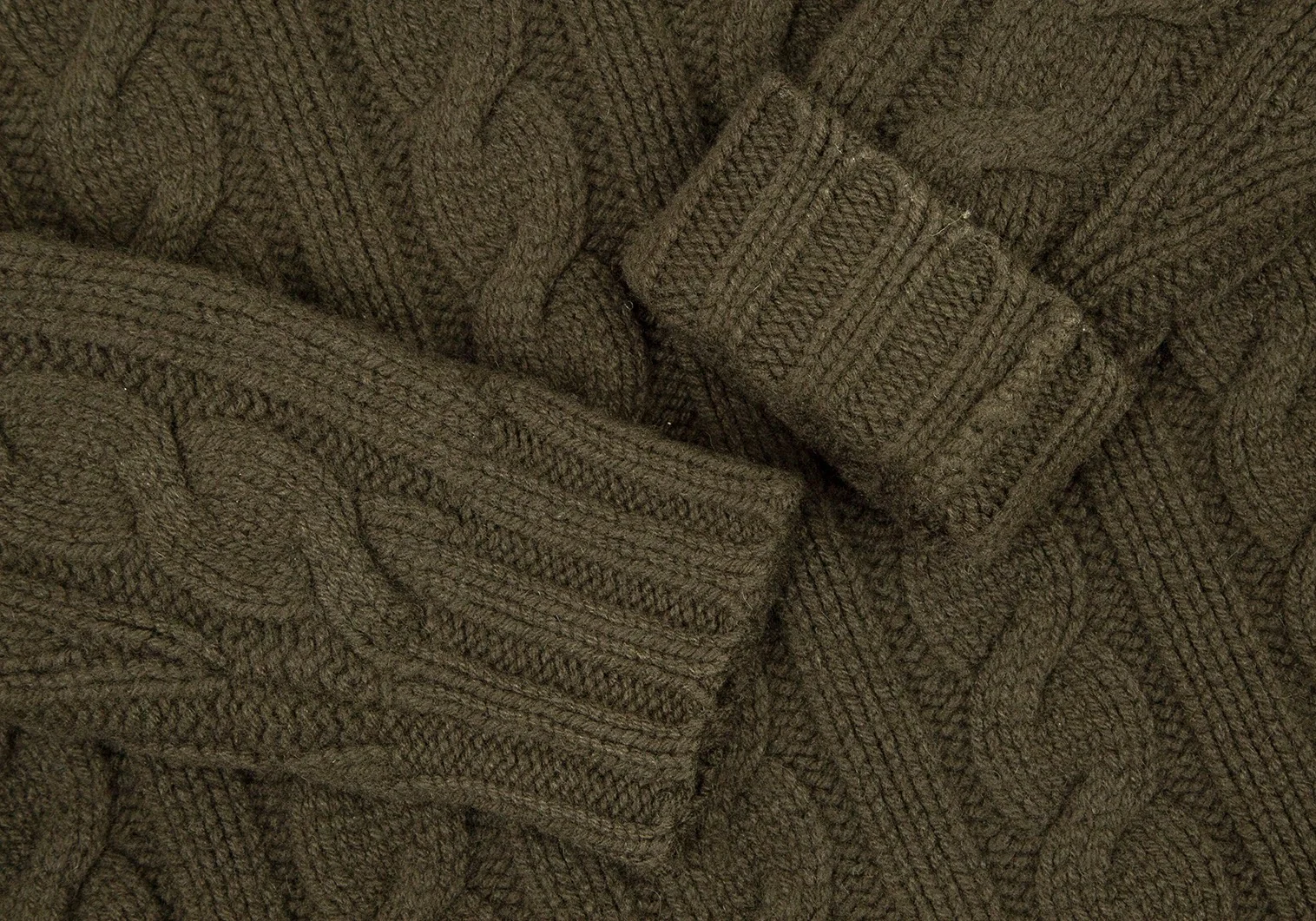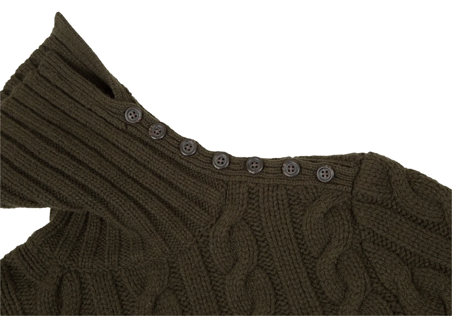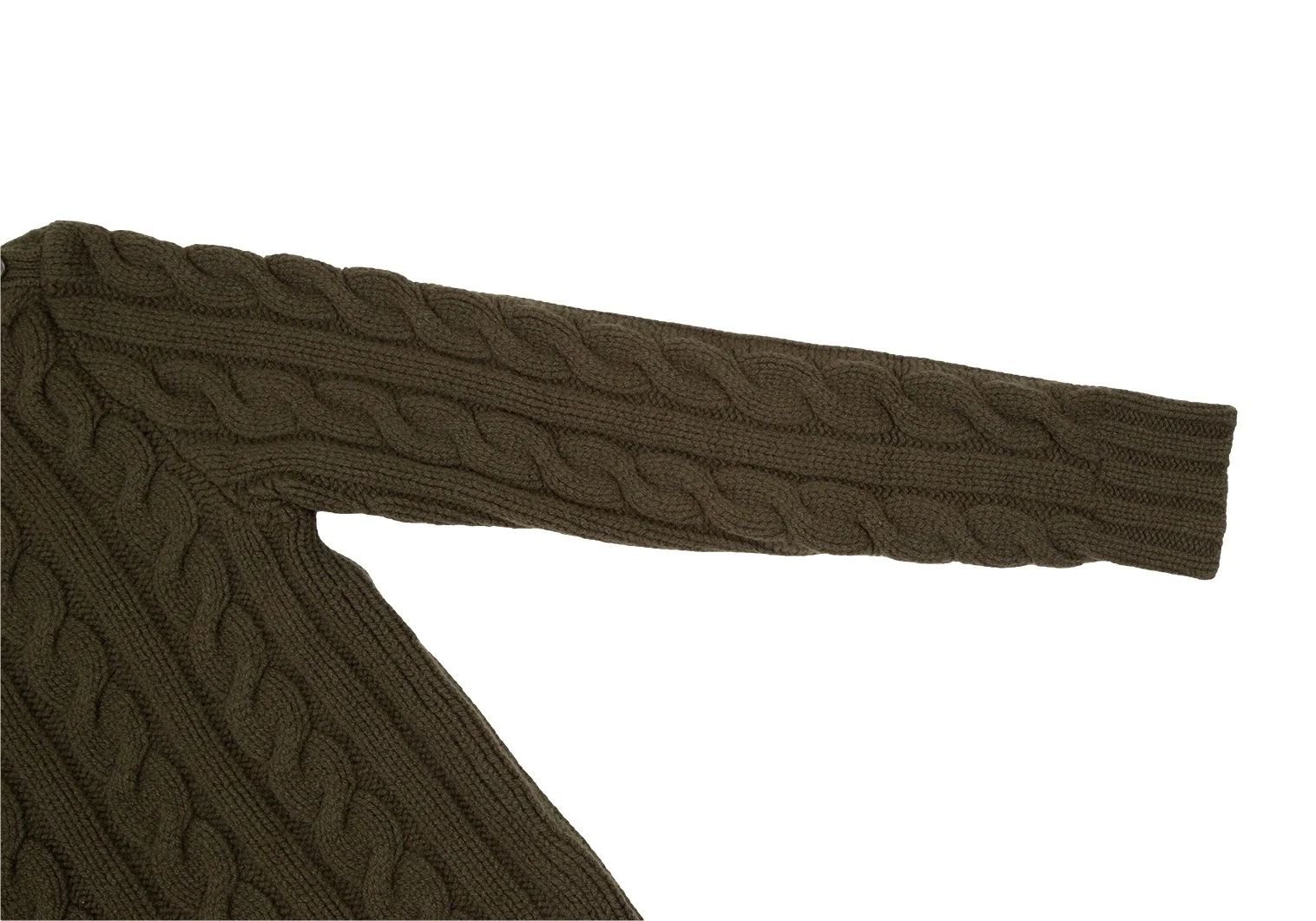 ポロラルフローレンPOLO RALPH LAUREN ウールカシミヤボタン留めハイネックケーブルニットセーター カーキL