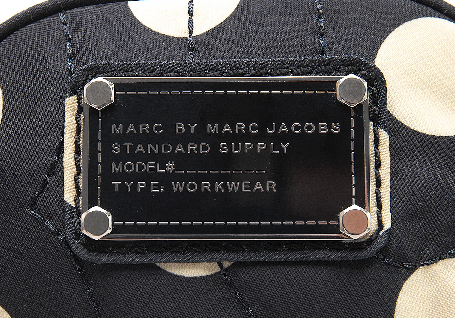 マークバイマークジェイコブスMARC by MARC JACOBS メタルプレートドットミニポーチ 紺オフ