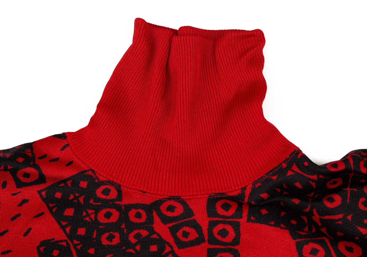 イッセイ ミヤケISSEY MIYAKE ポリコットン総柄リブタートルネックドルマントップス 赤9
