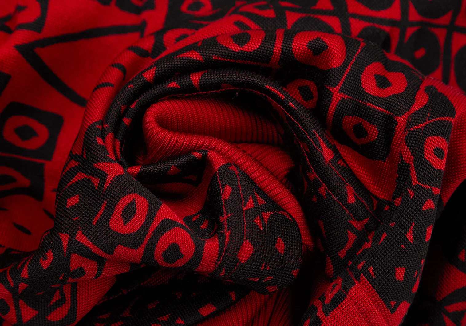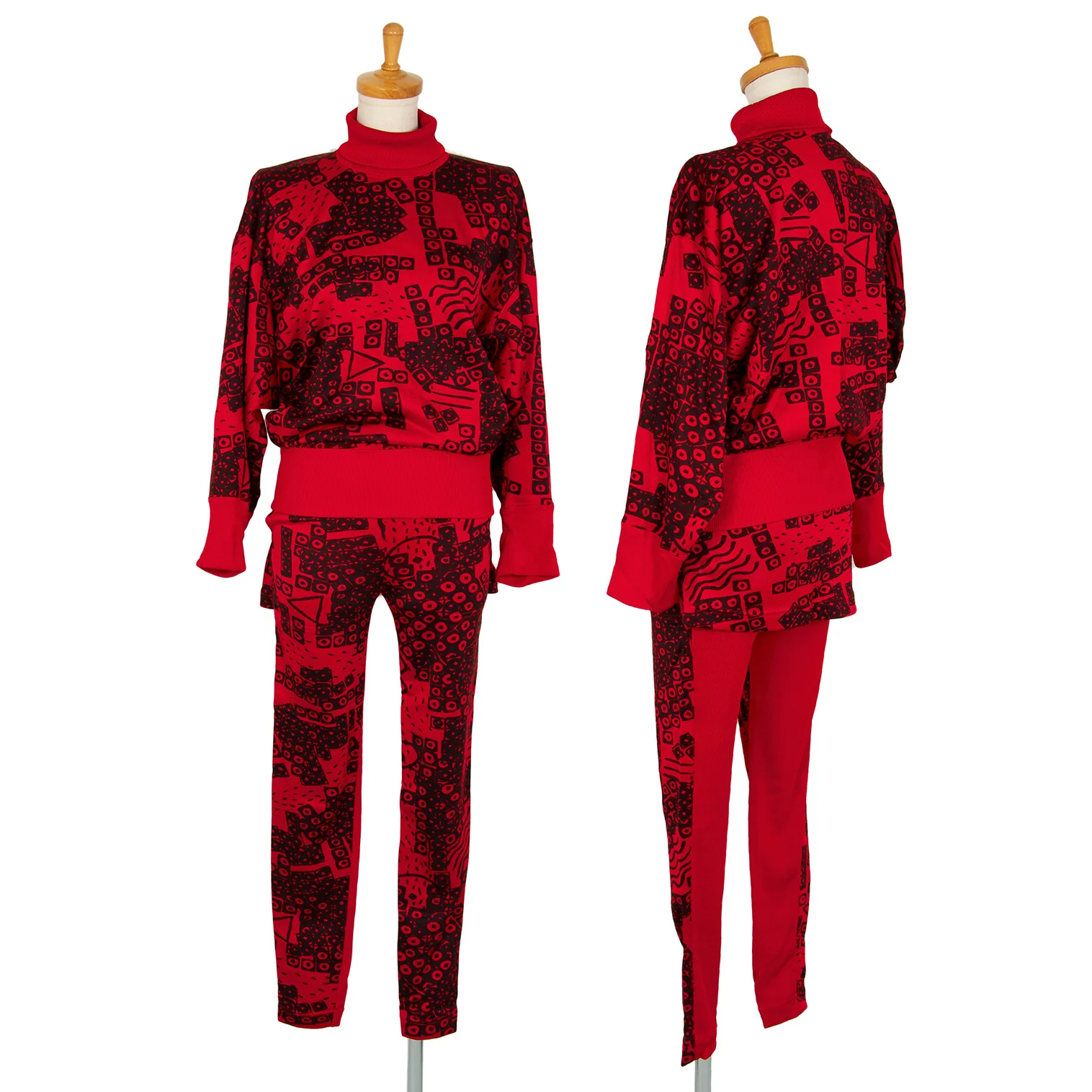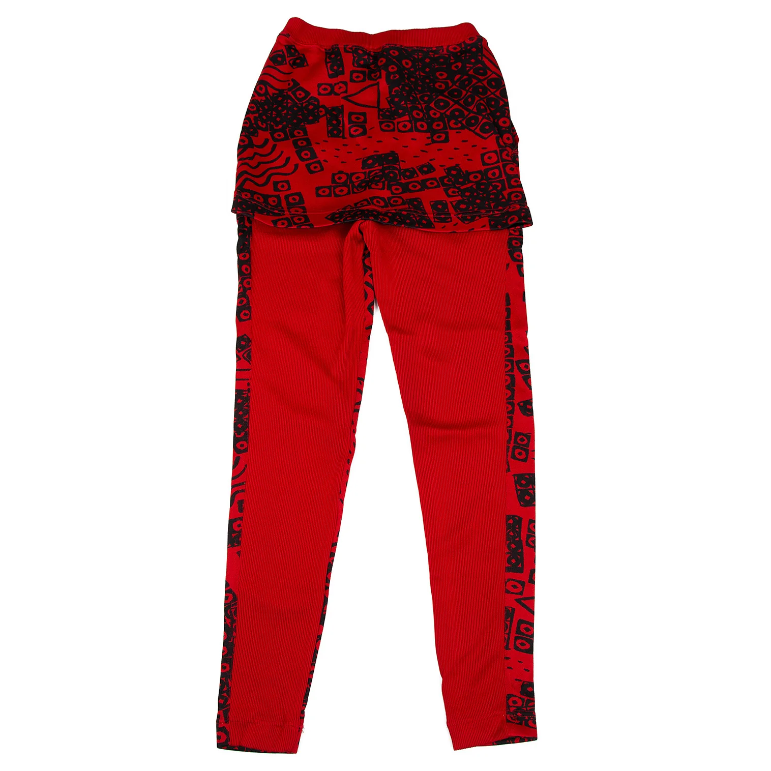 イッセイ ミヤケISSEY MIYAKE ポリコットン総柄バックスカートリブレギンスパンツ 赤9