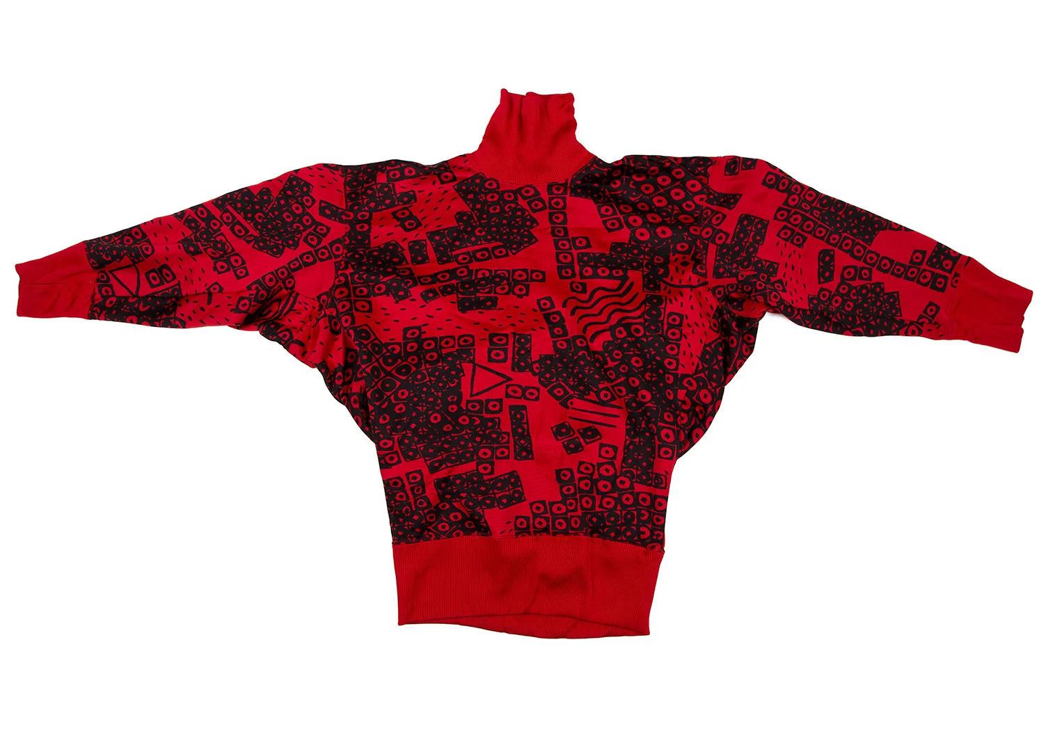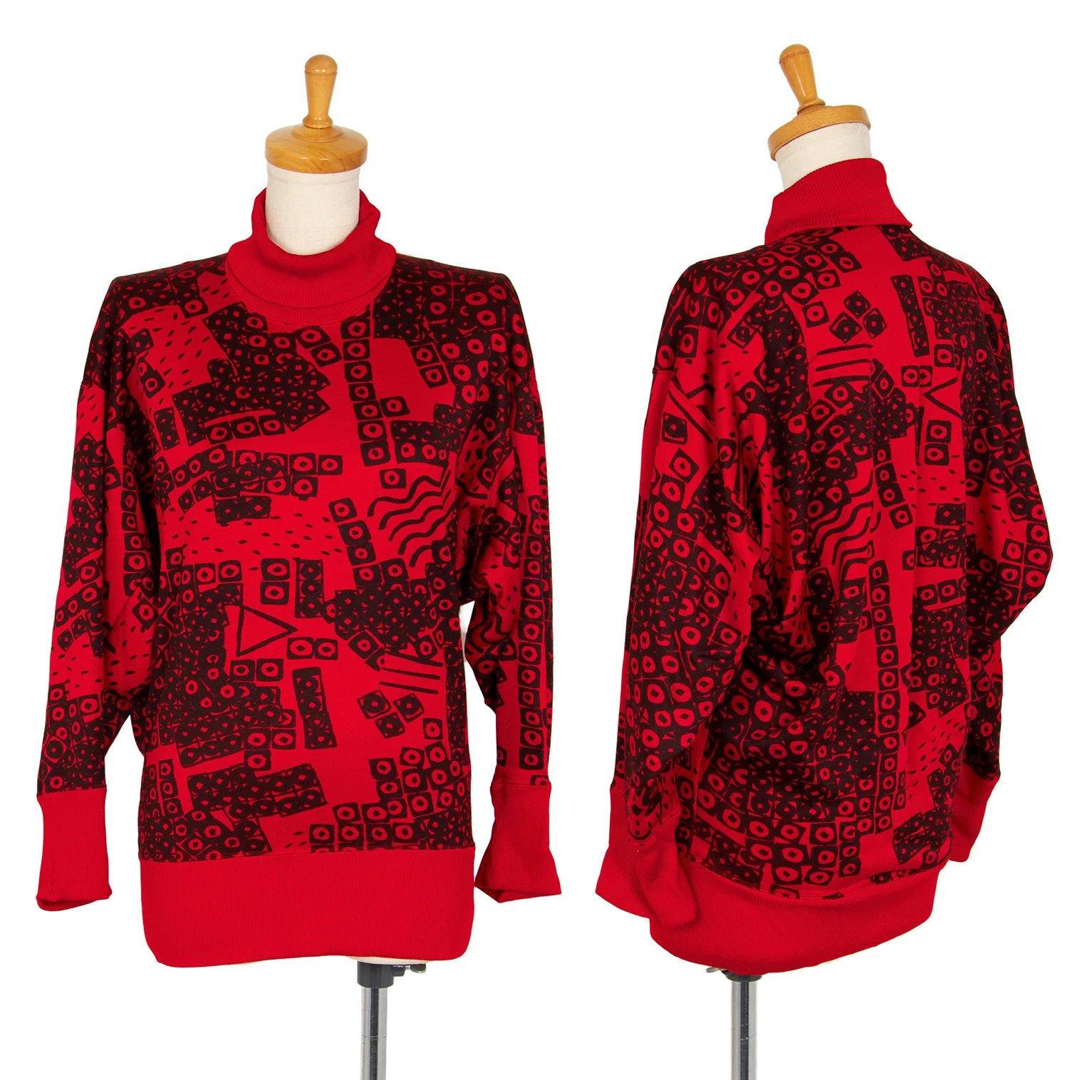 イッセイ ミヤケISSEY MIYAKE ポリコットン総柄リブハイネックドルマンセットアップ 赤9
