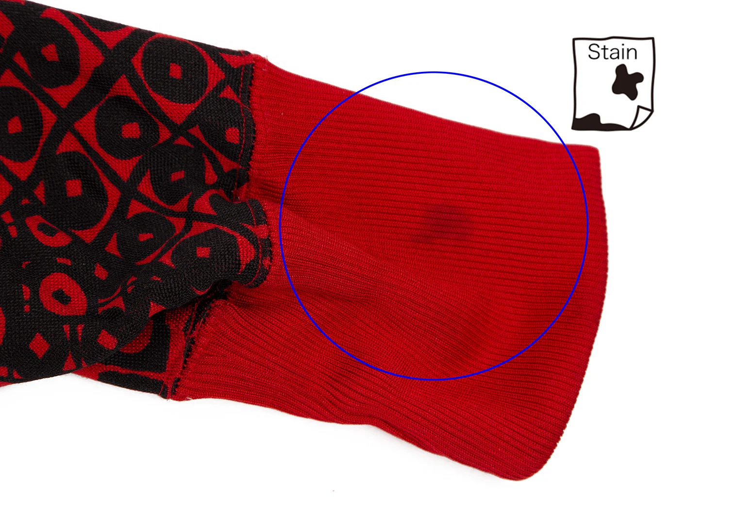 トップス右袖口に薄汚れがあります(写真参照)その他目立ったシミ、汚れ、ほつれ等なくいい状態です。クリーニング済み