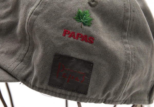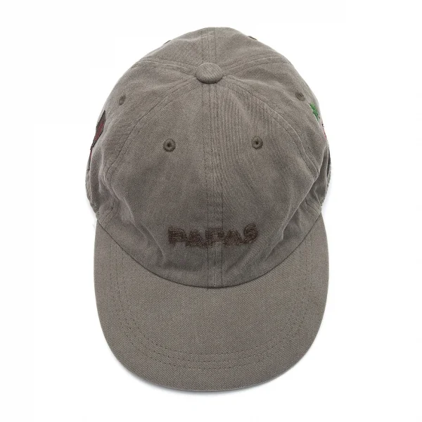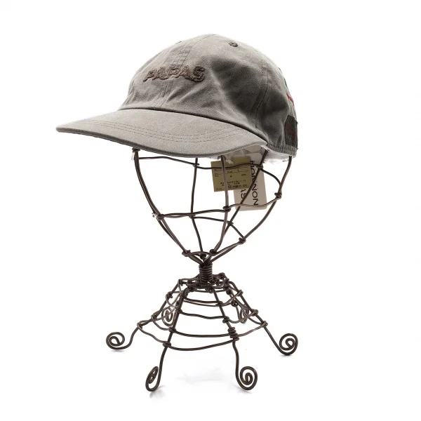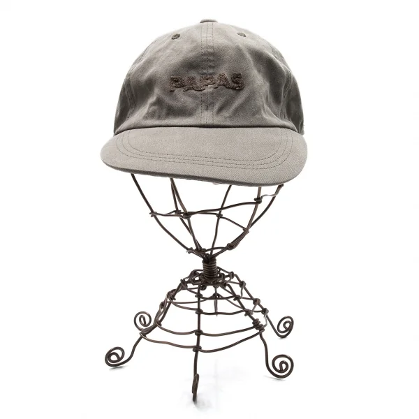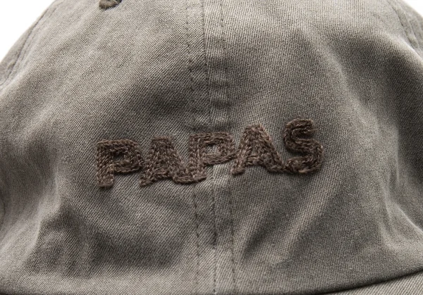 パパスPapas コットンロゴチェーンステッチベースボールキャップ カーキL