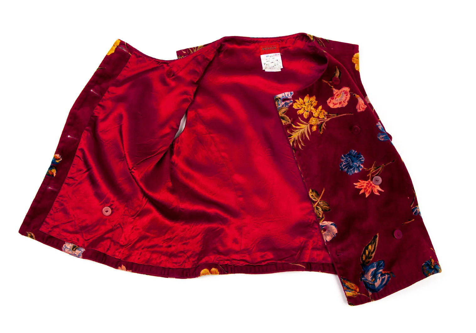 ケンゾーKENZO 花柄ベロアダブルブレストベスト 赤40