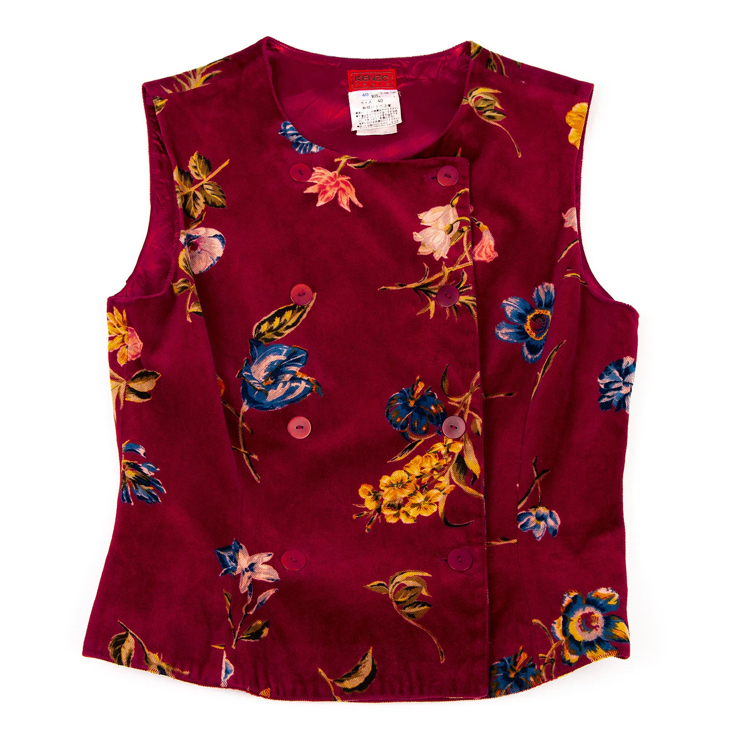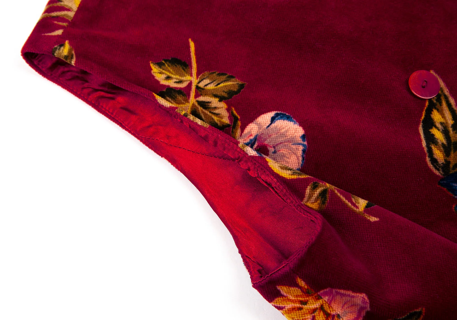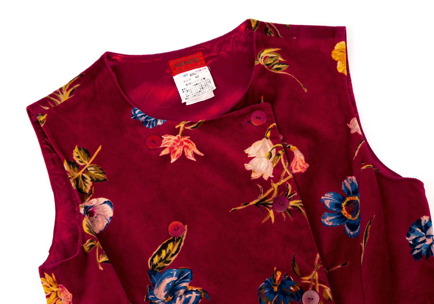 ケンゾーKENZO 花柄ダブルブレストベストセットアップ 赤40・38